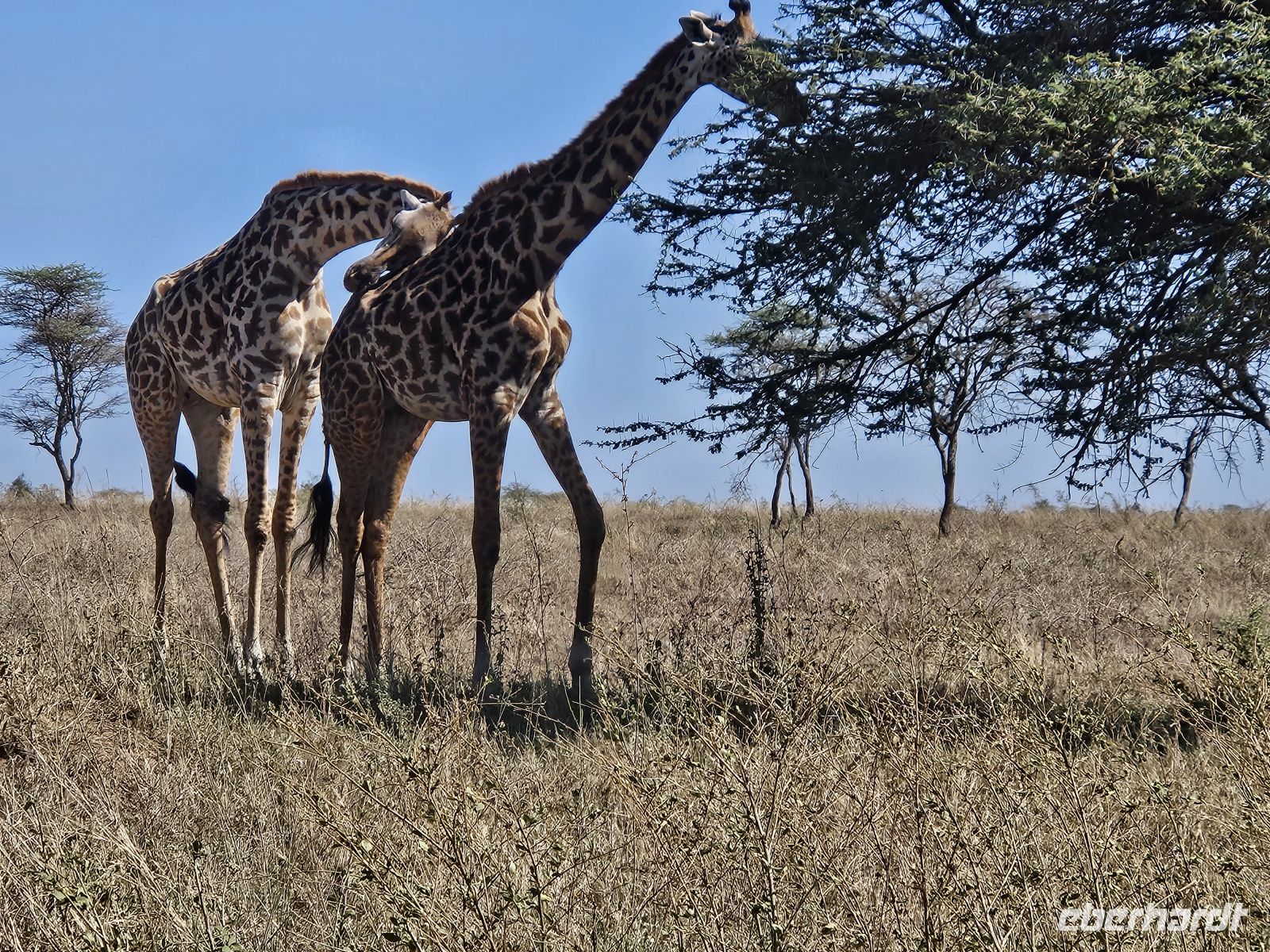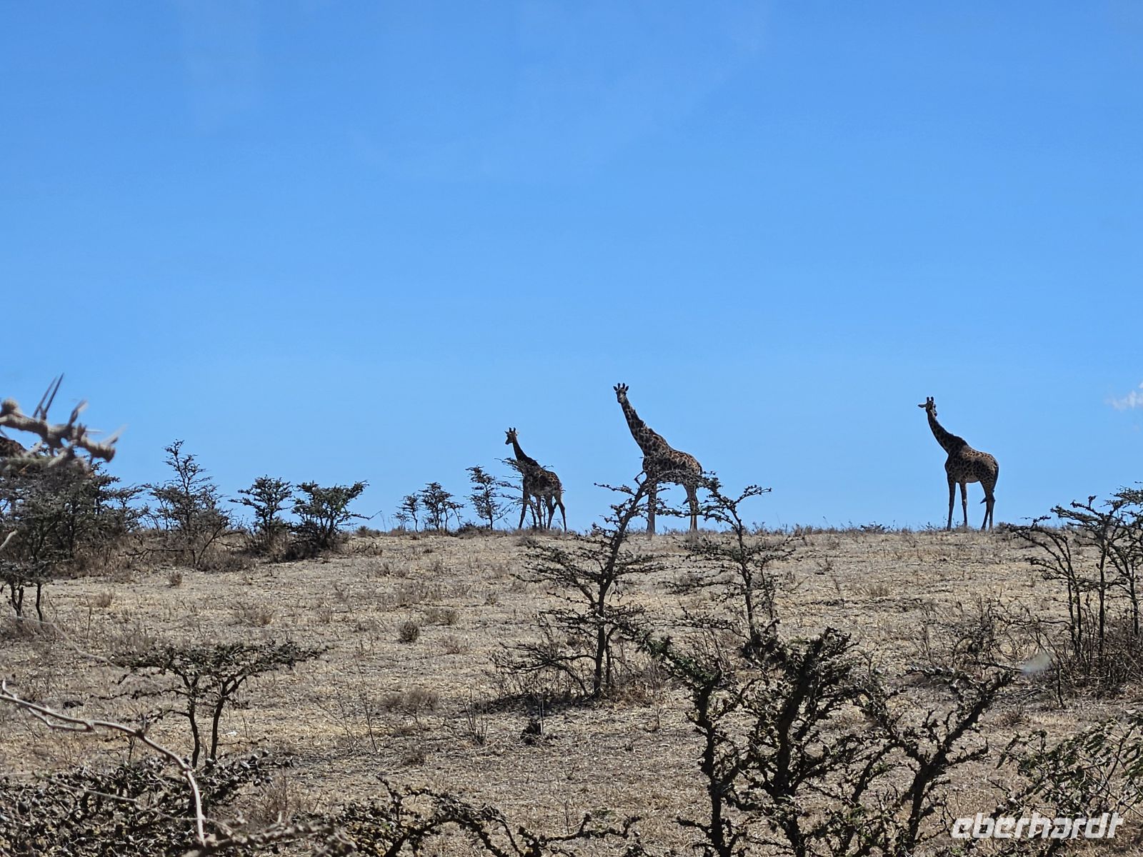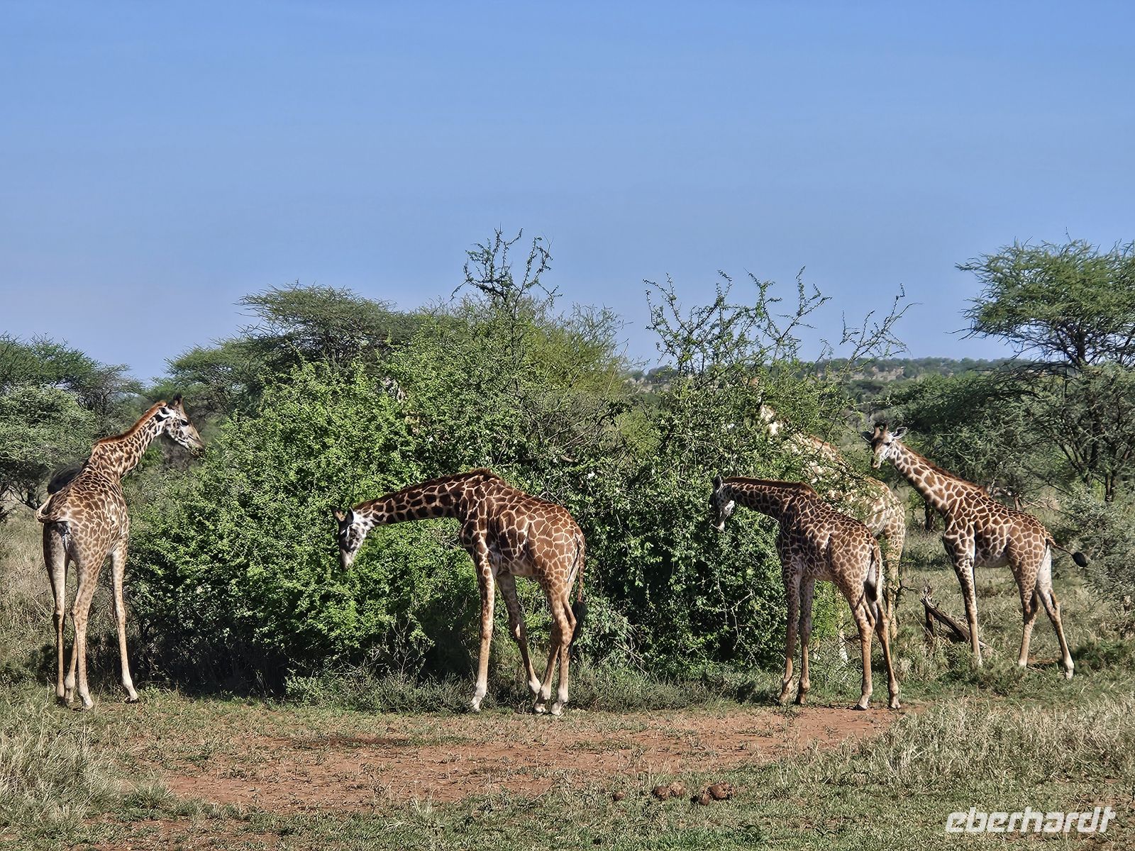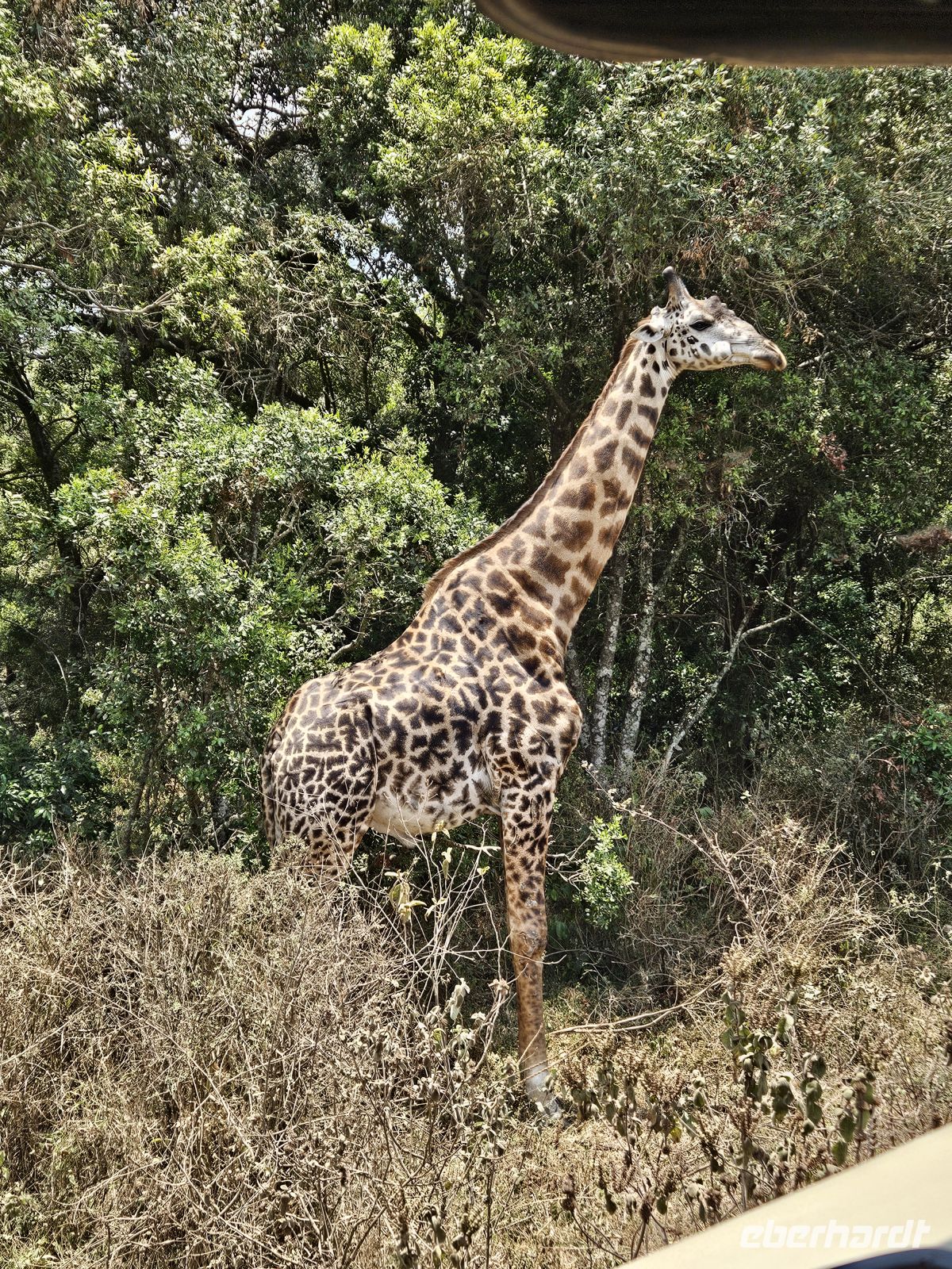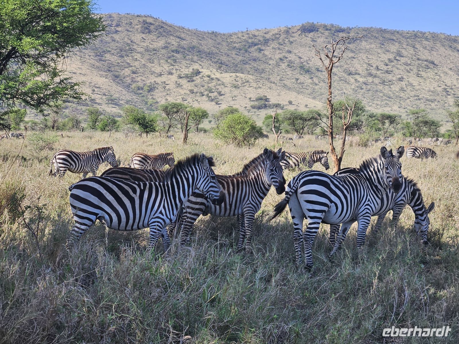 Nach dem Frühstück in unserer Lodge, standen unsere zwei Jeeps mit Eberhardt-Branding bereit und wir brachen in Richtung des Arusha-Nationalparks auf. Vorher hatten wir von unserem Driverguide bereits ein kurzes Briefing erhalten, wie man sich auf den Safaris zu verhalten hat und wie unser Programm für die kommenden Tage aussieht. Unser zweiter Driverguide ist Brian.