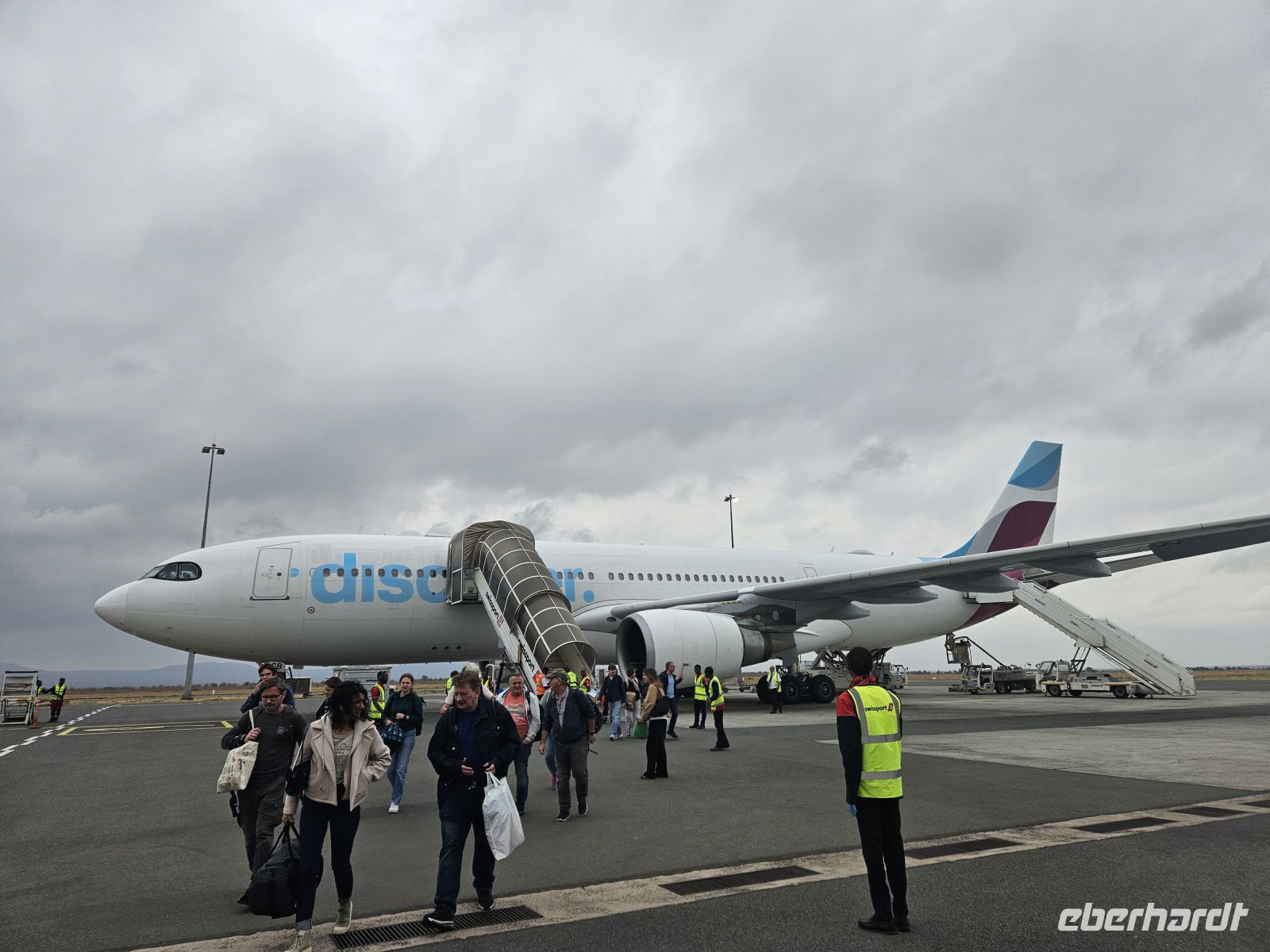 Ursprünglich waren im Rahmen unserer Reise nach Tansania die Flüge mit dem KLM-Flug von Amsterdam nach Kilimanscharo mit den passenden Zubringerflügen von Deutschland geplant gewesen. Aufgrund von Flugstreichungen in Berlin und München, mussten diese Flugpläne allerdings über Bord geworfen werden und zwei Drittel der Gruppe flogen jetzt 9 Stunden später, als ursprünglich geplant, von Frankfurt nach Kilimanscharo mit der discover Airlines. Wir waren aber sehr froh und dankbar, dass vom Eberhardt-TRAVEL-Bereitschaftsdienst und der Flugabteilung so schnell eine Lösung gefunden konnte, die uns unter den aktuellen Bedingungen schnellstmöglich zum Ziel brachte und unser geplantes Programm kaum in Verzug brachte.