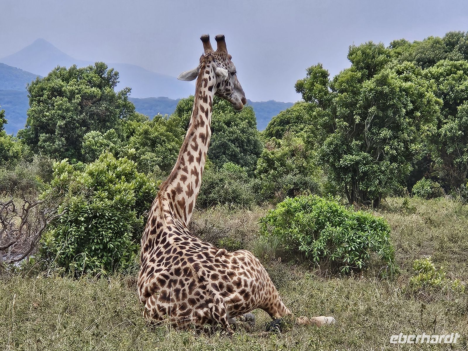 Der Arusha-Nationalpark gehört mit 300 km² zu den kleineren Nationalparks in Tansania. Westlich vom Nationalpark, erhebt sich der Mount Meru. Der Mount Meru ist mit 4562,13 Metern Höhe der zweithöchste Berg in Tansania hinter dem Kilimandscharo. Gleich nach Einfahrt in den Nationalpark, eröffnete sich uns ein großartiger Blick auf Giraffen, Warzenschweine und Zebras. Generell kamen uns die Giraffen den ganzen Tag sehr nah und wir könnten diese beim Sitzen, Fressen und in der Gruppe beobachten. Während der Pirschfahrt erfuhren wir viel Wissenswertes über die Tiere. So haben Giraffen nur 7 Halswirbel, von diesen ist einer jedoch größer, als die Längsseite eines A-5-Blattes.