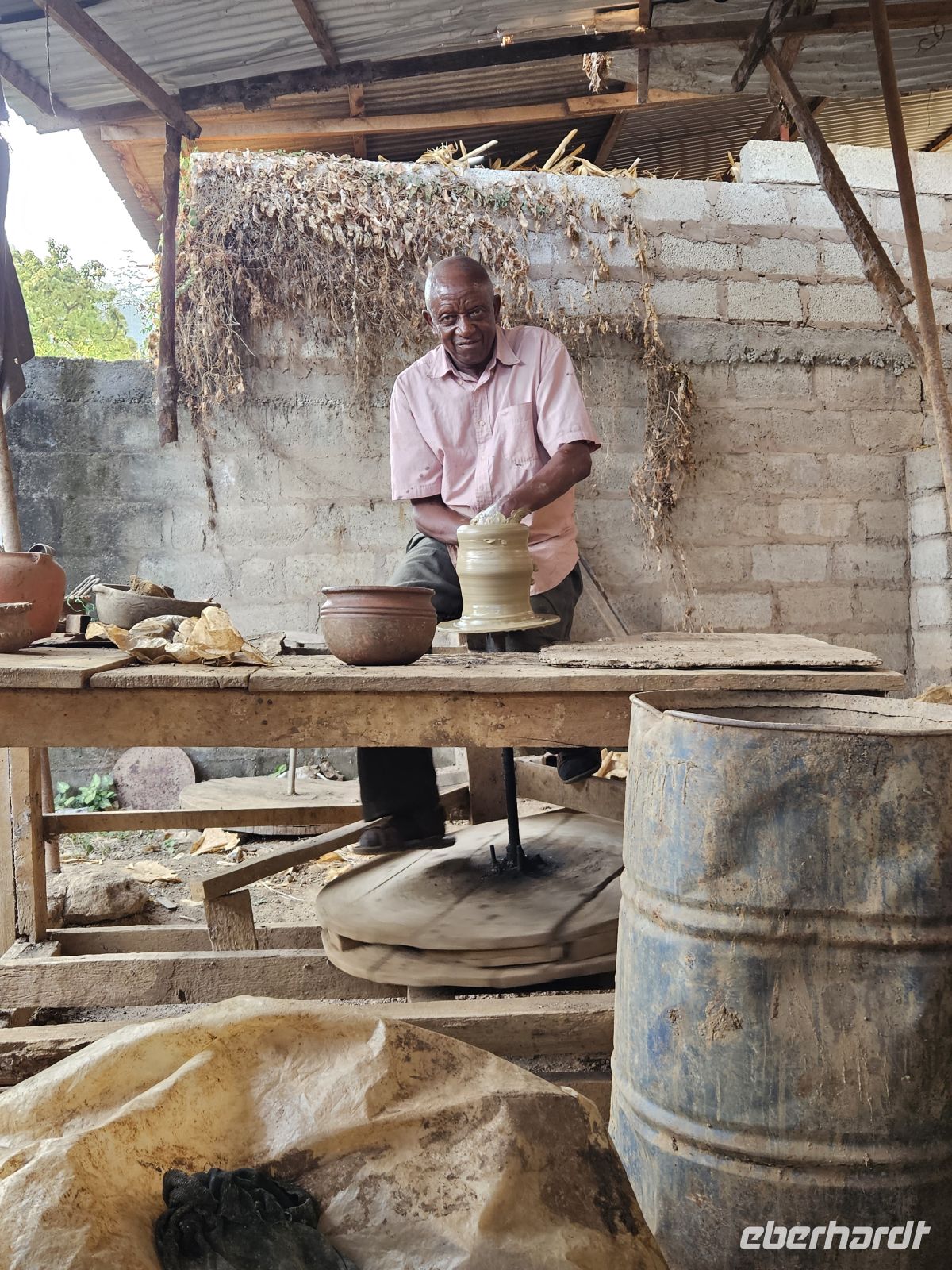 So ging es mit neuen Kräften weiter zu einer Töpferei. Hier brachte uns der Töpfermeister Mdekirwa Kitomary sein Handwerk näher. Er zeigte uns, wie er aus Tonblöcken eine geschmeidige Masse gewinnt. Auf einer Drehscheibe kann man geübten Handgriffen schon nach kurzer Zeit ein Tongefäß formen. Dieses wird im Anschluss gebrannt und geschliffen. Tongefäße eignen sich bestens zur Aufbewahrung von Lebensmitteln, da sie die Produkte kühl und trocken lagern. In der Region rund um den Mount Merou findet jeden Mittwoch und Samstag der große Wochenmarkt statt. Auf diesem werden die Tongefäße, aber auch Obst und Gemüse aus heimischen Anbau verkauft. So fuhren wir vorbei an einigen Bananenplantagen und einem riesigen Markt, an dem nur Möhren verkauft wurden.