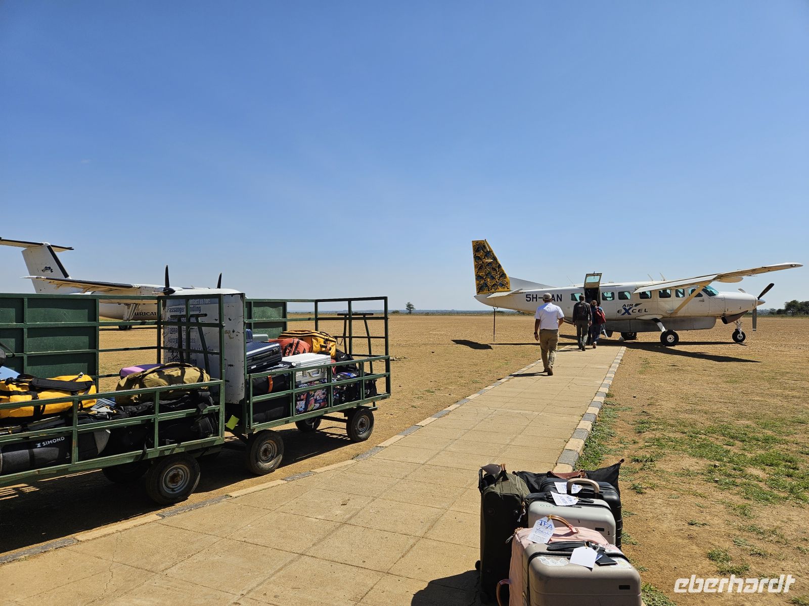 Am Morgen frühstückten wir noch alle gemeinsam in der Lodge und wurden von Brian und Furah mit den Jeeps zum 17 Kilometer entfernten Flughafen Seronea gebracht. Hier verabschiedeten wir uns zunächst von unseren beiden Guides Brian und Furah. Die beiden hatten uns während der Reise viel Wissen über die Tiere, die uns unterwegs begegnet sind, vermittelt und waren immer fröhlich und gut gelaunt. In Seronea hieß es auch bereits sich von der Hälfte der Gruppe zu verabschieden: vier Gäste flogen weiter nach Sansibar und sollten die kommenden drei Tage tolle Sandstrände und alle Annehmlichkeiten des 5-Sterne-Hotels Bayview Beach Resort genießen.