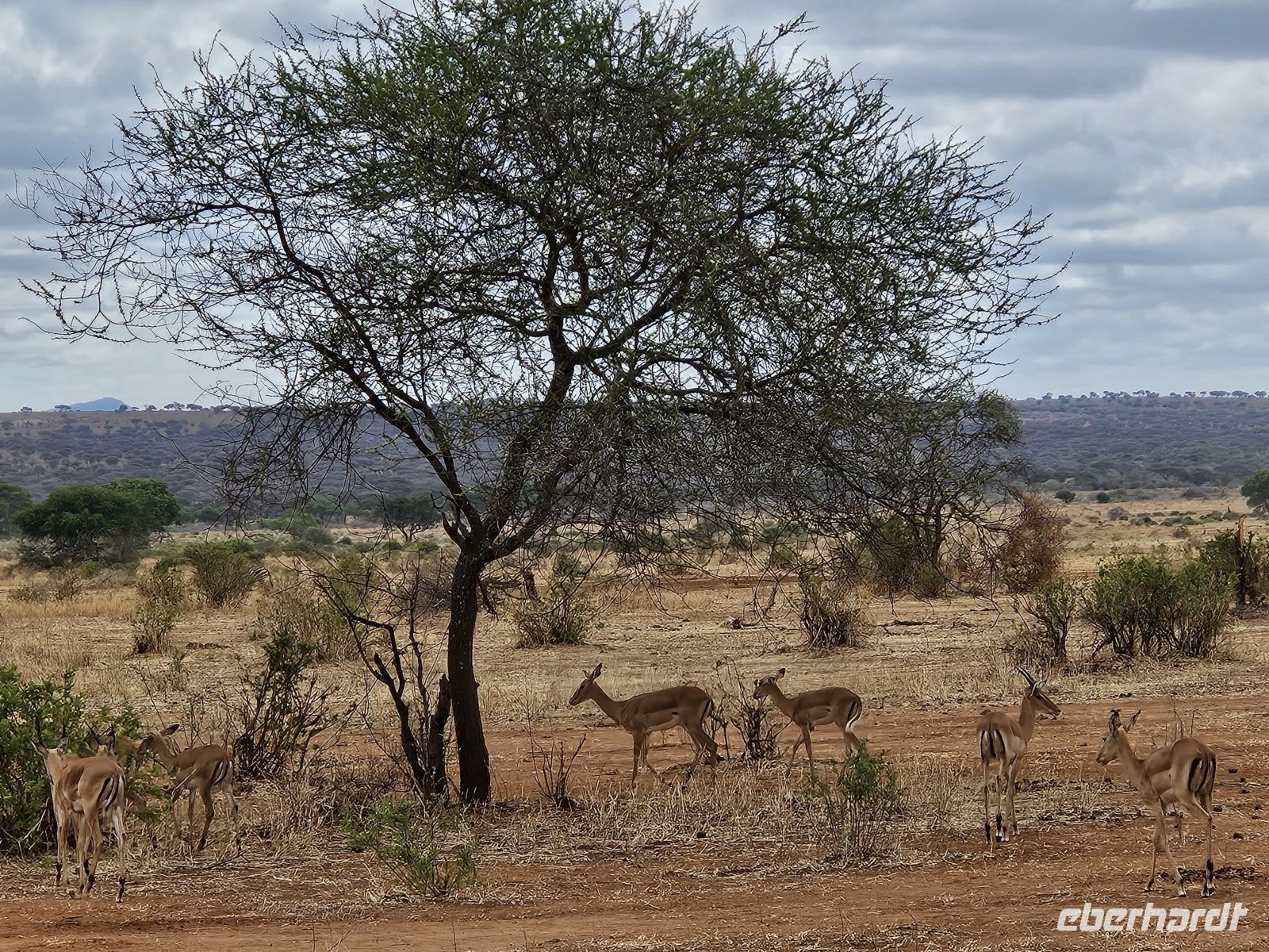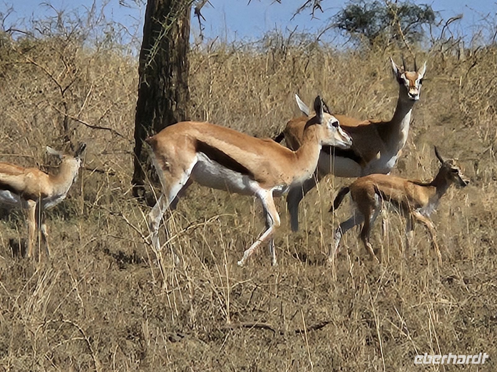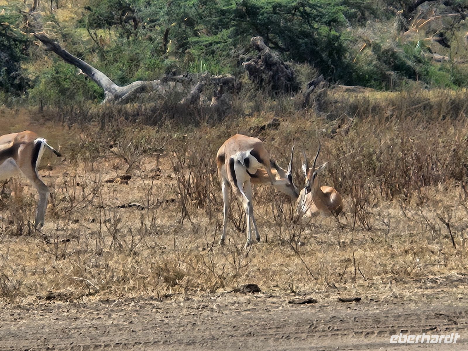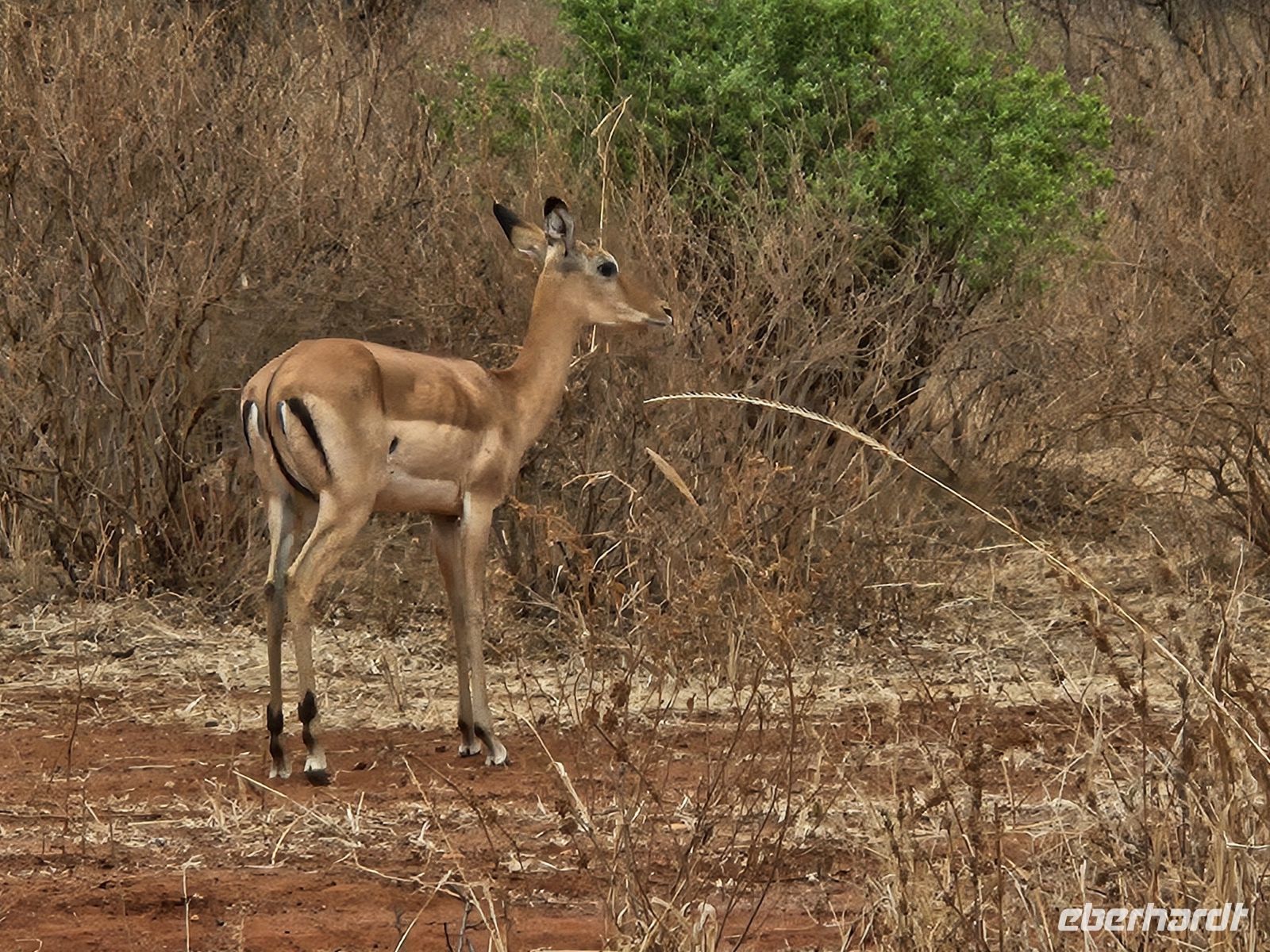 Gerade Impalas waren uns an diesem Tag aber auch einige begegnet. Die Streifen an ihrem Hinterteilen erinnern an das geschwungene M der Fastfoodkette „Mc Donalds“ – weswegen Furah sie oft scherzhaft so nannte.
