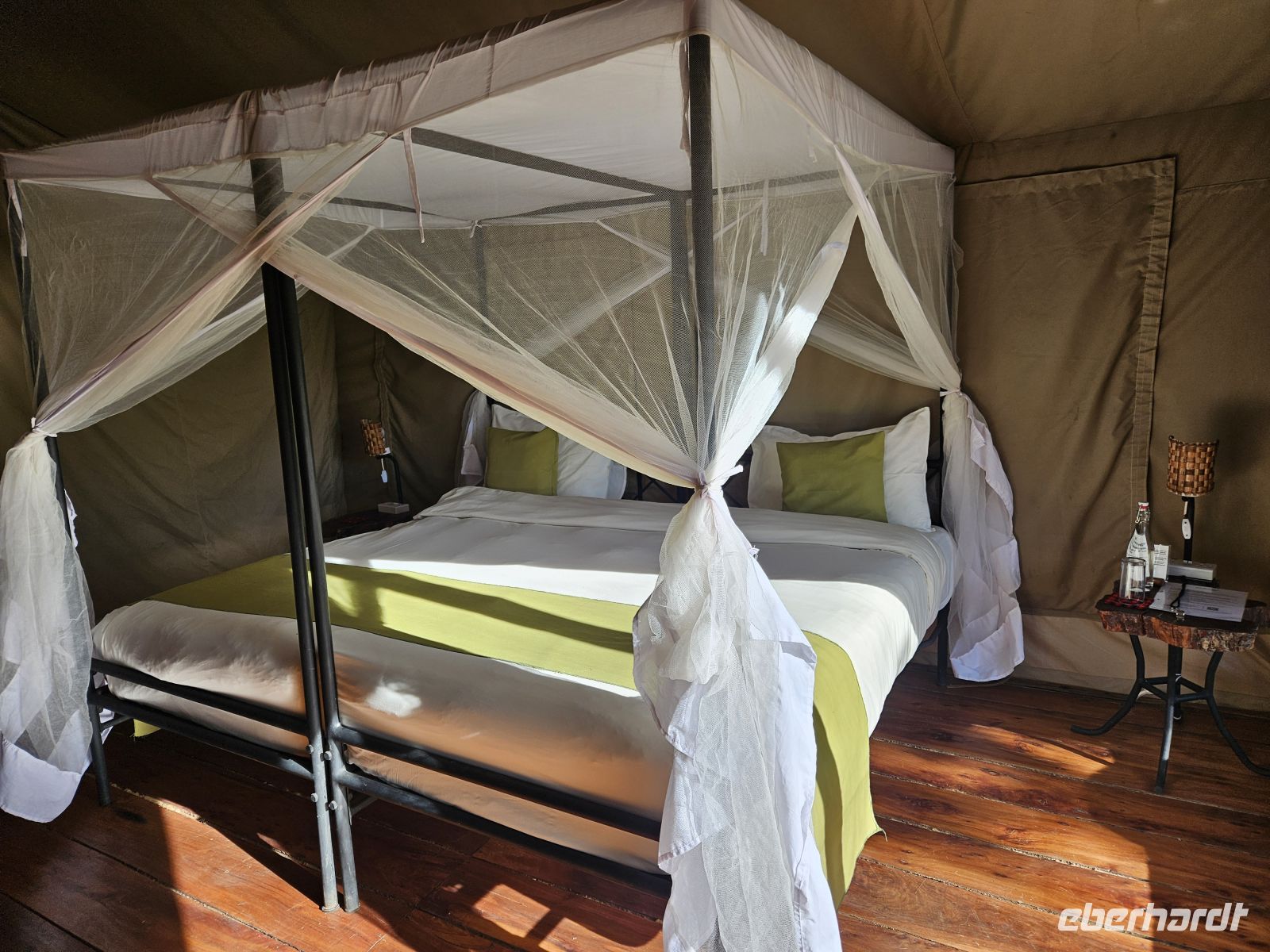 Da sich die Lodge direkt im Nationalpark befindet, ist es nach Eintreten der Dunkelheit nicht mehr erlaubt die Lodge ohne einen Ranger zu betreten oder zu verlassen. Mit Hilfe eines Walkie-Talkies, dass sie in jedem Zelt befindet, kann man den Ranger entsprechend zu seinem Zelt rufen.