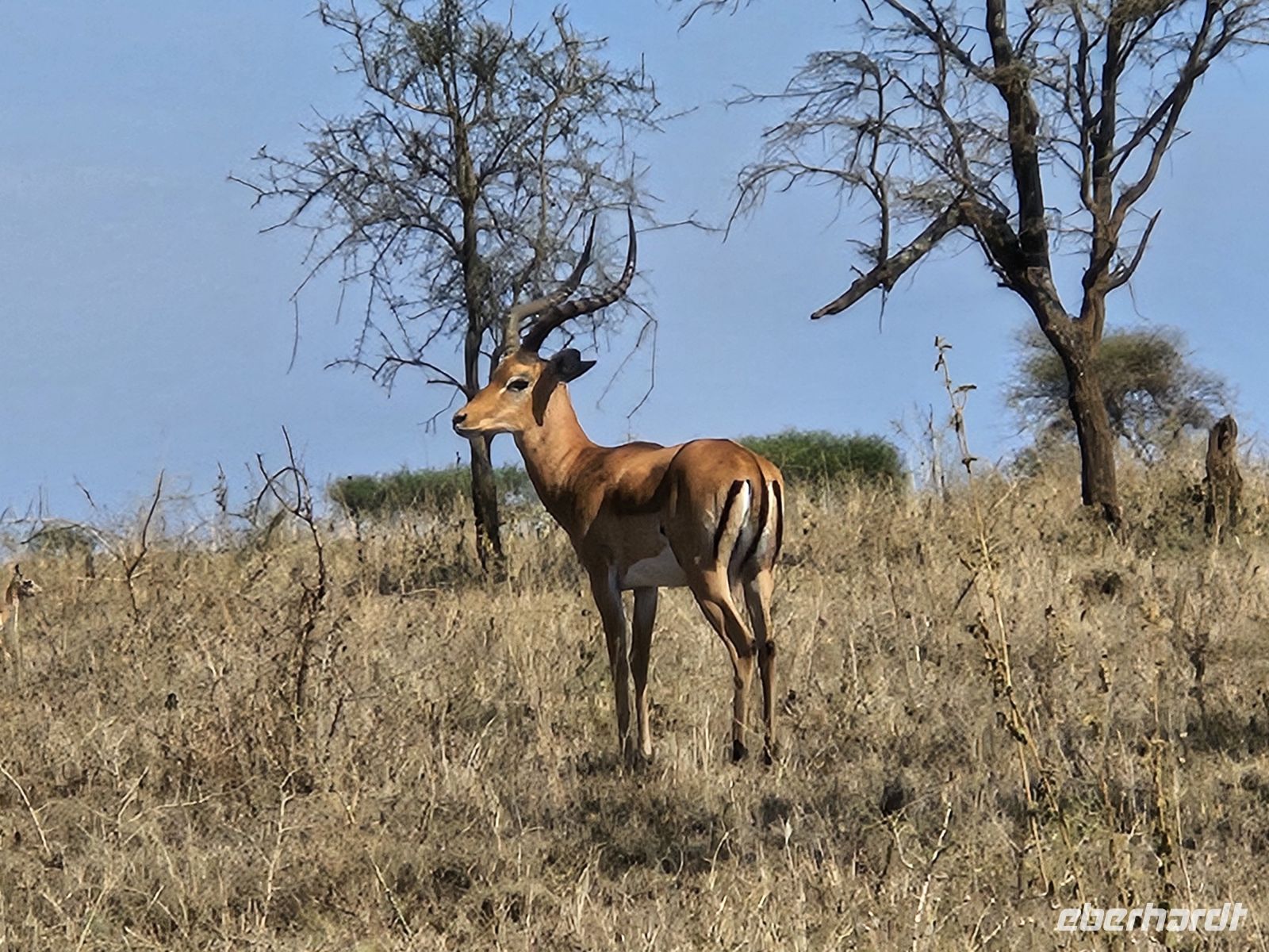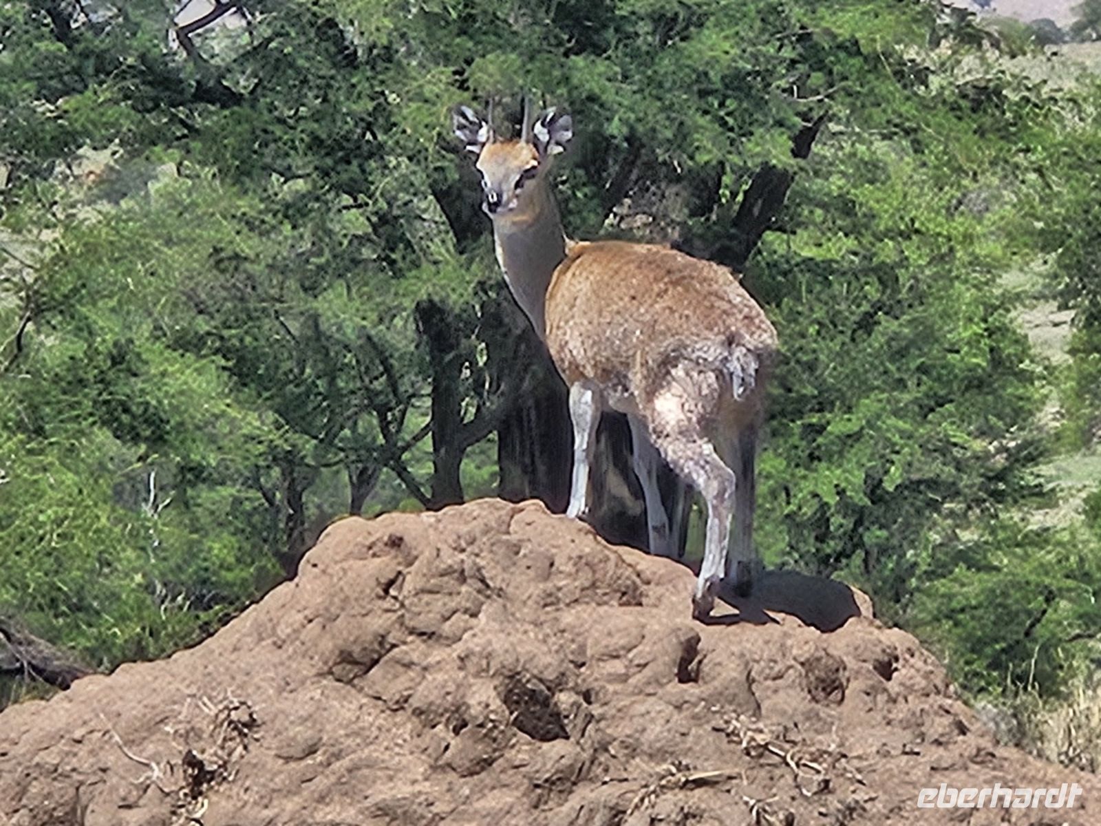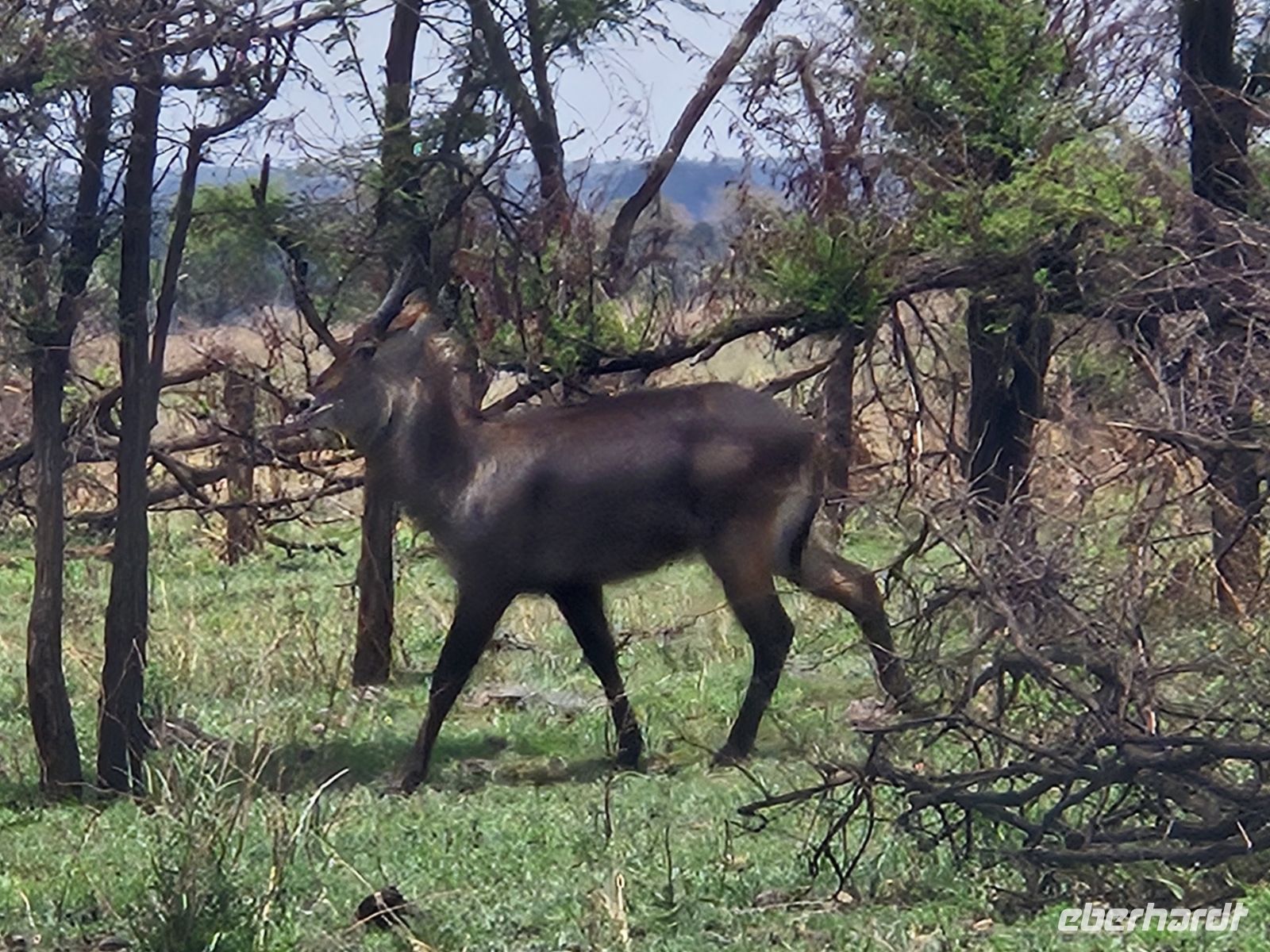 Neben vielen Impalas und einigen Dikdiks, erblickten wir heute auch einen Wasserbock. Bei diesem handelt es sich ebenfalls um eine Antilopenart und er bevorzugt Lebensräume in der Nähe von Wasserquellen wie Flüssen, Seen und Feuchtgebieten.