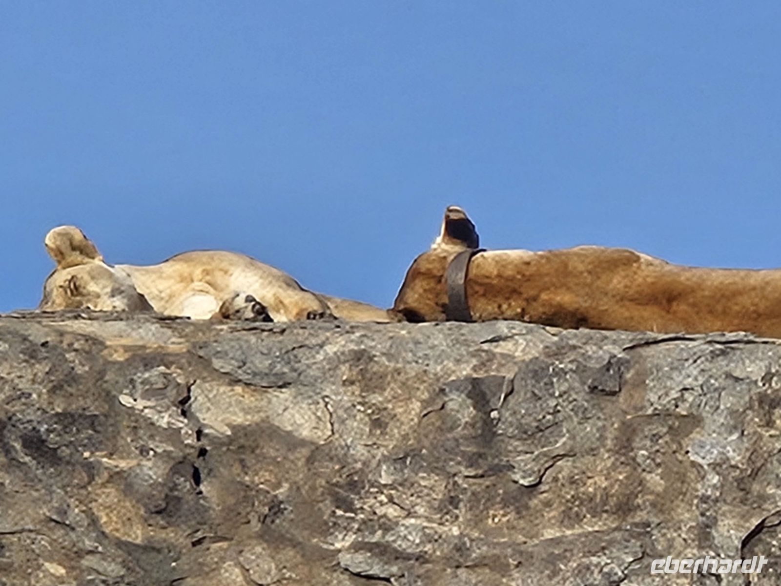 Auf der Fahrt Richtung unserer Lodge für die kommenden zwei Nächte, herrschte unter den Driverguides auf einmal helle Aufregung und über die Funkverbindung des Jeeps wurden immer mehr Informationen ausgetauscht. Auf einmal standen wir mit dem Jeep vor einer Gruppe von Löwinnen, die ihre Jungen beschützten und schon langsam vor sich hindösten. Somit hatten wir bereits 2 der sogenannten Big Five gesehen. Neben