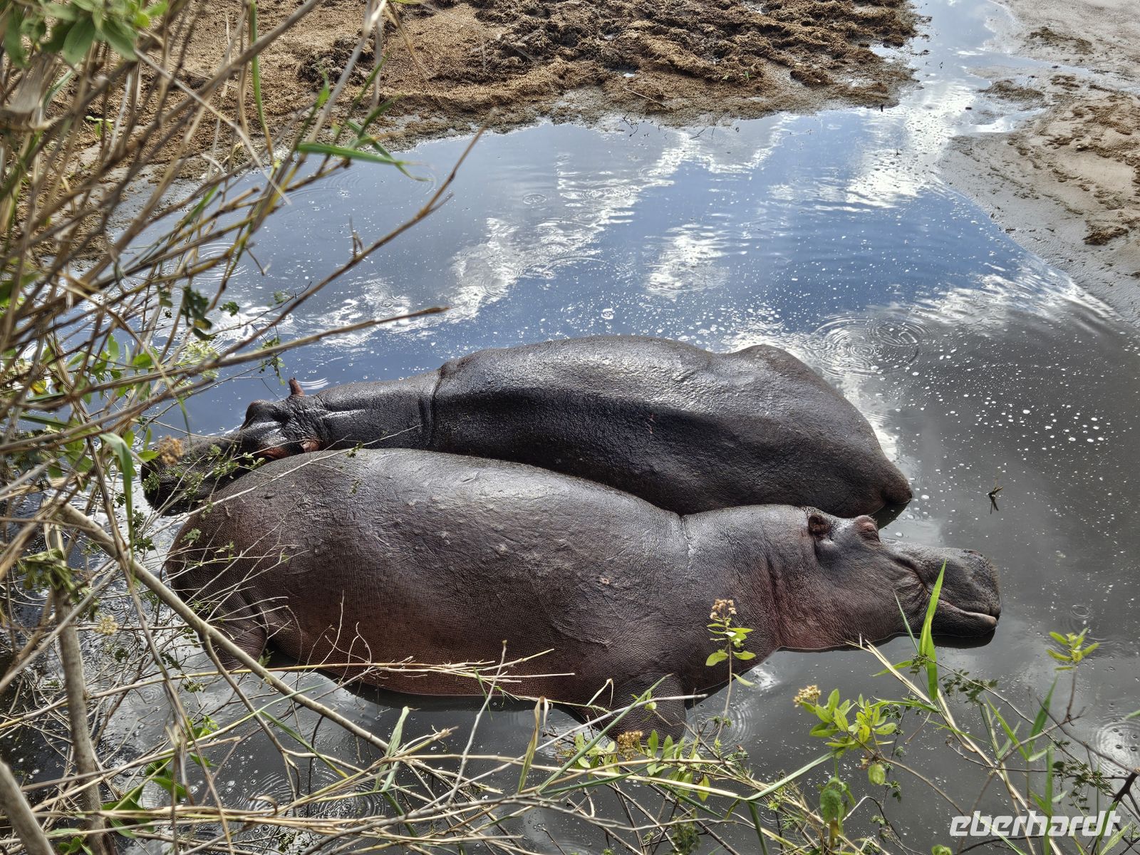 Auf unserer Nachmittagspirschfahrt fand sich sogar ein Hippopool neben einem Rastplatz, an dem man aus dem Jeep aussteigen durfte. Auf diese Art und Weise kamen wir den Nilpferden sehr nah und konnten wieder ein paar tolle Fotos machen.