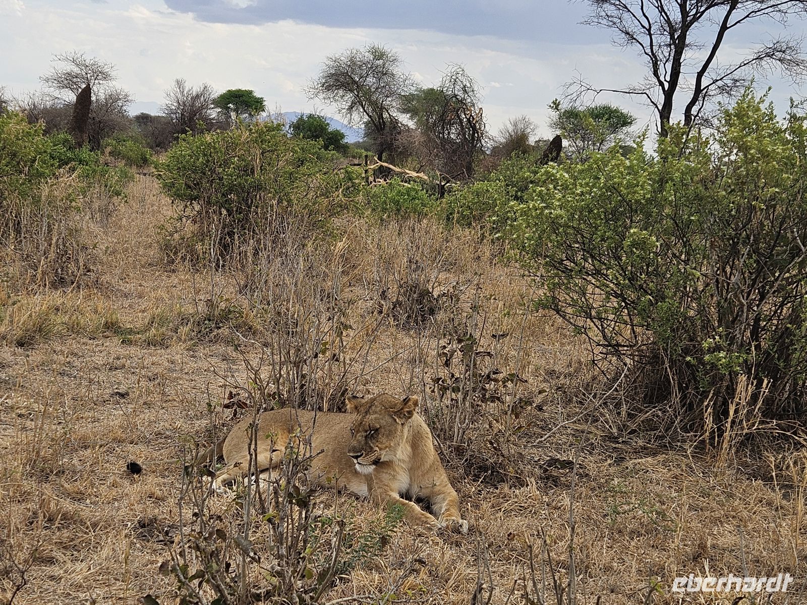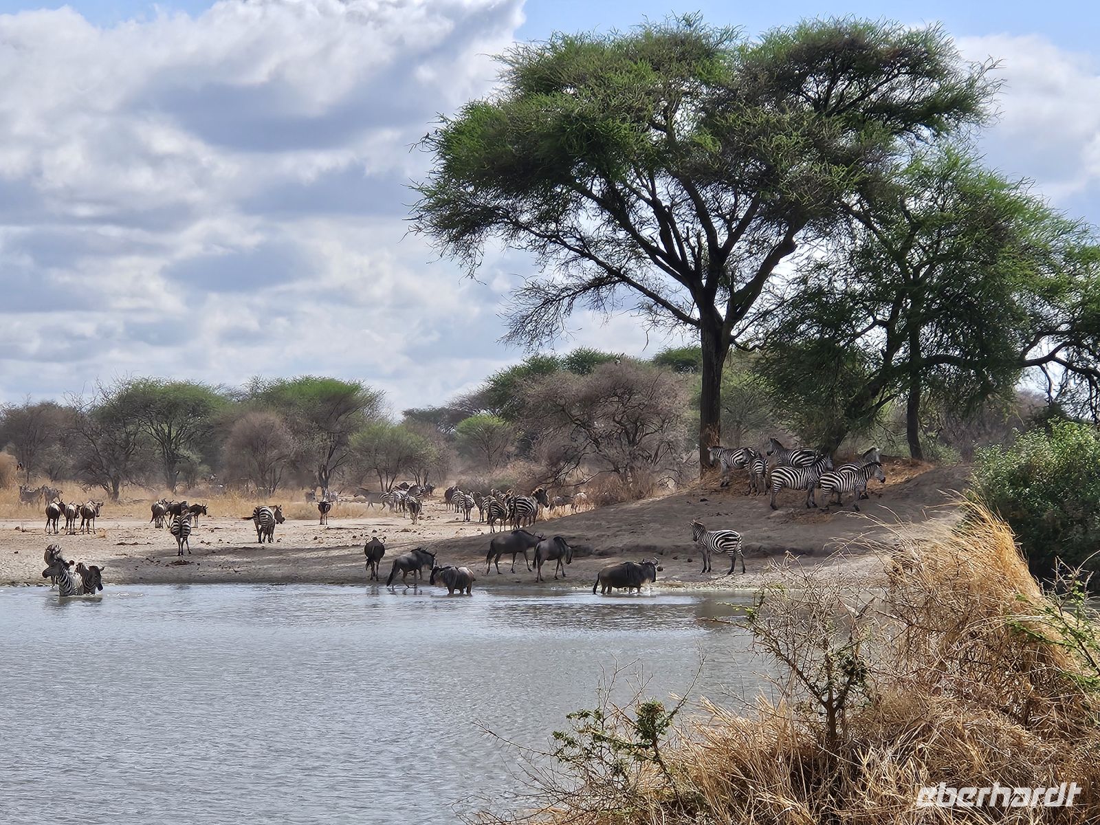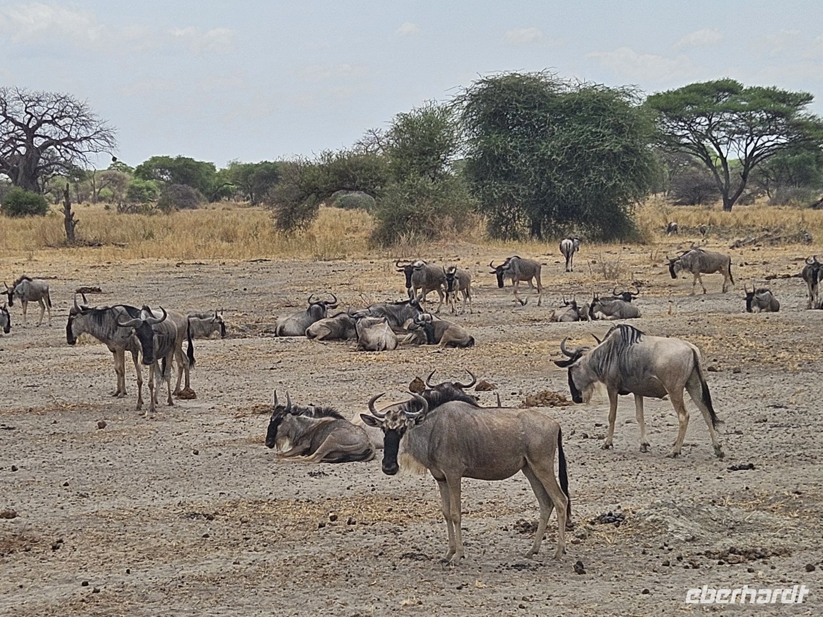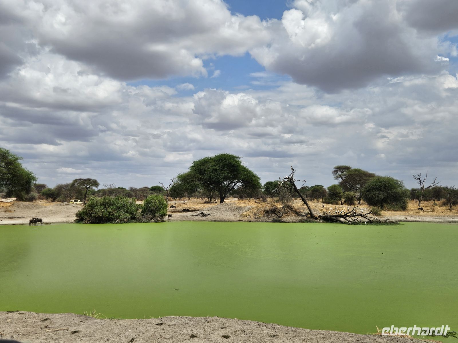 Am Tarangire-Fluss erblickten wir auch Büffel und sichteten aus der Entfernung und mit Hilfe eines Fernglases sogar die ersten Löwen. Unser Driverguide Brian erzählte uns, dass sich der Name Tarangiere aus den beiden Worten „Tara“ und „Ngiri“ zusammensetzt. „Tara“ heißt übersetzt „Fluss“ und „Ngiri“ „Warzenschwein“.