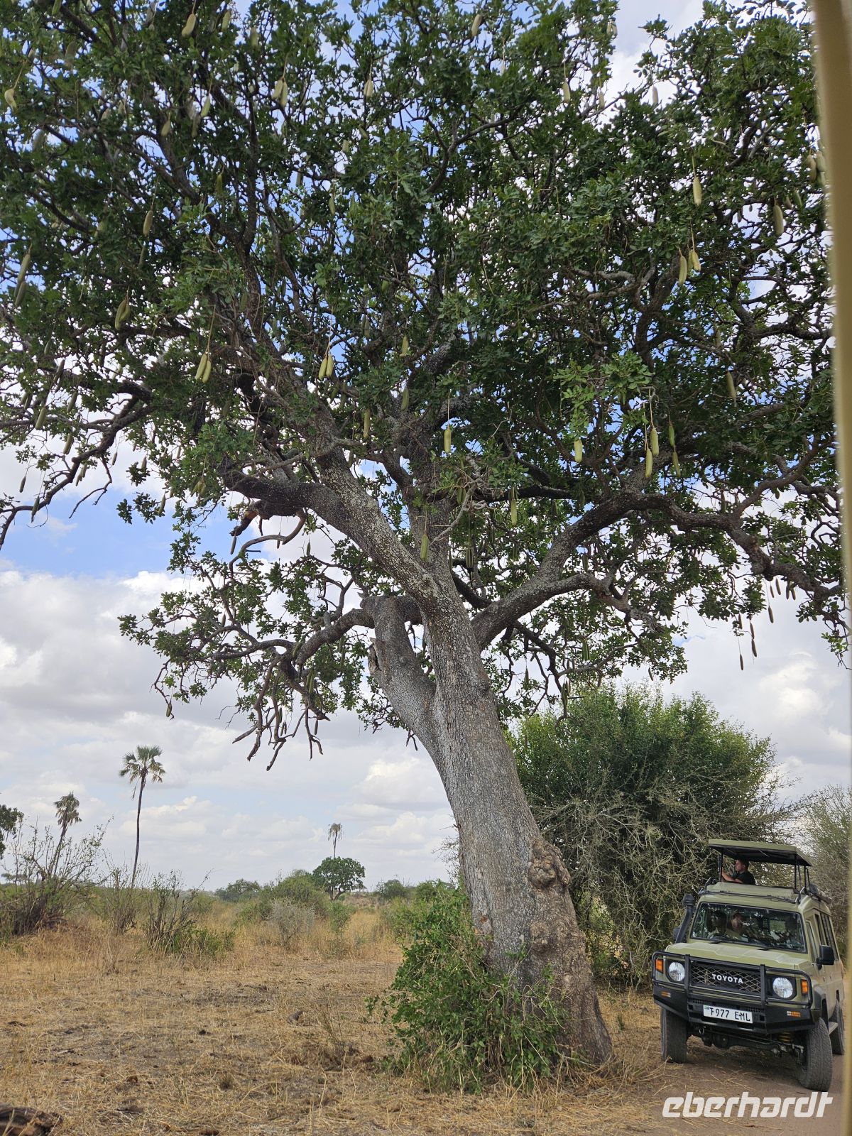 Der Tarangire-Nationalpark ist zudem bekannt für seine riesigen Affenbrotbäume (Baobabs), die an ihren breiten Stämmen und breiten, verwurzelten Ästen gut zu erkennen sind. Diese uralten Bäume speichern Wasser, bieten Unterschlupf und sind eine wichtige Nahrungsquelle für Elefanten und andere Tiere. Aus diesem Grund werden sie oft auch als „Baum des Lebens“ bezeichnet.