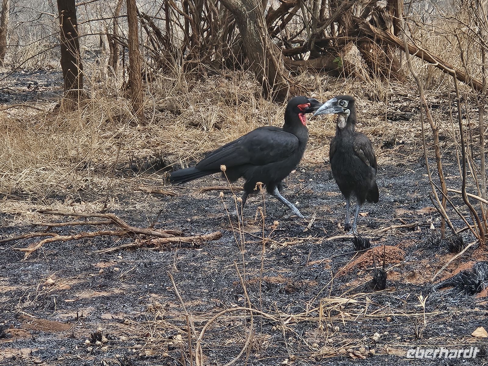 Während unserer Pirschfahrt entdeckten wir auch ein paar schöne Vögel, wie den Kaffeehornraben, den Rot und Gelb Bartvogel und Rotschnäbel. Bei den Rotschnäbeln und den Kaffeehornraben hat nur das Männchen einen roten Raben. Bei den Vögeln kann man schon sagen, dass die männlichen Vertreter etwas stattlicher und farbenfroher, als die Weibchen sind. Mit diesem Aussehen haben es die Männchen leichter die Weibchen zu bezirzen.
