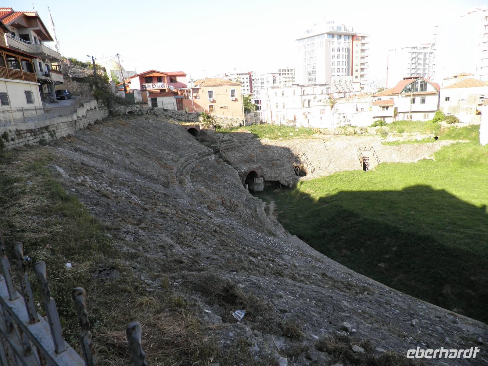 war der Besuch der Stadt Kruje. Hier lebte und kämpfte der albanische Nationalheld Skanderbeg gegen die Osmanen und für ein einheitliches Albanien. Ein Nationalmuseum ist seinen Wirken gewidmet. Wer sich noch kein Mitbringsel oder Andenken gekauft hatte konnte hier auf den landesweit bekannten Basar von Kruje fündig werden. Auf der Fahrt zu unserer Übernachtungsstätte legten wir noch einen Besichtigungsstopp in Durres ein um das dort befindliche Amphitheater aus römischer Zeit zu besichtigen. Anschließend fuhren wir zu unserem Hotel "Tropical Ressort", einer schönen Hotelanlage in einer Parklandschaft am Rand von Durres.