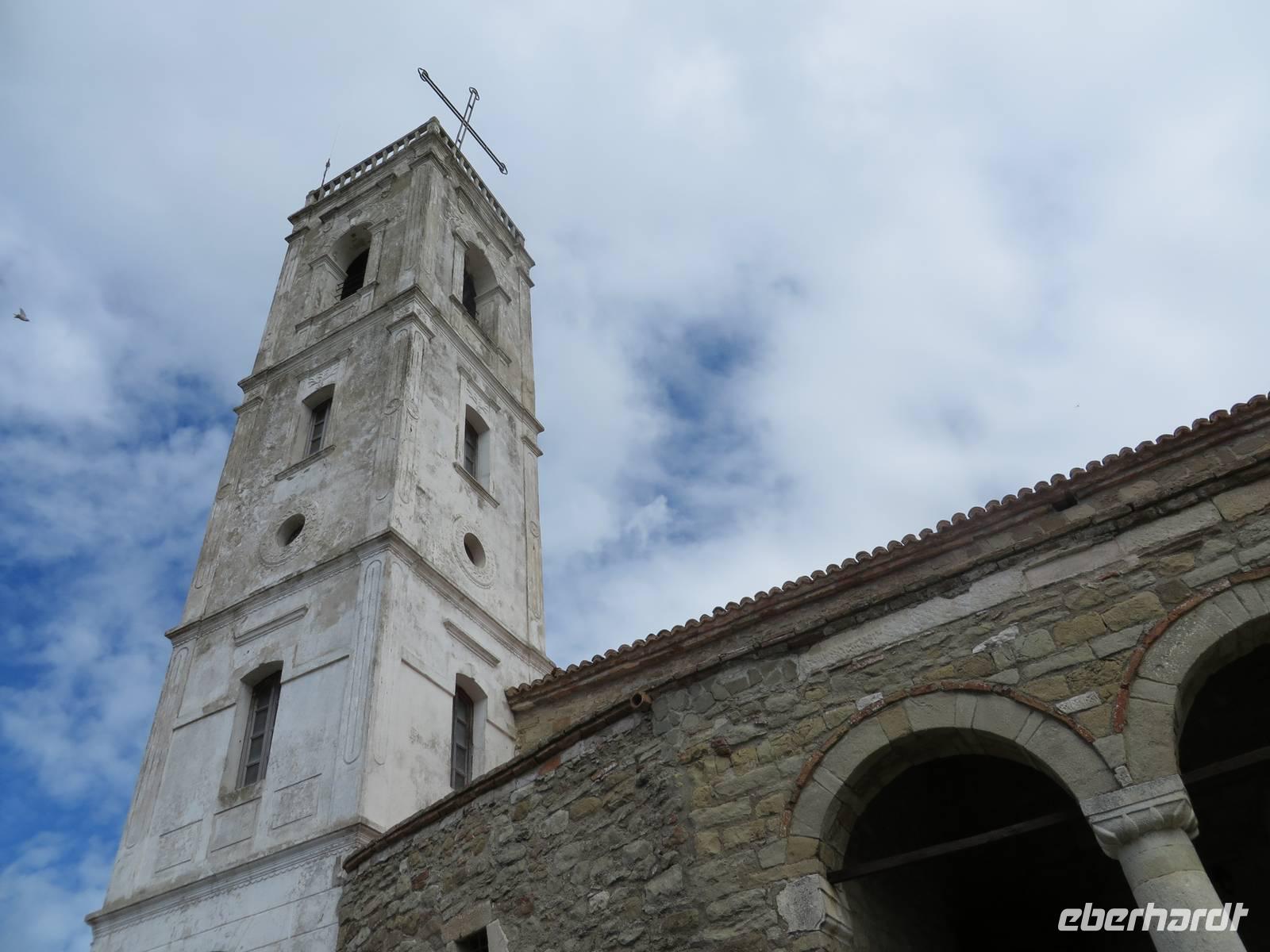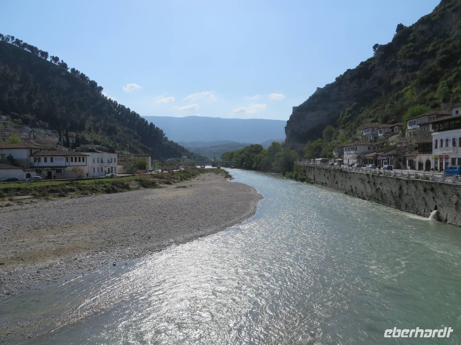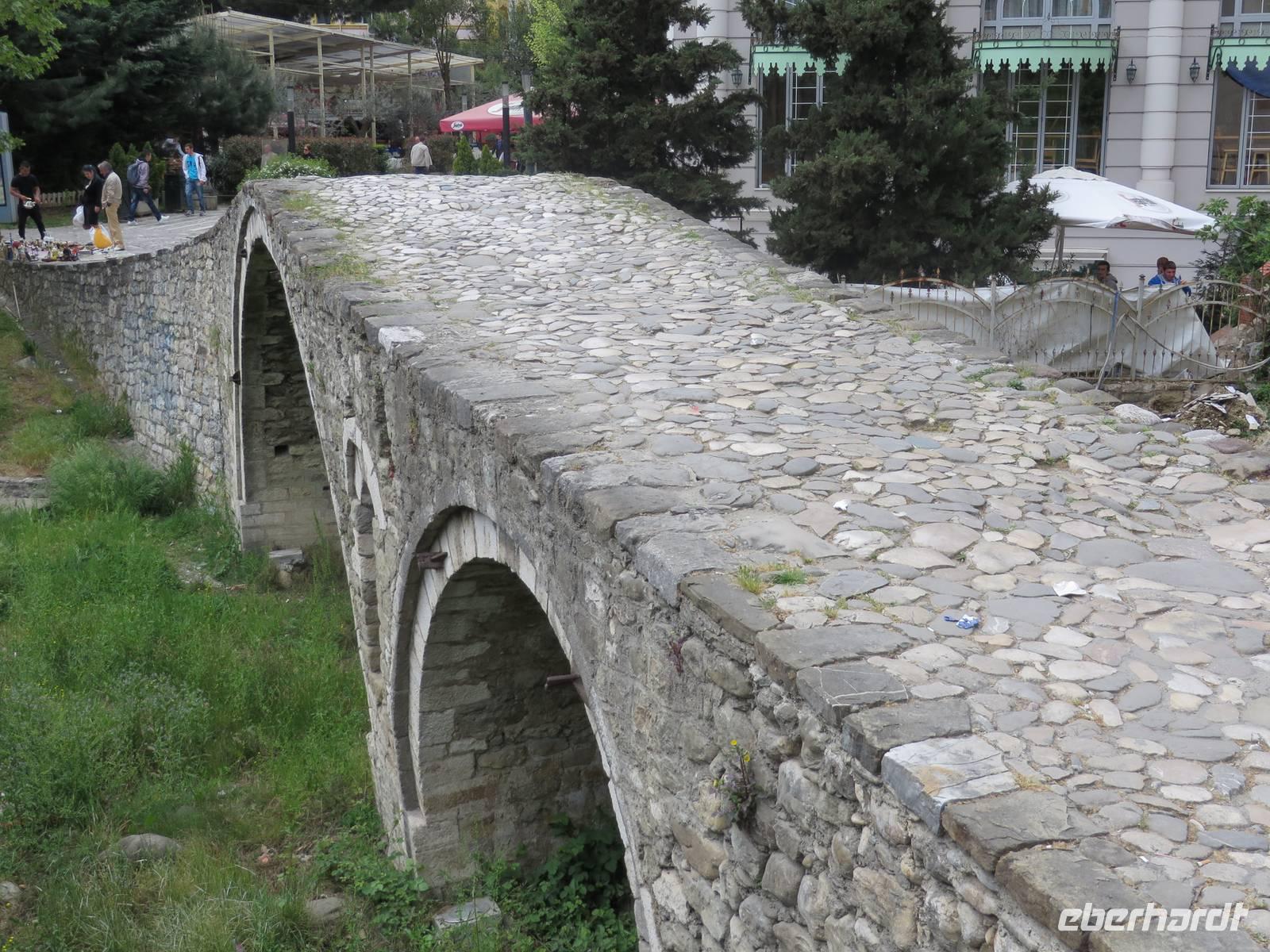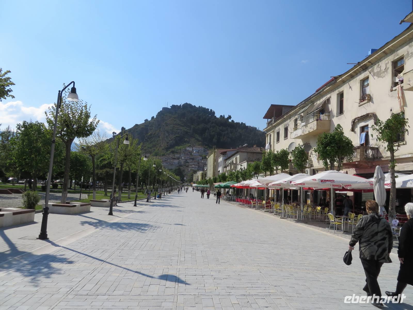 Der Tag beginnt um 7.30 Uhr mit einem Frühstückbuffet im Hotel. Das Restaurant ist klein, aber die Versorgung super. Der Kaffee wird sogar jedem persönlich an den Platz gebracht. Um 9.00 Uhr verladen wir die Koffer und fahren Richtung Berat. Koli stellt uns eine albanische Spezialität vor - den „Skanderbeg" ein albanischer Weinbrand, der seit 1967 in Tirana hergestellt wird und als Nationalgetränk der Albaner gilt. Die Stimmung ist ausgezeichnet. Die Straße ist gut ausgebaut und so sind wir nach knappen zwei Stunden in Berat. Die Stadt ist der Stolz der albanischen Geschichte und Teil des UNESCO Kulturerbes. Auf dem Weg zur Festung ist heute ein Filmteam unterwegs, das gerade dabei ist, ein Musikvideo zu drehen. Ihre Begeisterung darüber, dass wir stehen bleiben und sie von allen Seiten fotografieren, hält sich verständlicherweise in Grenzen, aber sie halten höflich aus, bis wir uns verziehen. Zweitausendvierhundert Jahre haben östliche und westliche Kulturen in der Festung ihre Spuren hinterlassen. Innerhalb der Anlage gibt es freskenreiche Kirchen und eine Schule für Ikonenmalerei. Besonders interessant macht die Festung, dass sie heute noch bewohnt ist. Freundlich werden wir in das eine oder andere Haus eingeladen. Auf Grund der Vielzahl der übereinander gebauten Fenster wird Berat auch „die Stadt der tausend Fenster" genannt. Mit guter Kondition erobern wir die Stadt auf rutschigem Kopfsteinpflaster, das zwar schön aussieht, aber die Besichtigung doch recht beschwerlich macht. Ordentlich geschafft legen wir eine Mittagspause im Restaurant unterhalb der Burg ein. Es gibt leckere Gemüsesuppe und einen Grappa vom Hause. Anschließend besuchen wir das MuseumOnufri-Museum. Er gilt als bedeutendster Vertreter der byzantinischen Malerei des 16. Jahrhunderts. Bekannt ist die vom ihm verwendete rote Farbe, die auch als „Onufri-Rot" bezeichnet wird. In unserem Programm ist keine Museumsführung vorgesehen, aber das Museum wird von einem enthusiastischen Guide betreut, der es sich nicht nehmen lässt, uns den Maler und seine Werke näher zu bringen. Auch die Ikonastase erklärt er uns in allen Einzelheiten. Übernachten werden wir heute im Hotel „Grand White City". Hier erwartet uns auch das Abendessen. Mit gefüllten Oliven, Paprikapastete und Bruscetta als Vorspeise, drei Sorten Teigtaschen, Lamm oder Chicken mit Reis und Kartoffeln zum Hauptgang und Joghurt mit Honig zum Nachtisch, so werden wir heute verwöhnt.