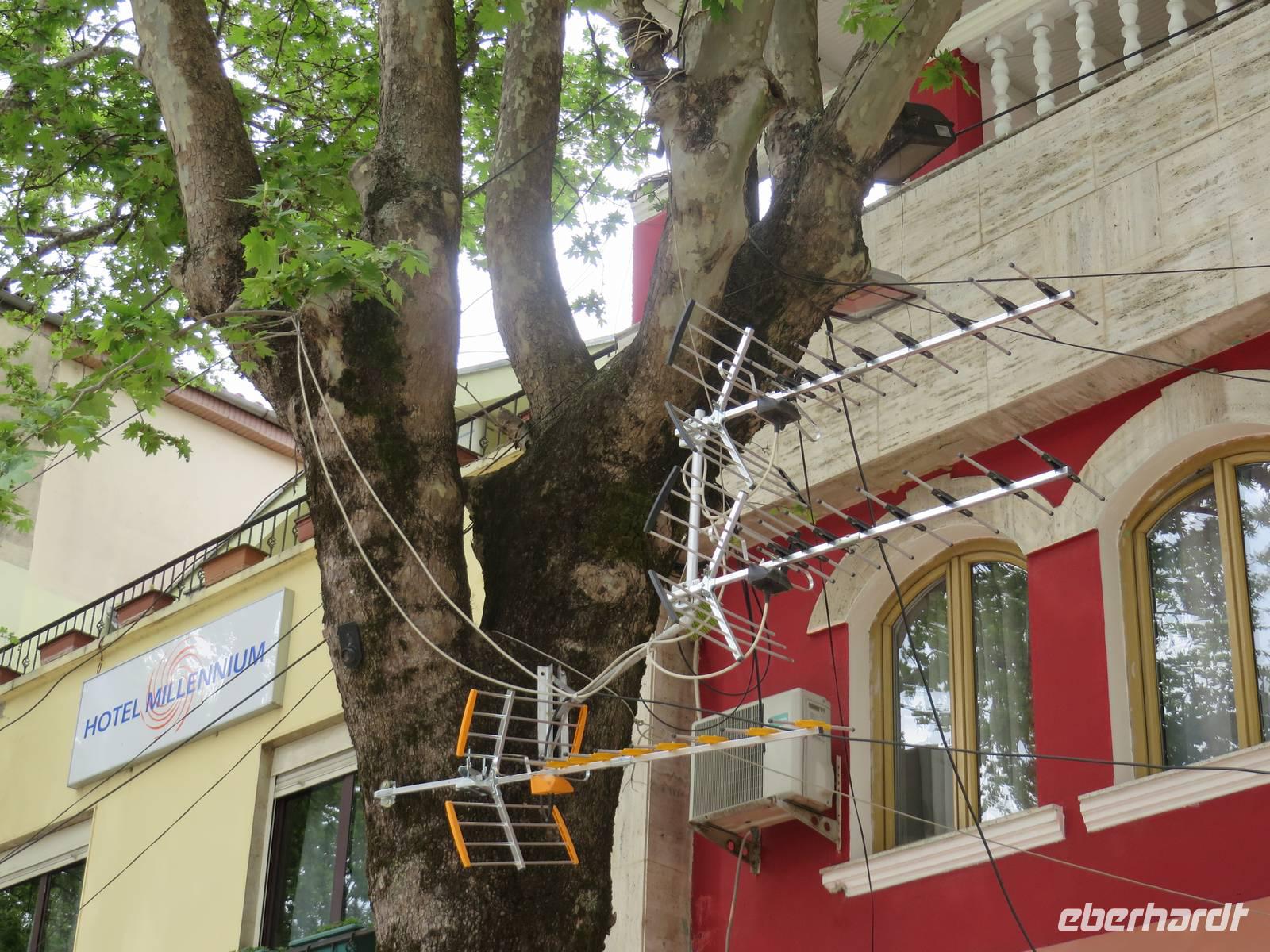 Der erste Tag beginnt ziemlich früh, eigentlich noch in der Nacht. Die ersten Gäste werden bereits eine Stunde vor Mitternacht abgeholt. Treffpunkt ist der Flughafen Dresden, Treffzeit 4.40 Uhr. Es ist nicht schwer, die Gruppenmitglieder auszumachen, denn außer uns, ist hier um diese Zeit kaum jemand. Demzufolge ist auch die Abfertigung unkompliziert, denn unsere Produktmanagerin Sylvia Sann hat die Gruppe schon am Vortag eingecheckt und wir müssen nur noch das Gepäck aufgeben. 06.10 Uhr startet unsere Lufthansamaschine LH 2131 nach München. Dieser Flughafen ist schon eine Nummer größer als der in Dresden. Wir können uns mit Kaffee versorgen und auch Zeitungen liegen aus. So vergeht die Zeit bis zum Anschlussflug nach Tirana schnell. Auch die Gäste aus Berlin haben jetzt die Gruppe gefunden. Noch zwei Stunden und schon landen wir in Tirana. Die Einreiseprozedur dauert so lange, dass das Gepäck bereits auf dem Band trudelt, als wir endlich durch sind. Am Ausgang stehen Koli und Dani, unsere beiden Begleiter für die nächsten Tage. Das Gepäck wird im Bus verstaut und unser Programm beginnt. Zunächst sammeln wir jedoch noch einen Gast ein, der schon im Hotel auf uns wartet. Die Stadtrundfahrt beginnt. Wir fahren durch die belebte Hauptstadt Albaniens, der Verkehr lässt sogar Großstädtern manchmal den Atem stocken. Die Verkehrsregeln scheinen hier nur auf dem Papier zu existieren, wenn überhaupt. Aber Autos gibt es jede Menge, vor allem die der Marke Mercedes. Wir fahren um den Skanderbeg-Platz (Sheshi Skanderbeg), vorbei an Gebäuden, die von Italienern erbaut wurden und an der Pyramide, einem Kultbau aus der Enver-Hoxa-Zeit, der allerdings ziemlich verfallen ist. Koli empfiehlt uns, ein paar Schritte zu Fuß zu gehen und wir sind froh, uns ein bisschen bewegen zu können. Wir überqueren die Gerberbrücke (Ura e Tabakëve), eine osmanische Steinbrücke aus dem 18. Jahrhundert, die früher am Stadtrand lag und über den Fluss Lana führte. Heute befindet sie sich mitten im Stadtzentrum, aber natürlich ist es Pflicht für uns Besucher, über dieses historische Bauwerk zu schreiten. Unser Ziel ist das historische Nationalmuseum, das landesweit größte Museum. An seiner Fassade befindet sich ein großes Mosaik, das die Geschichte Albaniens als ständigen Kampf darstellt, von den Illyrern bis zu den Partisanen im 2. Weltkrieg. Durch das Museum führt uns eine freundliche Dame, von der Antike über das Mittelalter bis zur Ikonensammlung. Die aktuelle, weniger zurück reichende Zeit, besichtigen wir nicht. Im Museum treffen wir dann auf unsere letzten Gruppenmitglieder, die auf eigene Faust nach Tirana gekommen sind, jetzt sind wir vollständig. Auf dem Rückweg zum Bus kommen wir an der Et'hem-Bey-Moschee vorbei. Es ist Freitag und viele Männer stehen vor der Moschee und beten gemeinsam. Wir fahren zum Hotel „Comfort", wo wir bereits vom freundlichen Personal erwartet werden. Jedoch reicht die Zeit nur, um sich frisch zu machen und schon geht es wieder los. Das Abendessen nehmen wir im Restaurant „Lions Park" ein. Das Menü beginnt mit einer leckeren Gemüsesuppe, danach gibt es Nudeln, danach Cordon Bleu und zum Abschluss Tiramisu. Also, hier steht keiner hungrig vom Tisch auf.