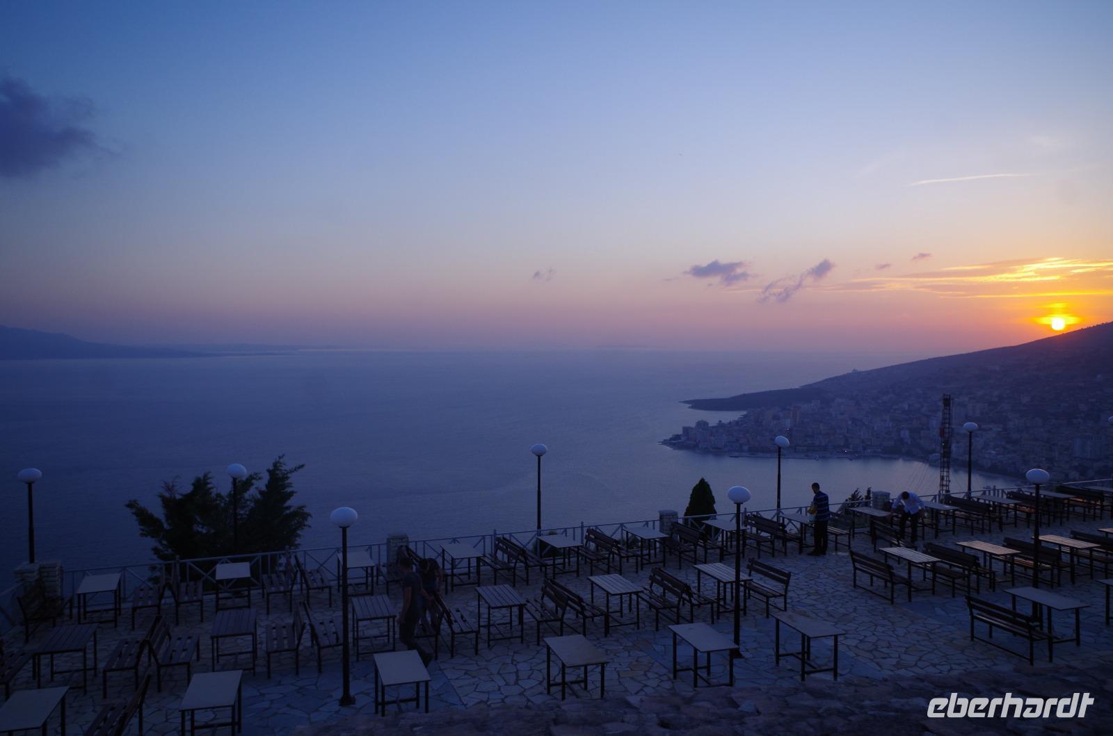 Von Gjirokaster und seiner malerischen Umgebung fahren wir durch die Hochebene und vorbei an weitläufigen Weinfeldern und Obstplantagen. Wir erreichen das „Blaue Auge", eine Süßwasserquelle, die durch die unterliegenden Steine türkis-blau schimmert. Mutige Seelen unter uns haben sich schnell ihrer Schuhe entledigt und sind etwa knietief in das eiskalte Wasser gewatet. Gemeinsam mit Fröschen, Libellen und anderen Kleintieren konnte man so Teil der Natur sein. Der Grund der Quelle wird auf ca. 45m Tiefe geschätzt, doch ist noch niemand je so tief in die Höhle getaucht. Zudem informiert uns Iliriana über den Eigenwillen der Quellen, die zeitweise versiegte, als im Gespräch stand ein touristisches Zentrum in der Region zu errichten. Auch eine alte Legende von einer aus dem Meer verbannten Schlange, die die Quelle untrennbar mit dem Fels durch einen bösen Fluch verband, erzählt Iliriana uns. Albanien entpuppt sich nach und nach als Land der Sagen und Märchen. Wir verlassen die Hochebenen und fahren entlang der Serpentinenstraßen in Richtung Küste. Heute funkelt uns das ionische Meer entgegen und Saranda heißt uns willkommen. Albanien ist im Umbau und besonders hier wird uns dies bewusst, denn selbst Romeo gerät hier an die Grenzen seiner Streckenkenntnis. Doch Albanien ist ein ausgesprochen gastfreundliches Land und der Besitzer unserer heutigen Unterkunft kommt auf einem Moped zu uns gefahren und leitet uns zum Hotel und zum Strand. Heute Nachmittag haben wir noch Zeit für einen Sprung ins kühle Nass, doch zuvor fahren wir aus Saranda hinaus und nach Butrint. Durch das venezianische Tor gelangen wir zu den Überresten der Agora - dem Stadtzentrum der antiken Siedlung aus dem 4. Jahrhundert v. Chr.. Anhand der unterschiedlichen Steingrößen der Mauerreste können wir erkennen, dass Butrint über die Jahrhunderte von verschiedenen Stämmen besiedelt und bebaut wurde. Unser örtlicher Guide erzählt uns von Asketius, dem antiken Heiler, der von Zeus bestraft dafür bestraft wurde, dass er die Menschen heilte und ins Leben zurückbrachte. Noch heute ist das Symbol des Asketius mit seinem Holzstab und der umwindenden Schlange als Zeichen für Heilung weltweit bekannt. Wir schlendern durch die weite Anlage und genießen einen malerischen Blick über die Bucht bevor wirdie Stufen von der Anhöhe hinabsteigen und zurück nach Saranda fahren. Hier stecken wir die Füße oder gleich den ganzen Kopf in das ionische Meer und treiben auf den Wogen des Meeres oder ganz entspannt für ein paar Stunden im hoteleigenen Pool. Am Abend fahren wir zur Burg von Saranda auf. Hier genießen wir einen traumhaften Sonnenuntergang mit Blick über das Meer und bis nach Korfu. Hatten wir bereits bei der Fahrt von Gjirokaster nach Permet die griechische Grenze gesehen, so liegt sie heute ebenfalls nur wenige Meter von uns entfernt. Zum Abend gibt es heute Fisch und eine Folkloregruppe lockert den Abend auf. Lustig tanzen die Männer und singen im Einklang mit den Damen zusammen und das Publikum klatscht begeistert im Takt. Von alten historischen Gebäuden bis lebendig-gehaltener Tradition hat der heutige Tag alles in petto gehabt.