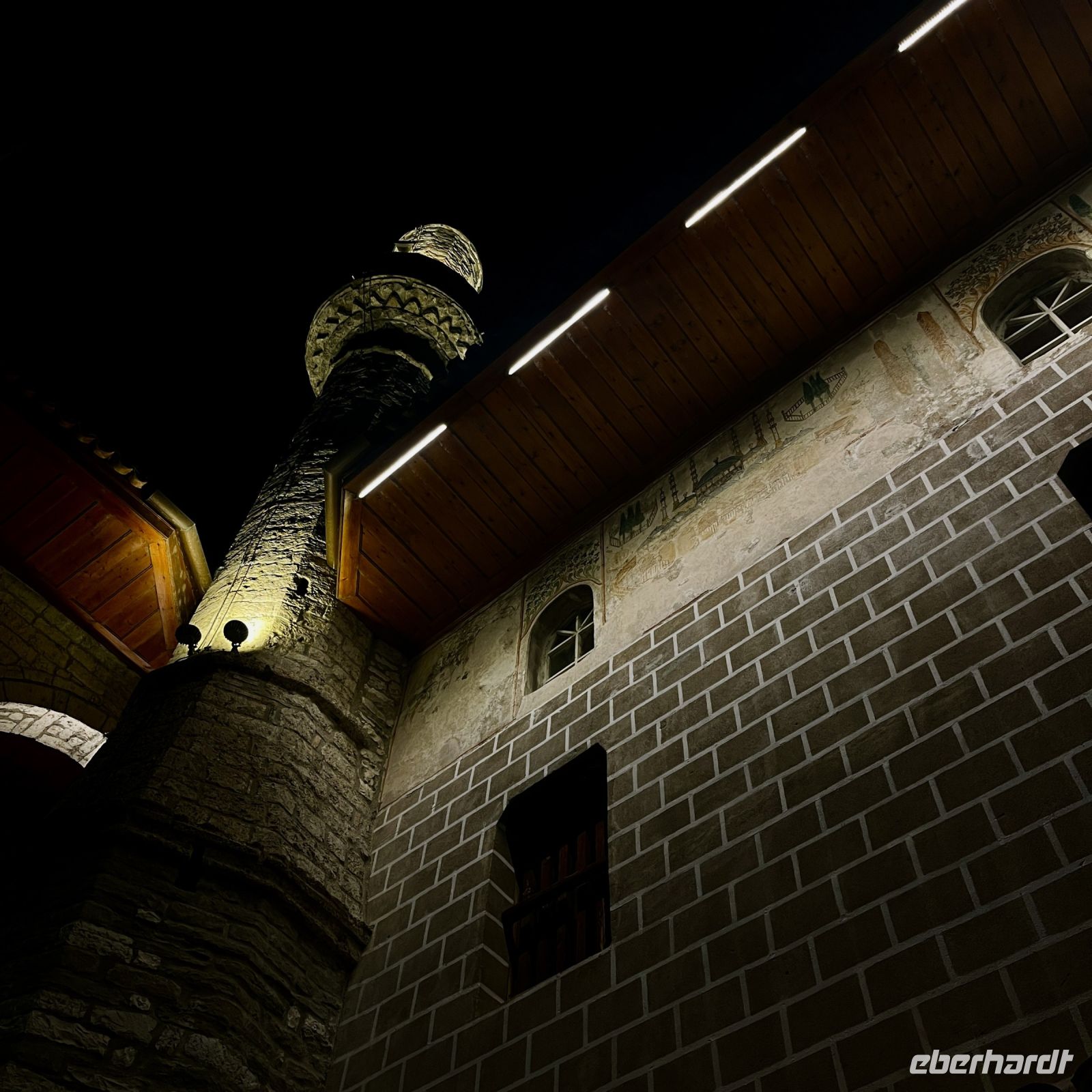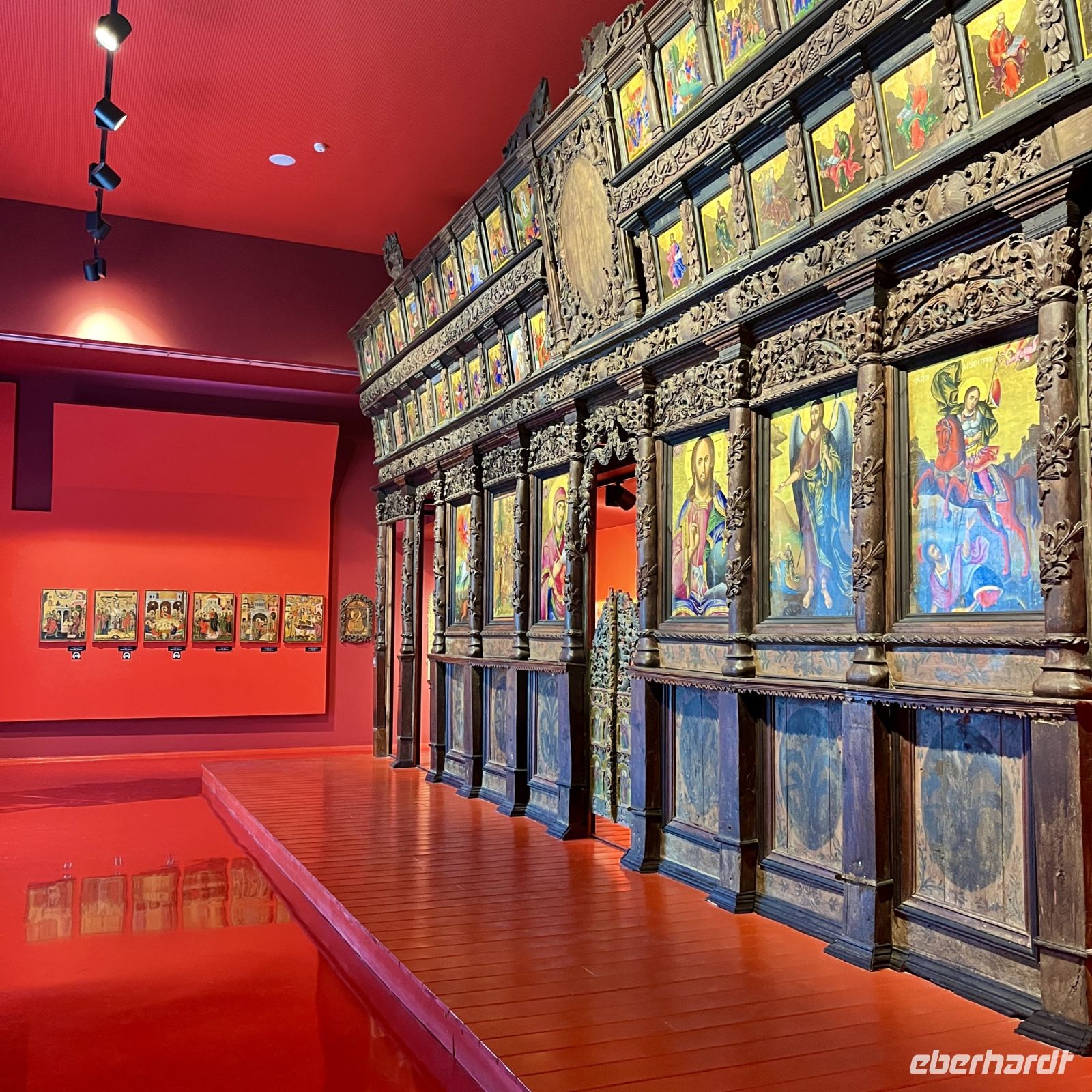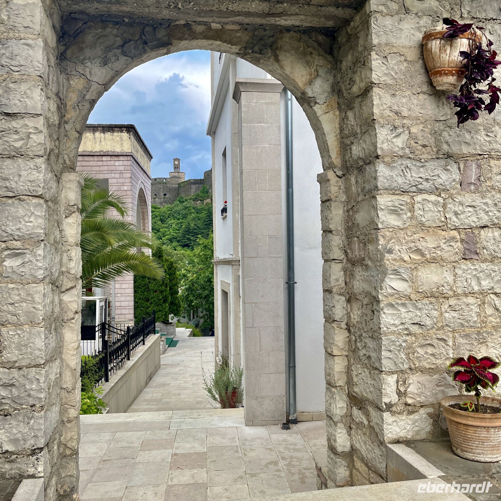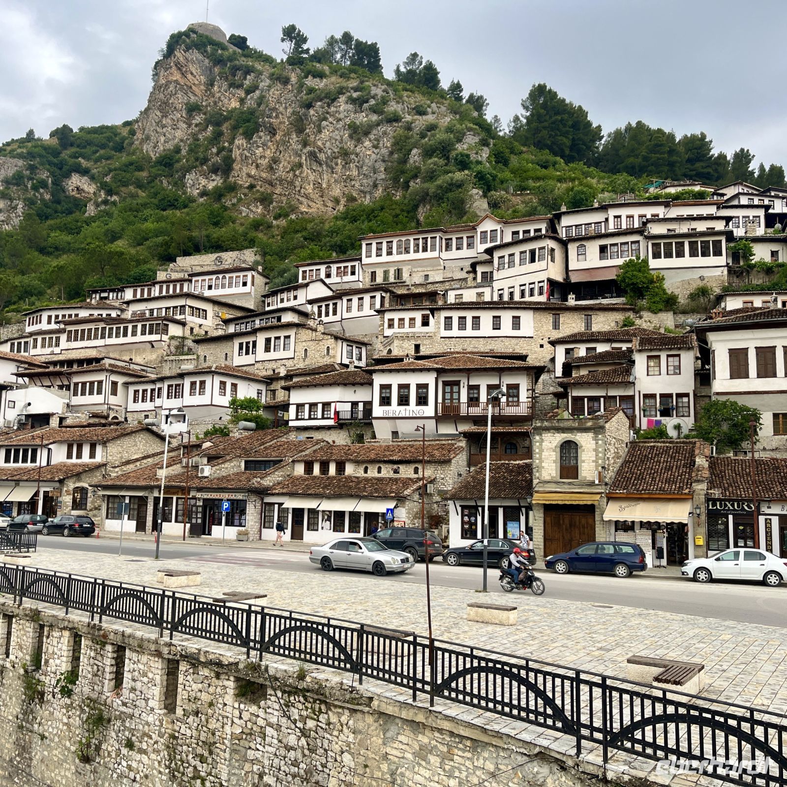 Nach der Besichtigung der Ruinen fuhren wir zur Burg von Berat, die auf der Spitze der Stadt der tausend Fenster steht, aber nicht ohne dort eine kurze Pause einzulegen. Und wie es fast schon üblich war, besuchten wir auch eine Kirche mit einer Dauerausstellung alter religiöser Gemälde von einzigartigem Wert und Schönheit. Den Nachmittag nutzten wir, um uns auszuruhen oder um die Zeit zu nutzen, die Stadt zu erkunden und ein paar Erinnerungsfotos zu machen, die vielleicht später, nach dem Abendessen noch einmal gemacht wurden, weil diese Stadt bei Nacht mit der Beleuchtung der Straßen und Häuser besonders gut zur Geltung kommt, da sie größtenteils auf einem Hügel mit einem Fluss zu ihren Füßen gebaut ist.