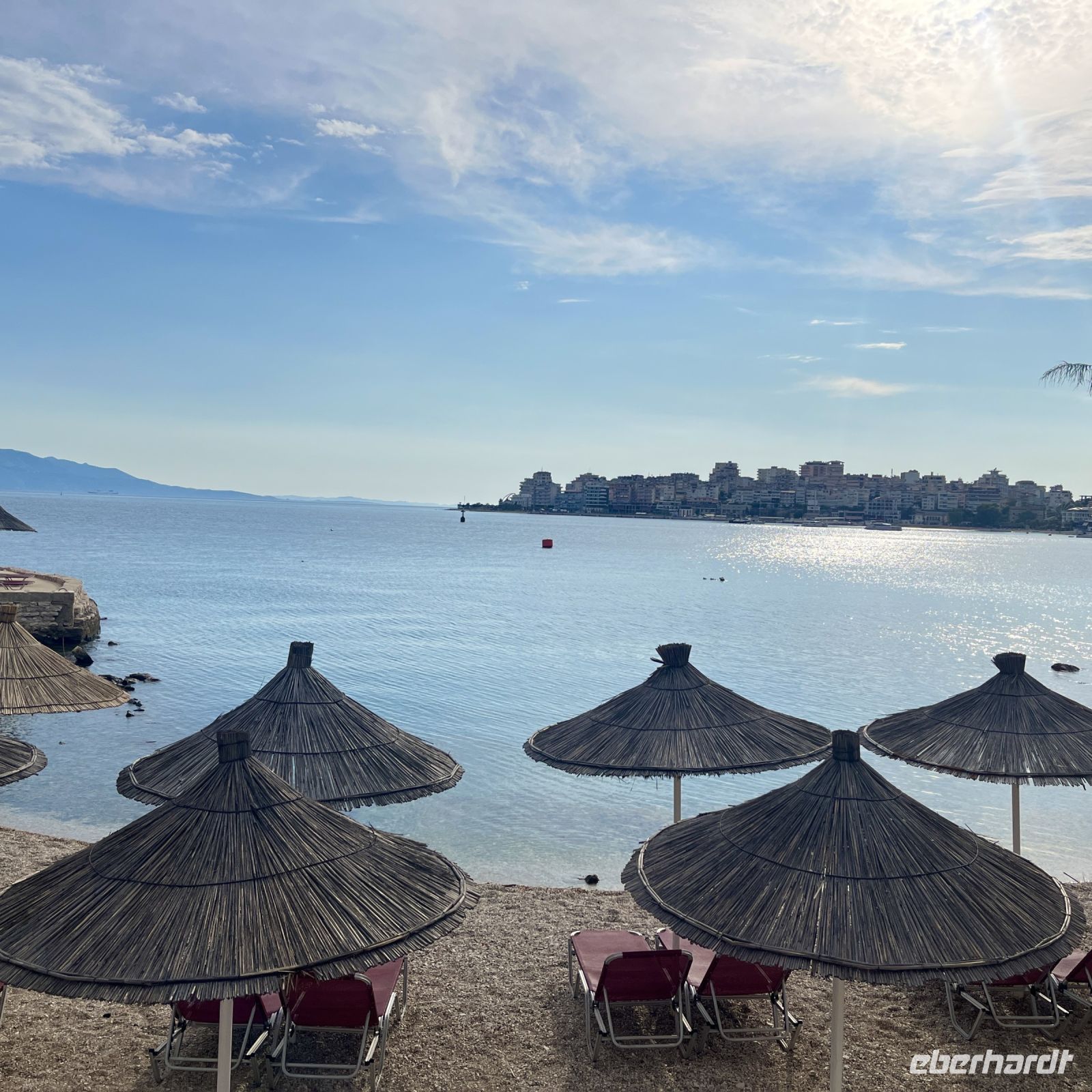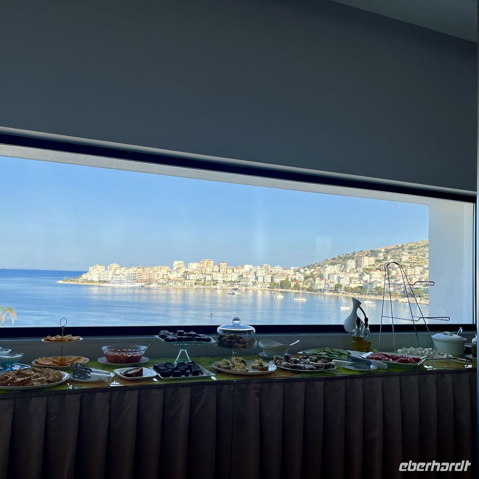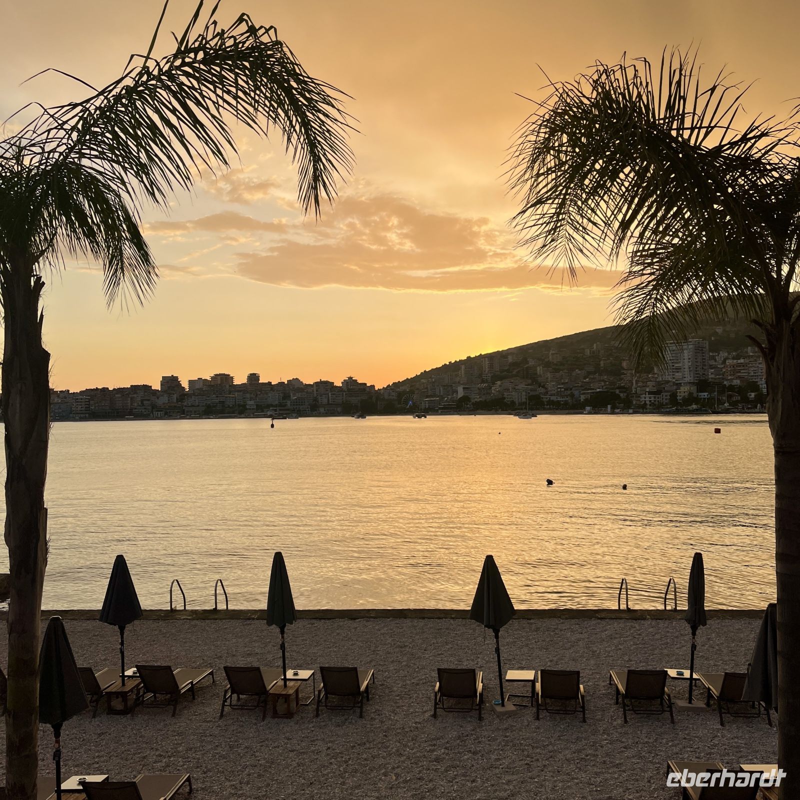 Doch unser Tag ging noch weiter, das sonnige Wetter begleitete uns und unser nächster Halt waren die Ruinen von Butrint. Dort genossen wir innerhalb des Nationalparks die Natur und die Großartigkeit dieser ineinander übergehenden Ruinen, die an den Ufern eines riesigen und wunderschönen Flusses liegen. Nach der Besichtigung fuhren wir mit dem Bus weiter ans Meer, und unser Hotel lag wunderbar in einer schönen Bucht in Sarande. Besonders toll war der Sonnenuntergang entweder von der Spitze des Hotels oder von der bezaubernden Promenade aus, die zum Spazierengehen und Genießen des Abends einlud. Fast schon zur Gewohnheit geworden, speisten wir in einem eleganten Restaurant mit Blick auf den Sonnenuntergang, das Meer nur wenige Meter von uns entfernt.