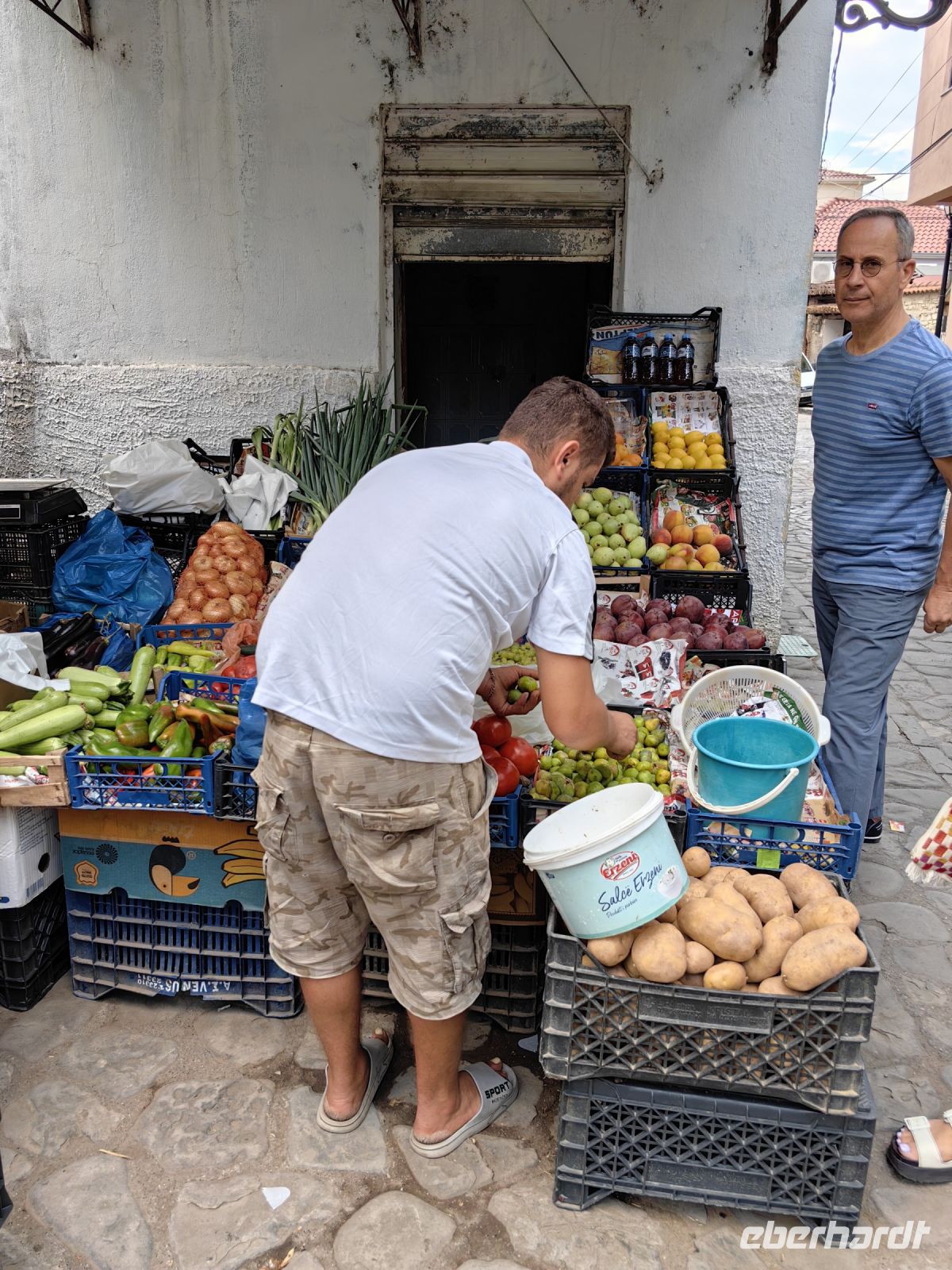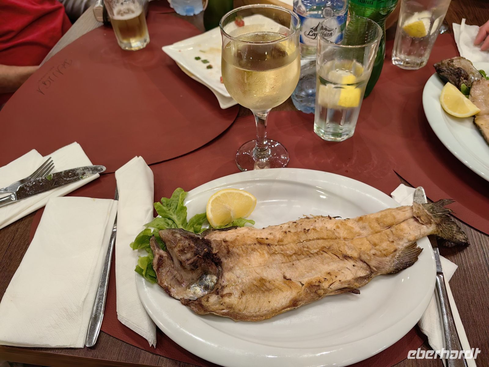 Das am See gelegene Fischrestaurant erwartet uns bereits und man kredenzt uns eine vorzügliche Fischsuppe, verschiedene eingelegte Gemüse und eine Forelle, die es nur im Ohridsee gibt. Es schmeckt köstlich und wir kehren gestärkt ins Hotel zurück.