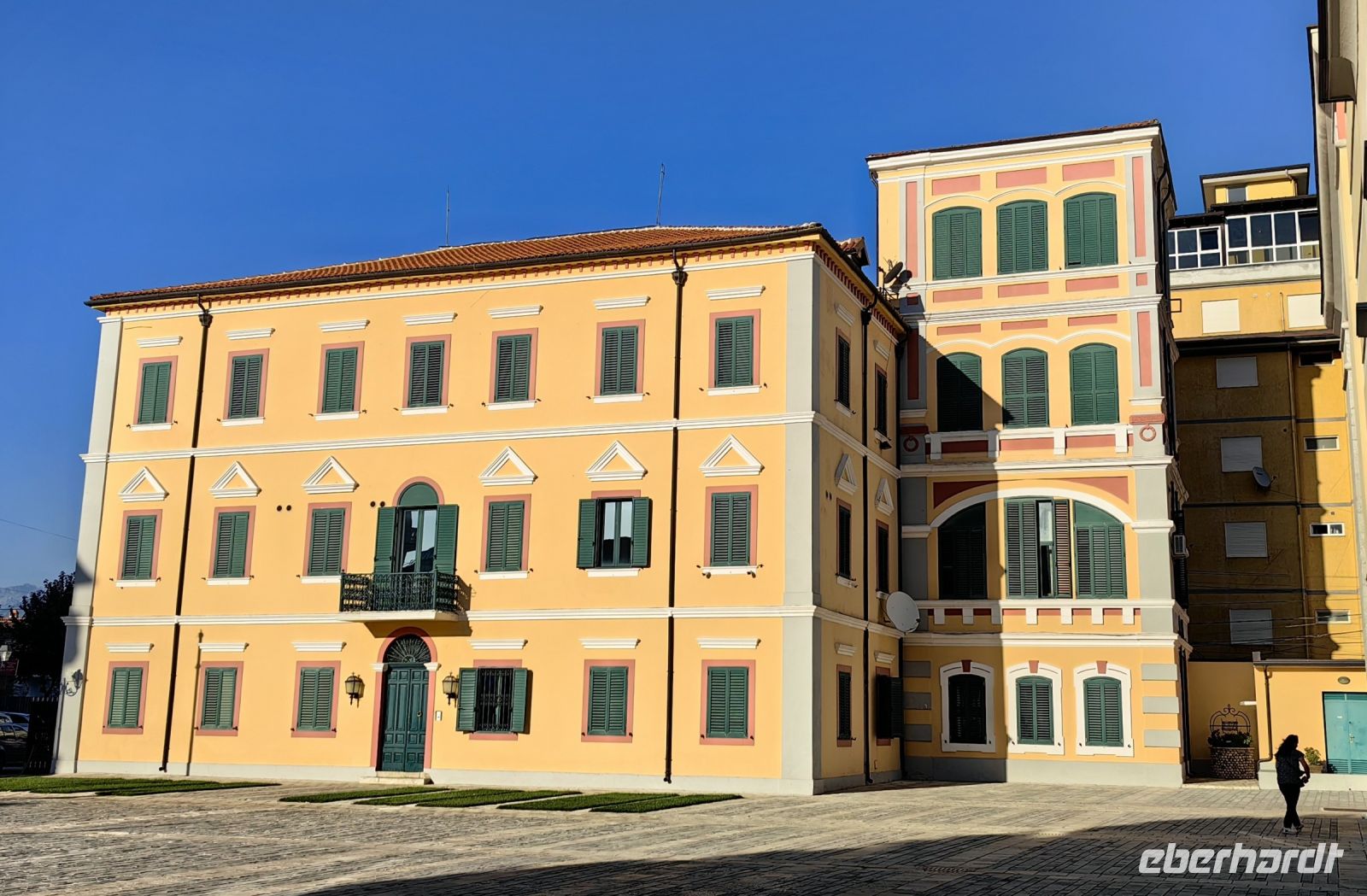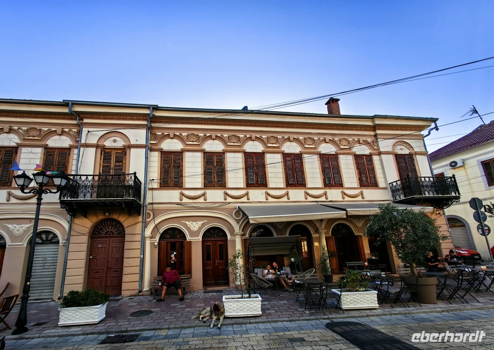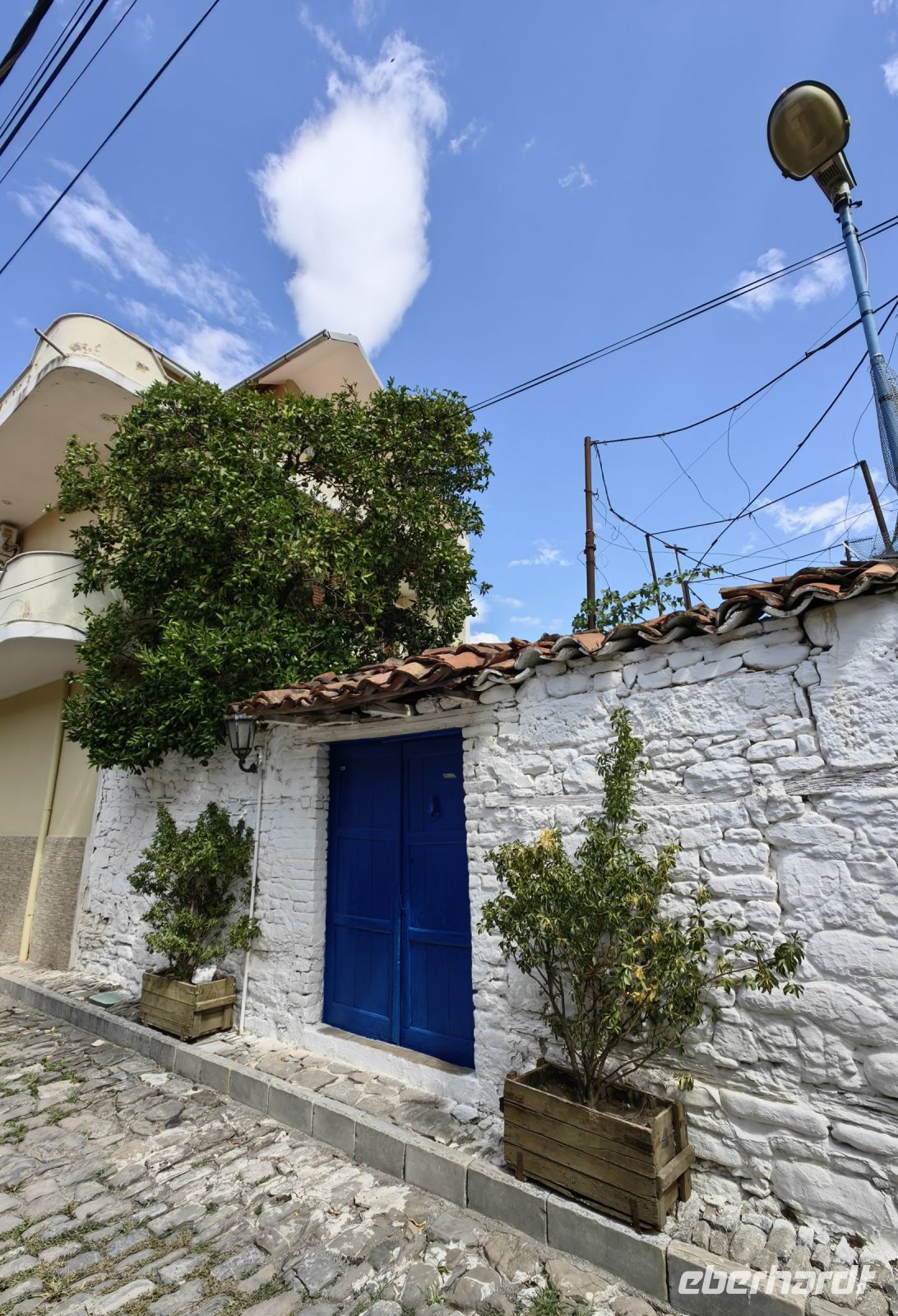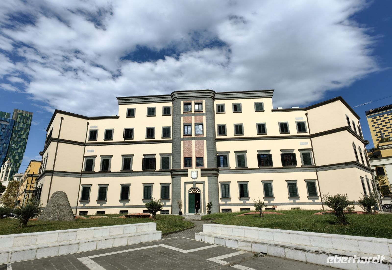 So steil, wie wir hinaufgekraxelt sind, steigen wir wieder ins Stadtzentrum hinab und werfen einen Blick auf das Haus, in dem Diktators Enver Hoxha 1908 geboren wurde. Heute befindet sich ein ethnografisches Museum darin.