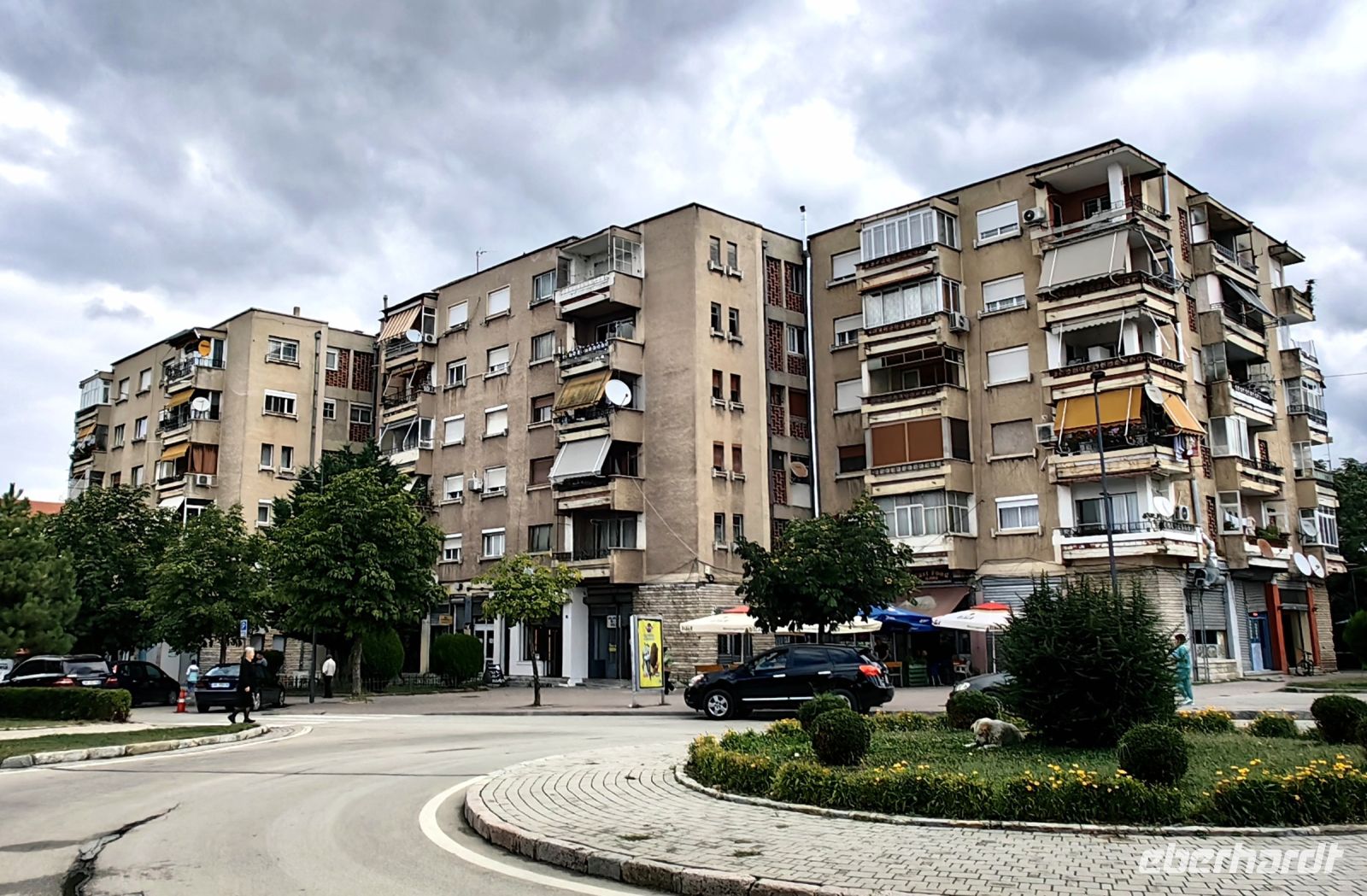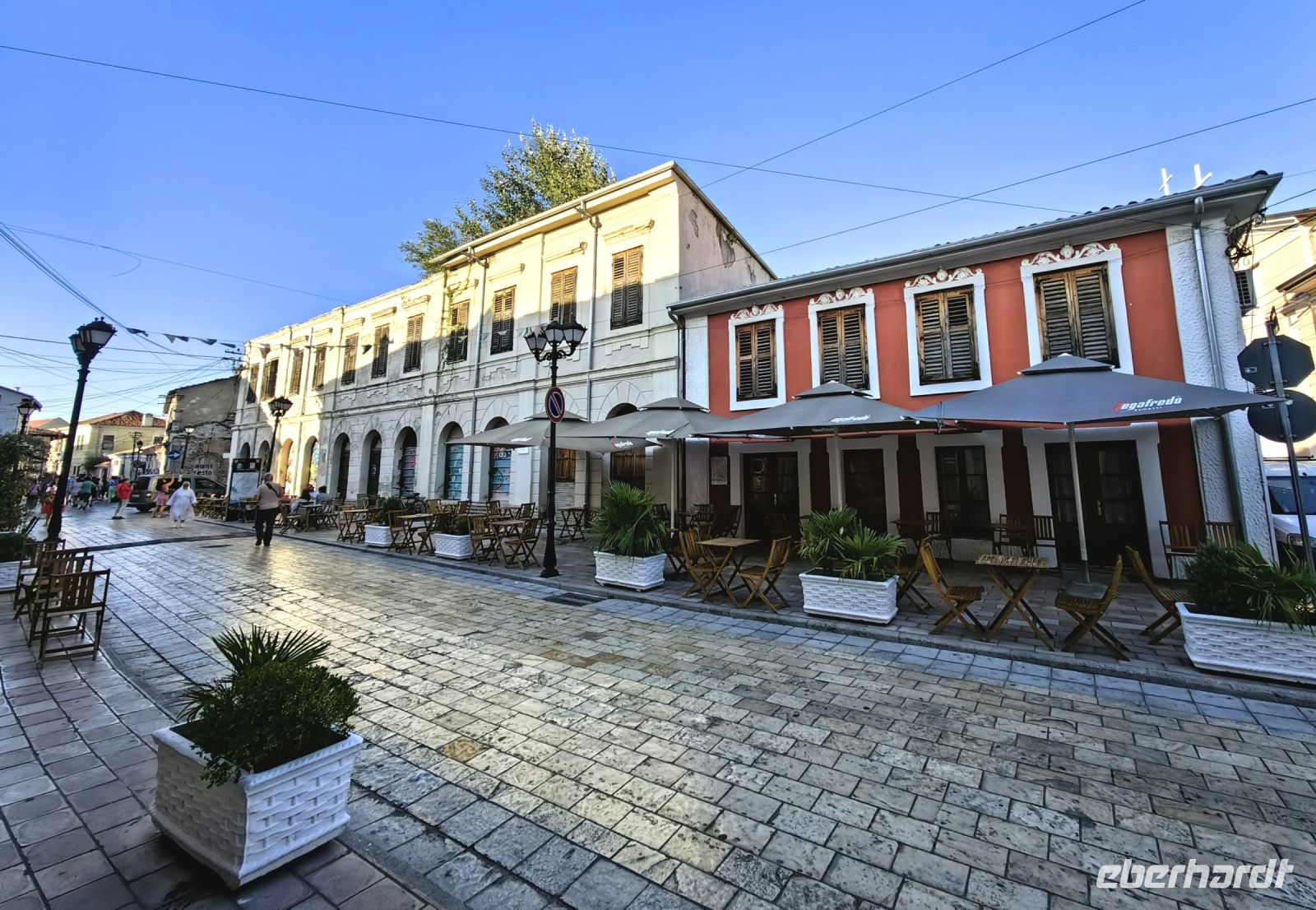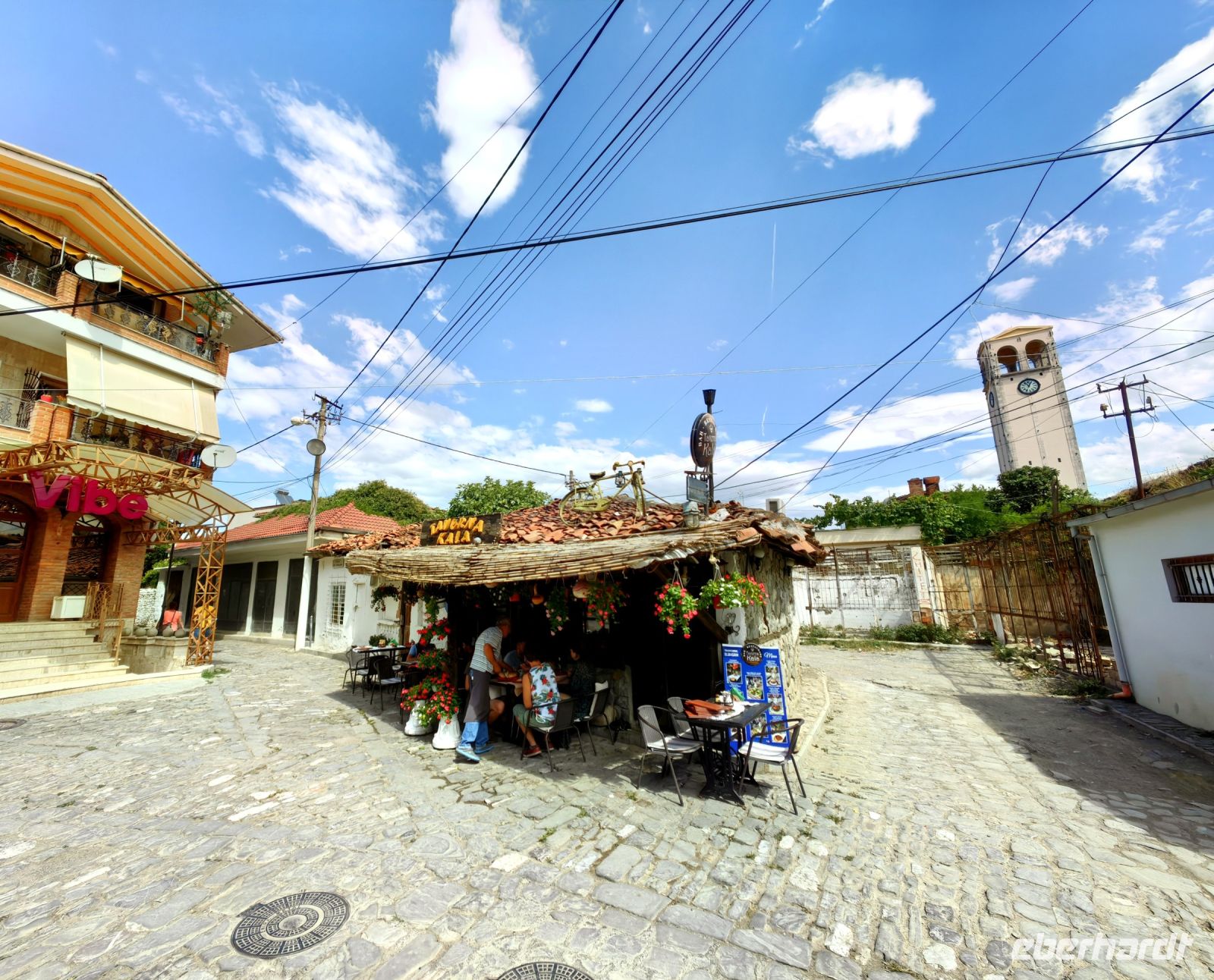 Den ersten Halt machen wir in Korce, einer im Südosten Albaniens gelegenen Stadt mit etwa 75.000 Einwohnern. Die wunderhübsch anzusehende Altstadt liegt mitten in einer fruchtbaren Hochebene auf rund 850 Meter über dem Meeresspiegel, umgeben von annähernd doppelt so hohen Bergen. Hier wird es im Winter recht kalt und Schnee liegt fast jedes Jahr. Eigentlich könnte hier ein perfektes Wintersportgebiet sein, aber in Albanien ist man vom Massentourismus und von allzu stürmischen kapitalistischen Entwicklungen noch weit entfernt, und so schläft dieses bildhübsche Städtchen einen von Touristen weitgehend unbehelligten Dornröschenschlaf mit einem ganz eigenen Charme.