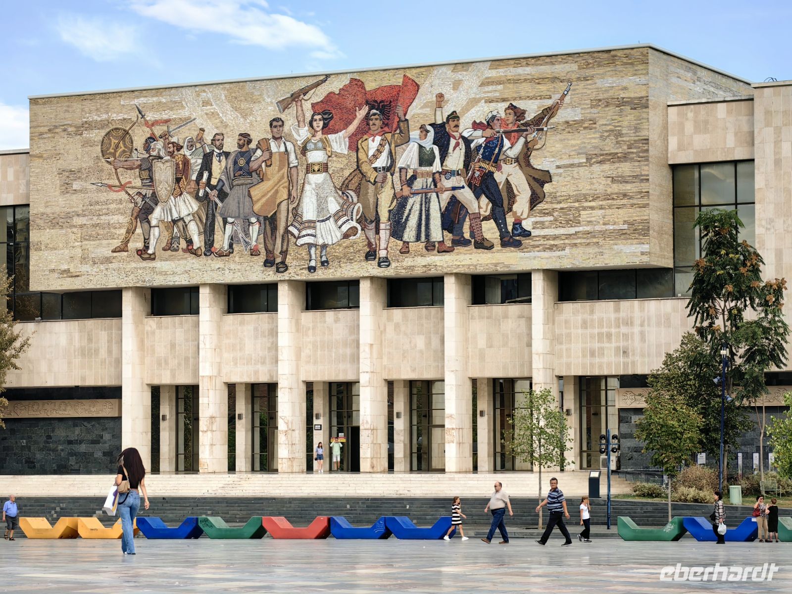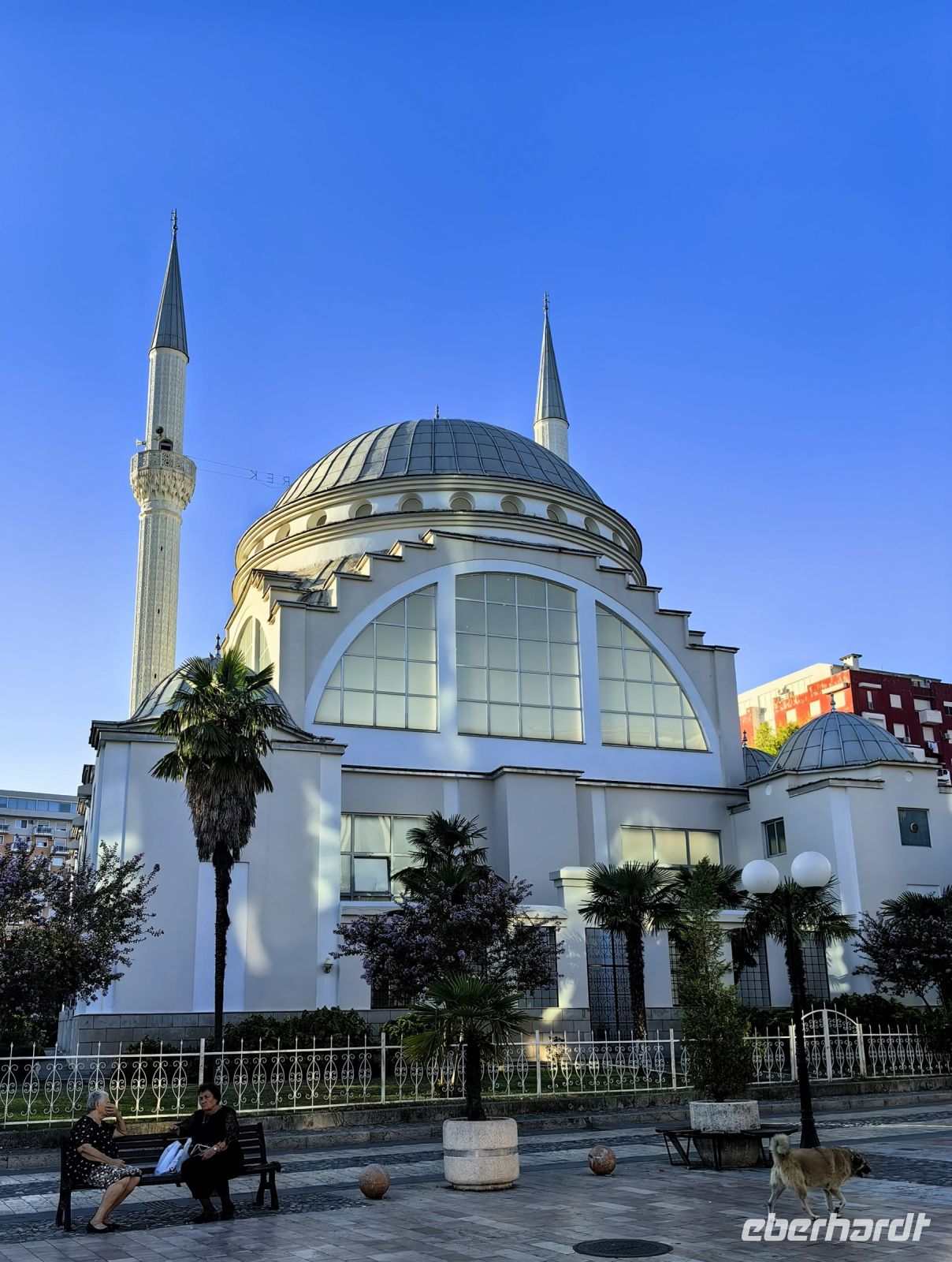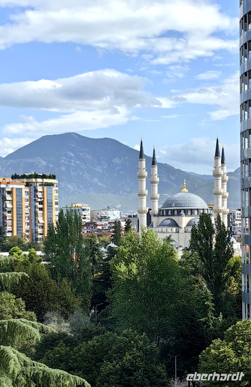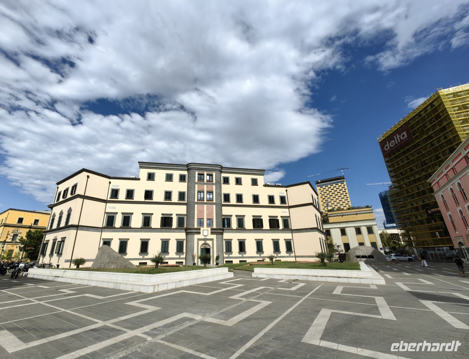 Wir laufen zum Stadtzentrum, dem Skanderbegplatz. In den letzten fünf Jahren ist hier vieles neu entstanden. Zentral in der Mitte befinden sich noch immer eine große Statue von Skanderbeg und eine historische Moschee. Die Enver Hoxha Statue gibt es nicht mehr. Rundherum war einst ein Park. Dieser ist jetzt Pflastersteinen gewichen und einem modernen Opernhaus. Am Rande des Platzes ragen riesige Hochhäuser hervor, die mit ihren Glasfassaden gar nicht so recht zum Rest passen wollen.