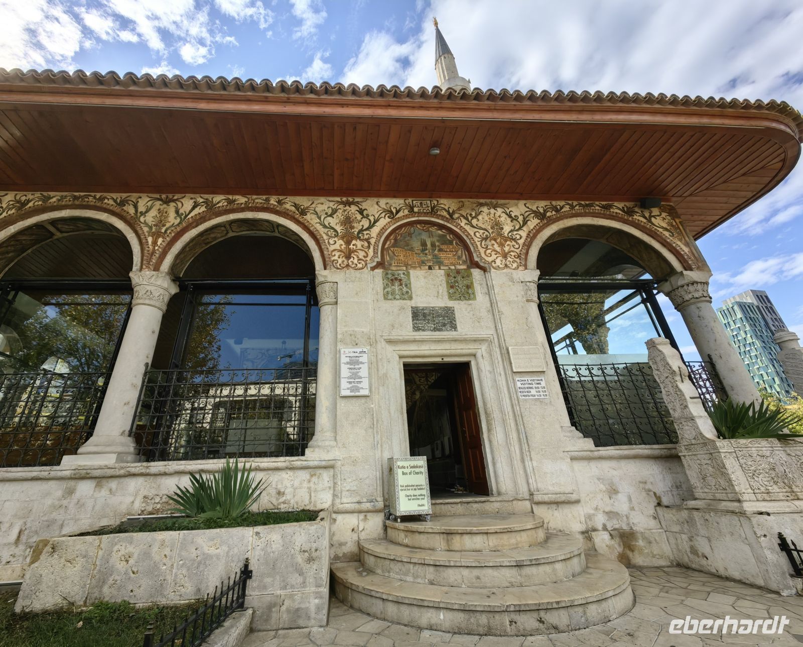 Wir bummeln durch die engen Gassen der Altstadt zu einer alten Moschee aus dem Jahre 1492, wo gerade das Mittagsgebet verrichtet wird. Während der kommunistischen Diktatur 1967 schloss man sie und erst seit 1990 können die Gläubigen hier wieder beten.