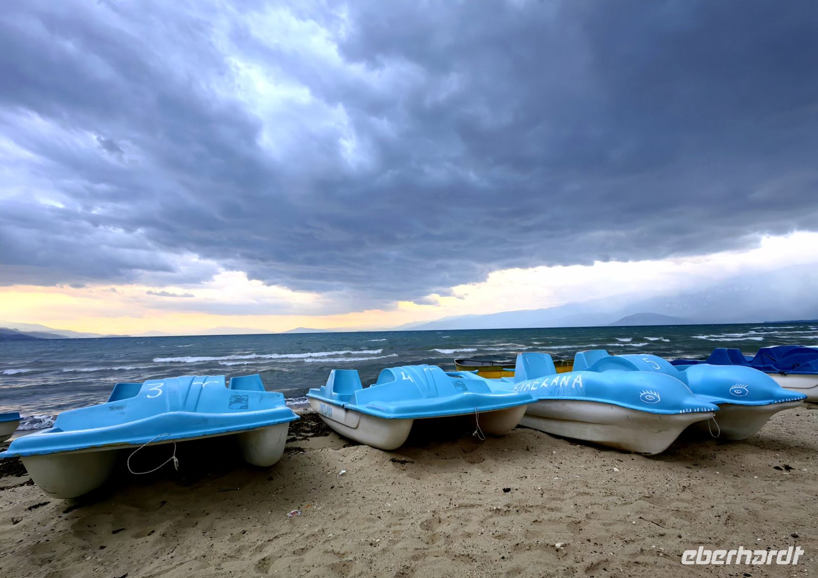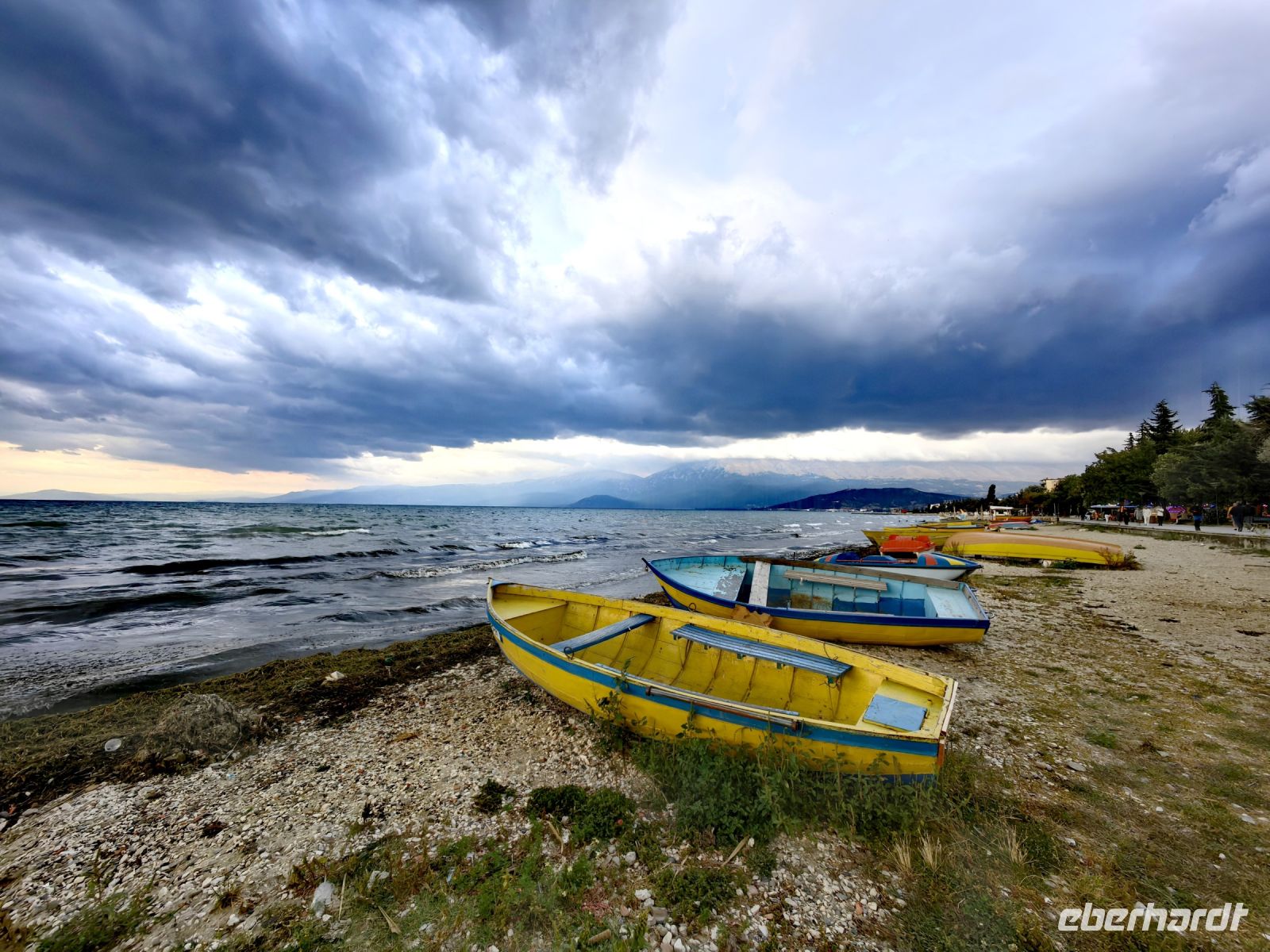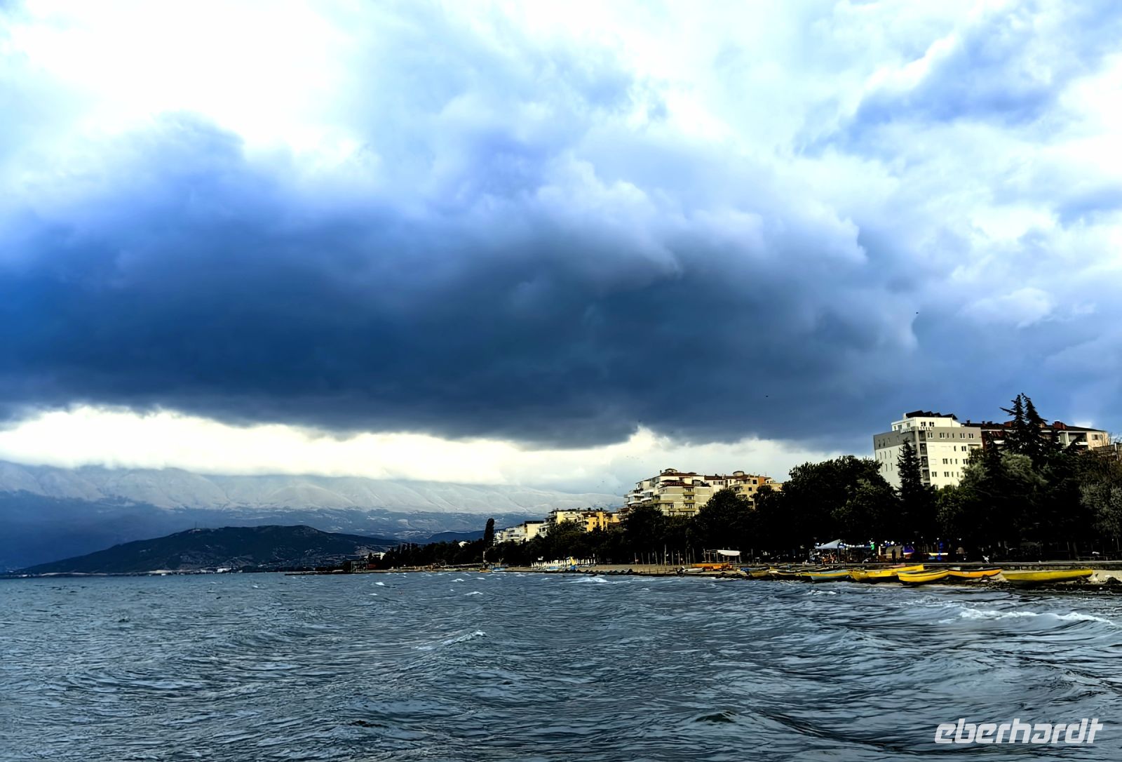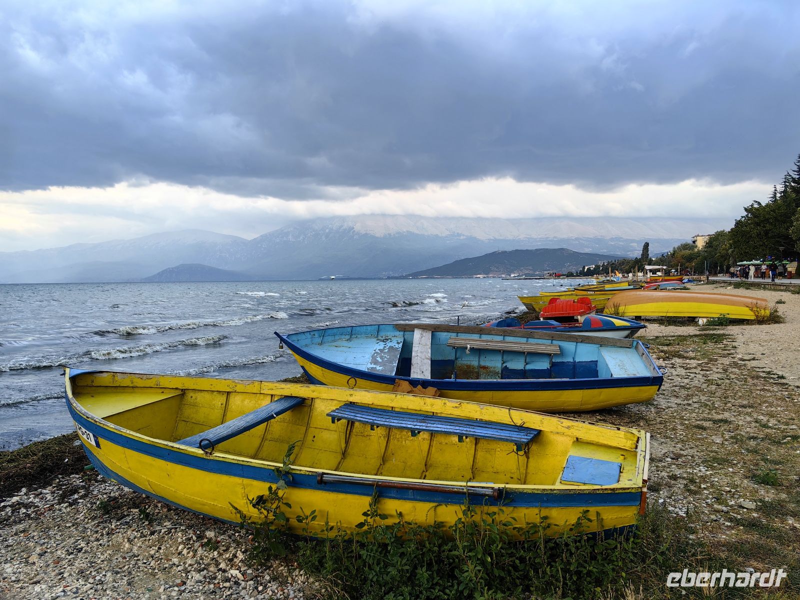 Er ist der zweitgrößte See der gesamten Balkanhalbinsel und einer der ältesten der Welt. Durch ihn hindurch geht die Grenze zu Nordmazedonien und nur der kleinere Teil gehört zu Albanien. Dieser Bergsee ist bis zu 288 Meter tief, liegt auf einer Höhe von knapp 700 Metern und das Wasser hat Trinkwasserqualität. Der See und seine Umgebung zählen zum UNESCO Weltkulturerbe.