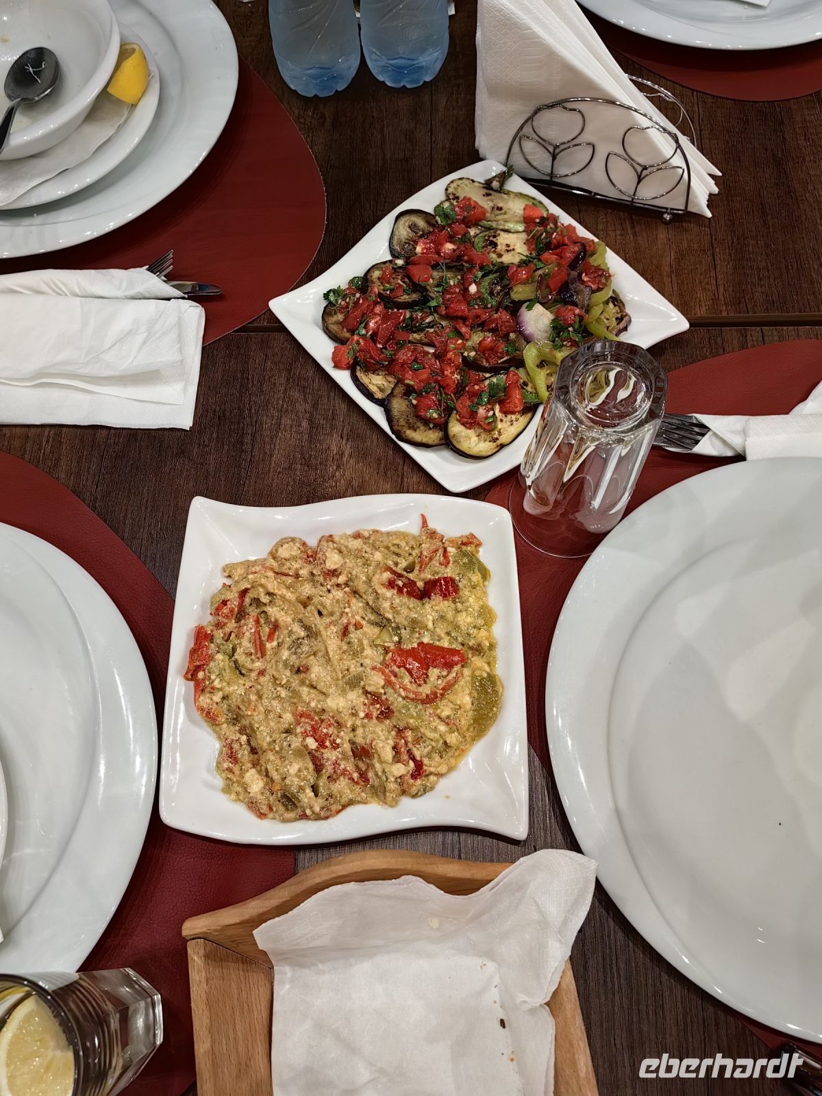 Wir steigen an der römisch-katholischen Stephanskathedrale aus und bummeln gemeinsam durch die kleine Altstadt, deren Bauten italienisches Flair versprühen. Schöne Fassaden wechseln sich ab mit verfallenen Häusern, an denen man mit Grafittis und großen Bildern versucht hat, sie ansehnlicher zu gestalten. An der Moschee angekommen, befindet sich unser Hotel gleich gegenüber, und wir beziehen unsere Zimmer. Nach ein wenig Freizeit zum Erholen, treffen wir uns zu unserem Abendessen im Hotel wieder und bekommen frischen Fisch gereicht.