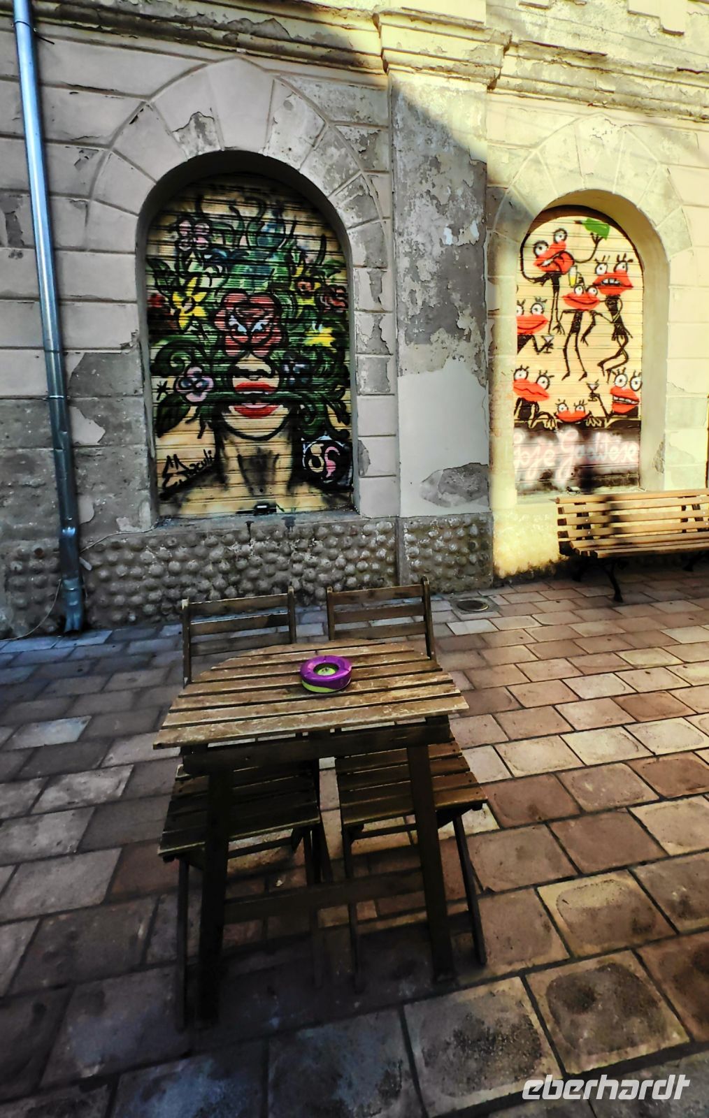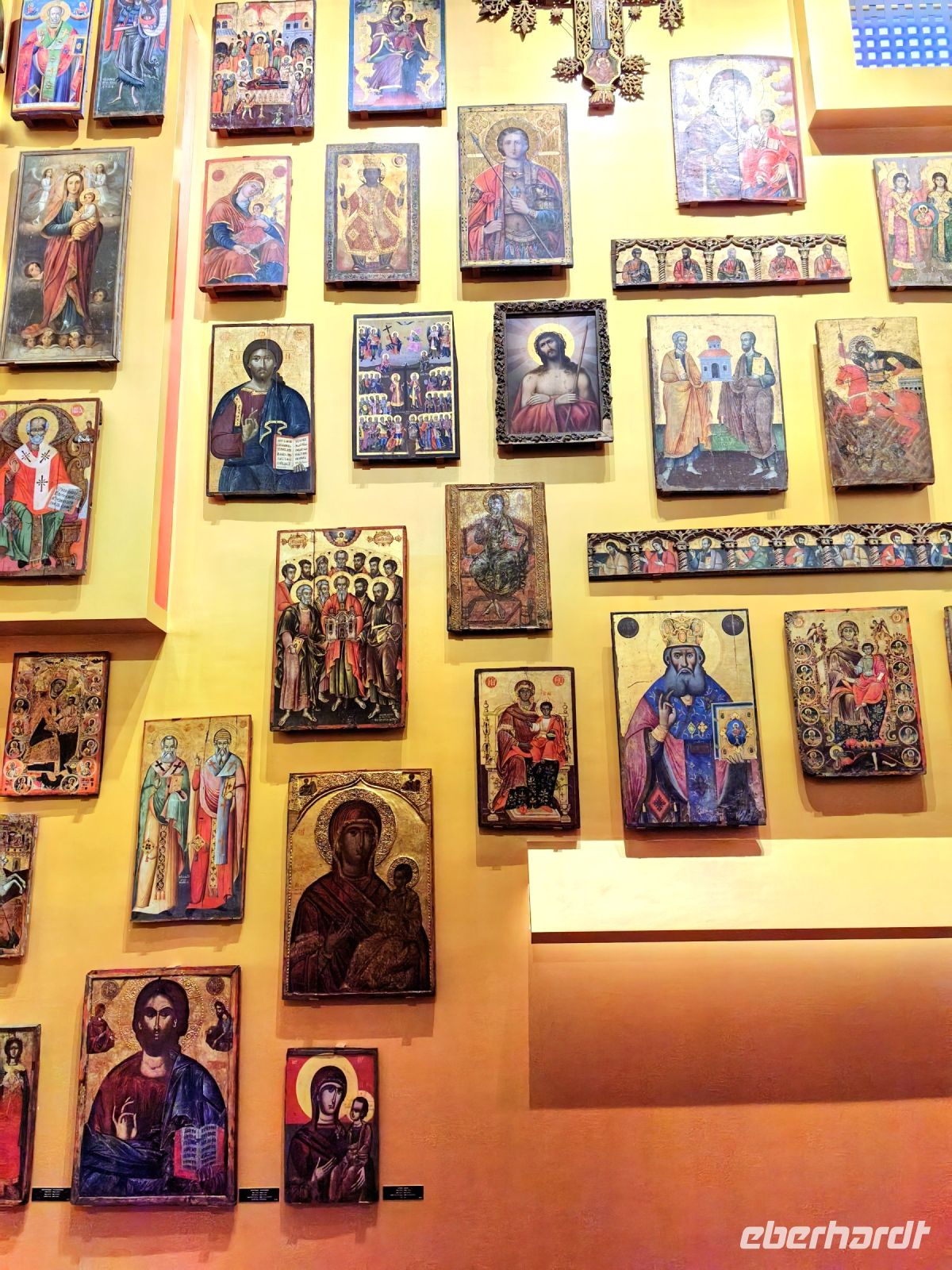 Wir besichtigen das Museum für mittelalterliche Kunst und bestaunen hunderte wunderschöne Ikonen, deren Farben und Macharten uns sehr faszinieren. Dieses Museum wurde 1980 gegründet und wird von einem deutschen Kurator geleitet. In der knapp zehn Meter hohen Haupthalle inszenierte man hier die gülden glänzenden orthodoxen Kunstwerke, die die gesamte Wand bedecken. Als wir ins Obergeschoß gehen, sehen wir gar einen ganzen Altar. Die bekanntesten Malereien sind wohl die von Onufri.