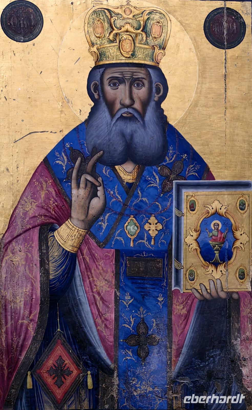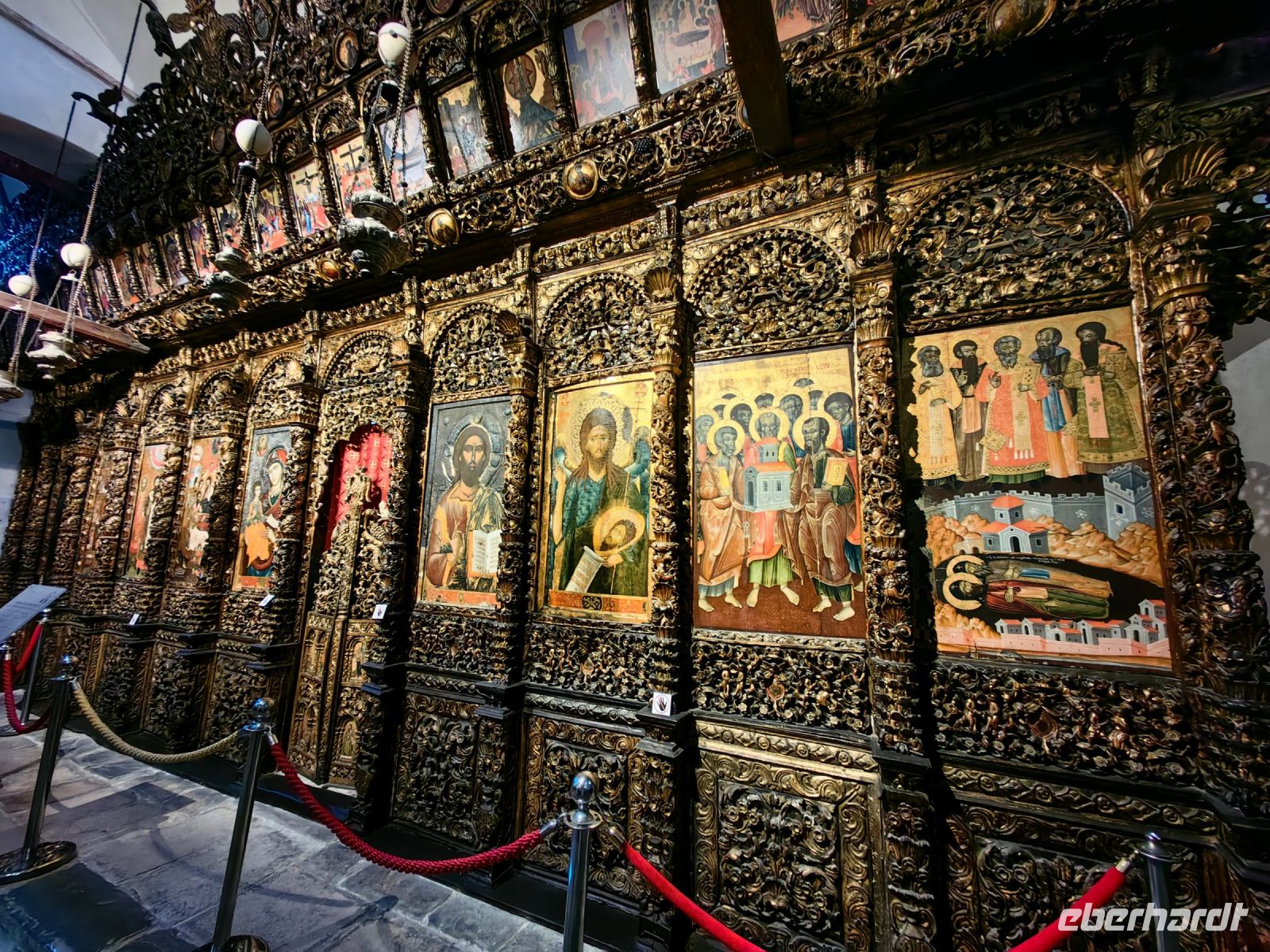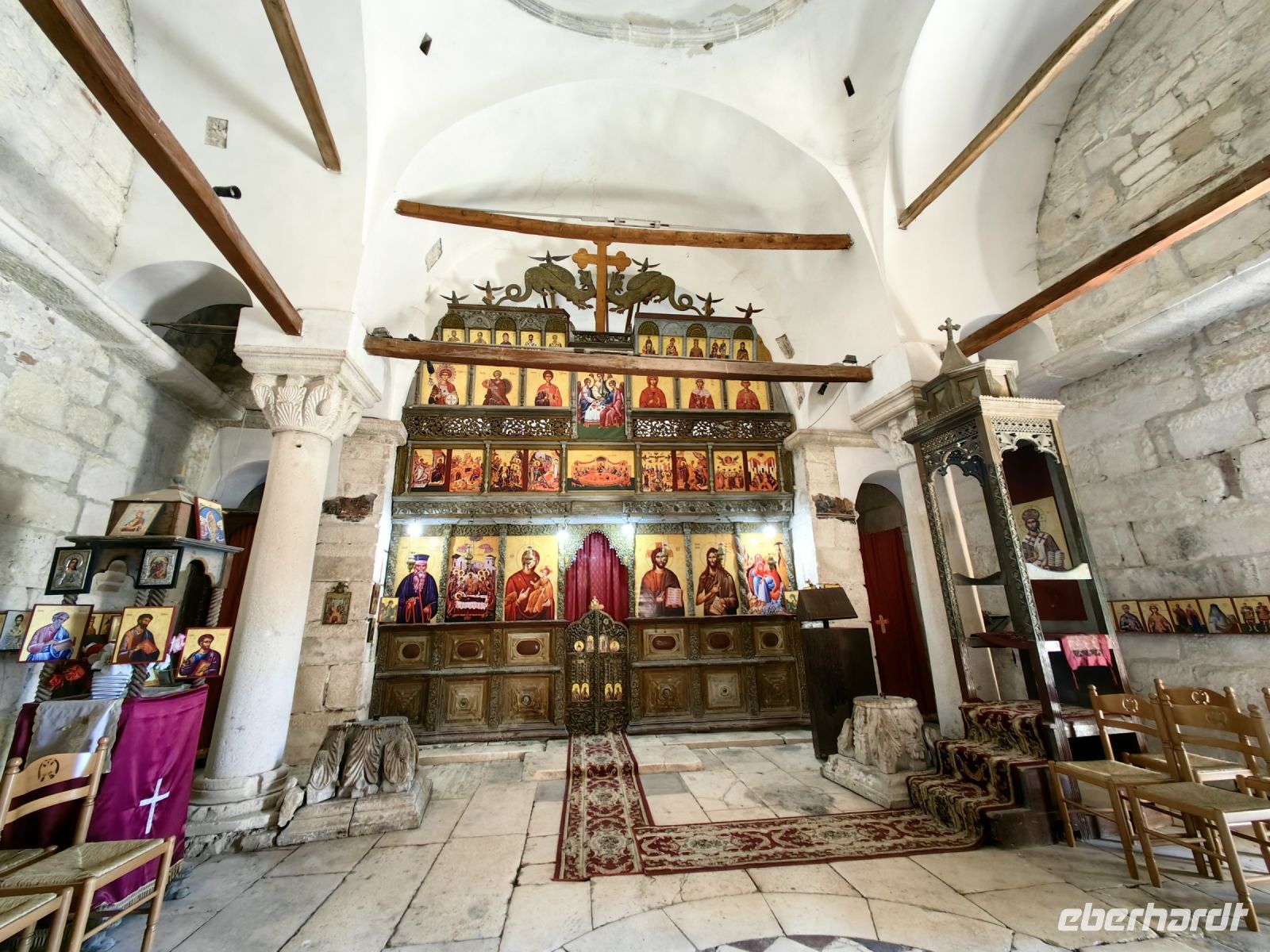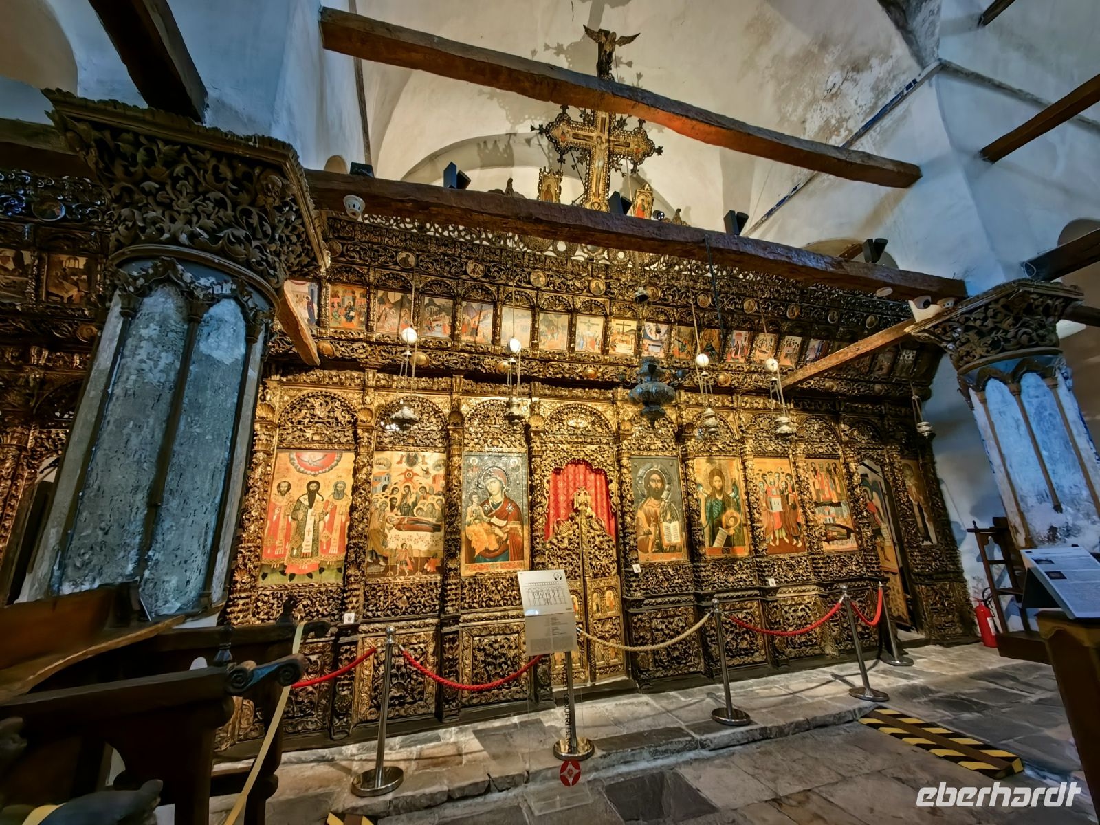 Ikonen und einem komplett erhaltenen Holzaltar aus dem Mittelalter. Alert erklärt uns die Bedeutung der einzelnen Darstellungen und die Geschichte des Gotteshauses.