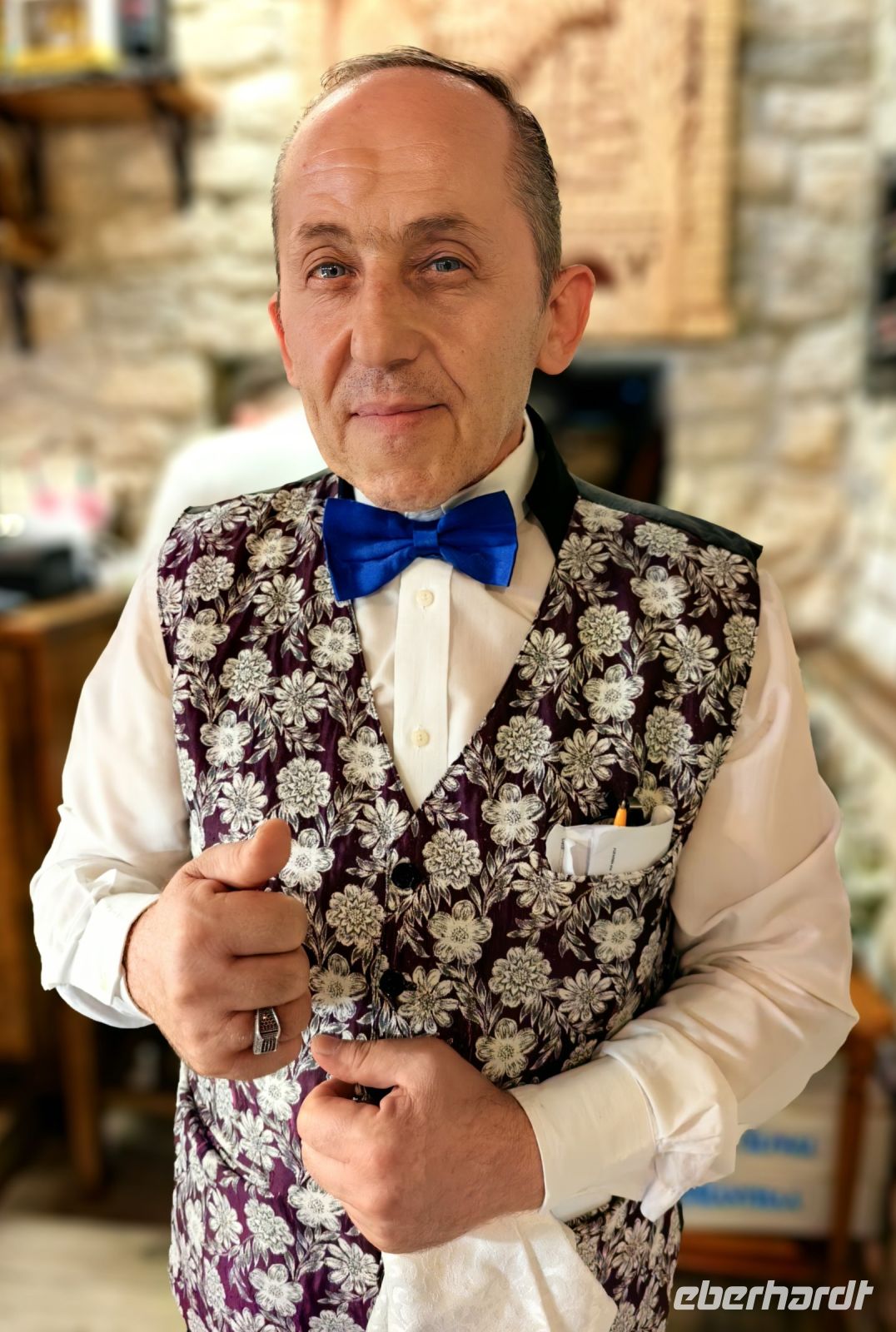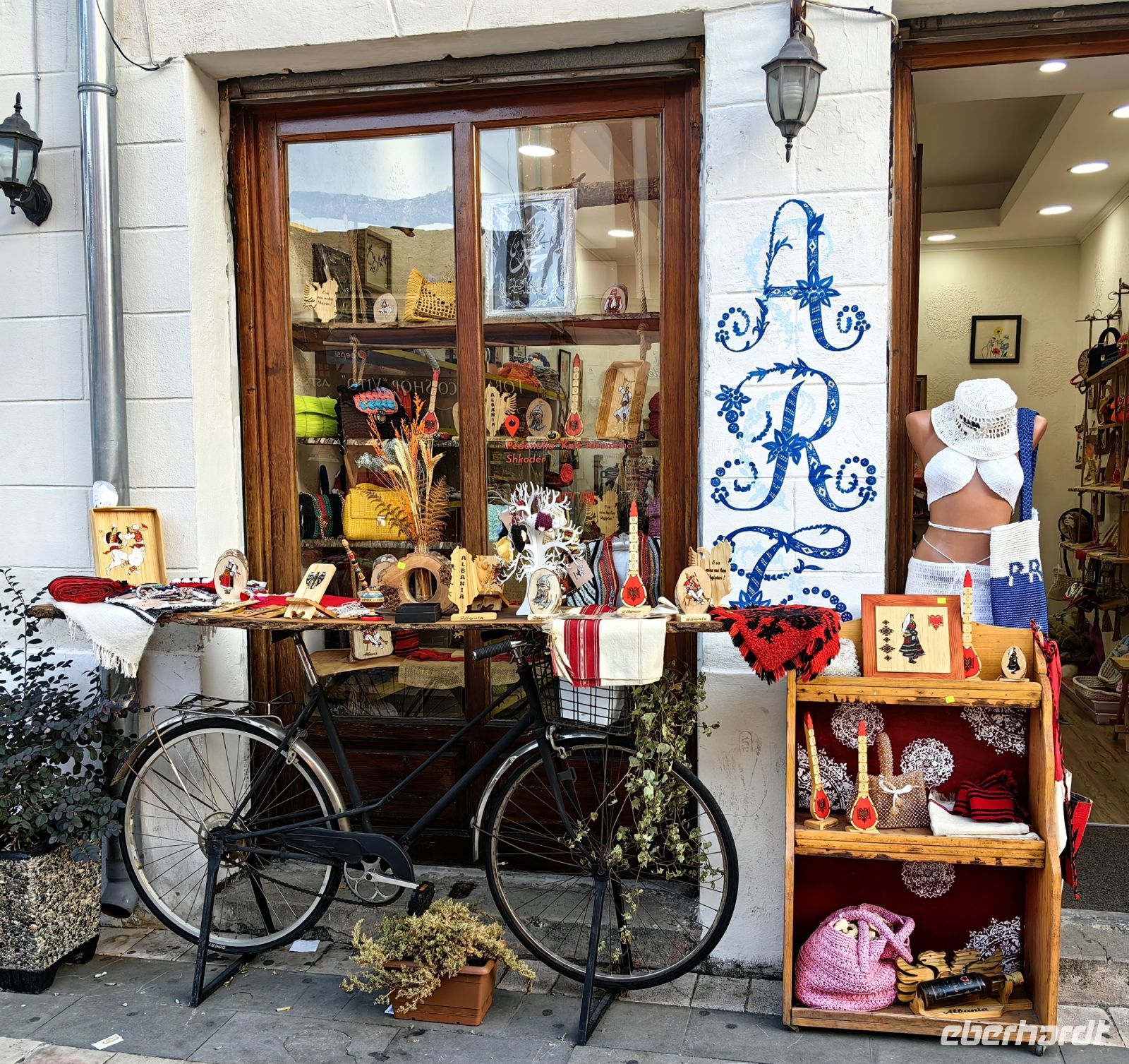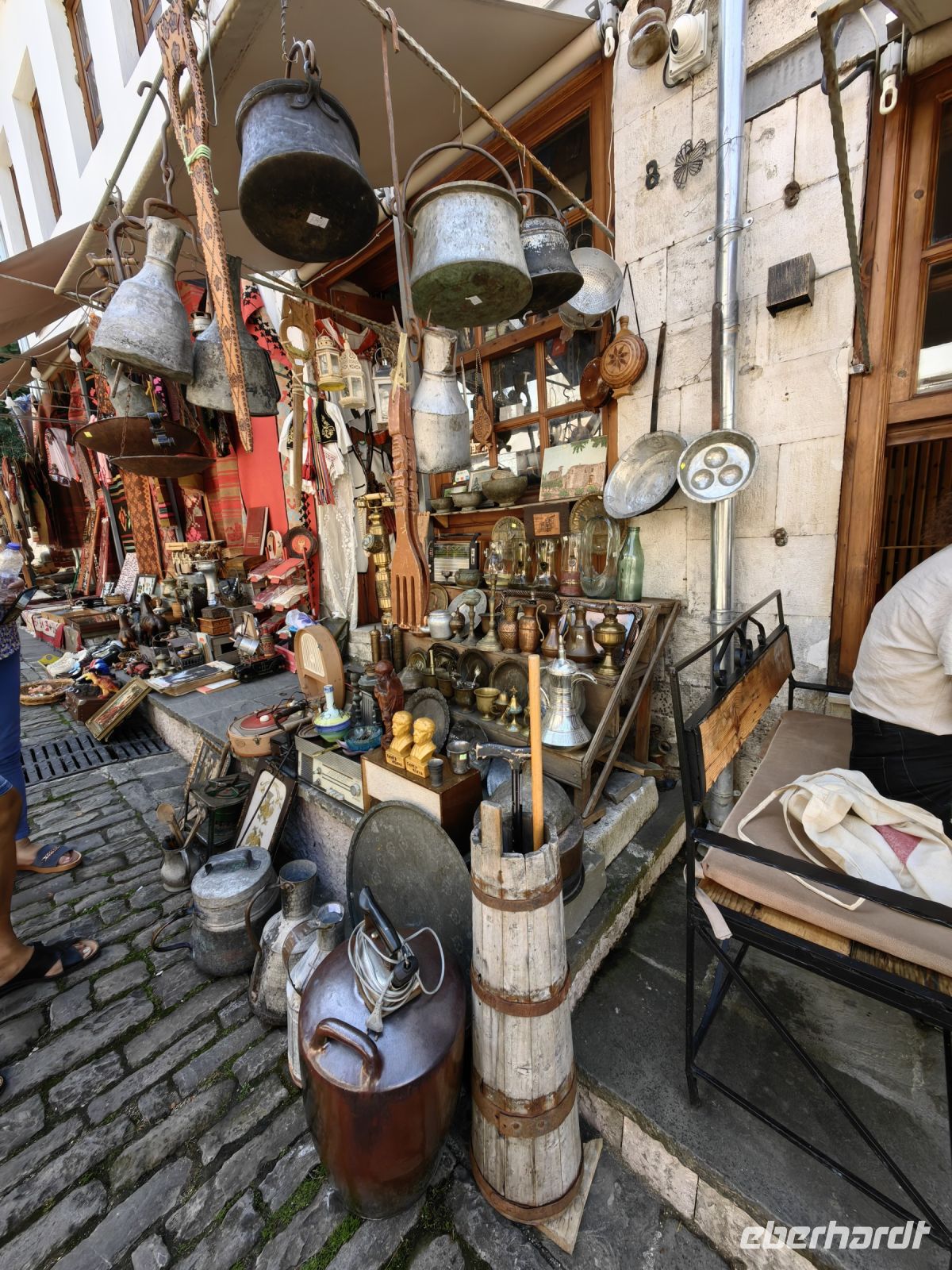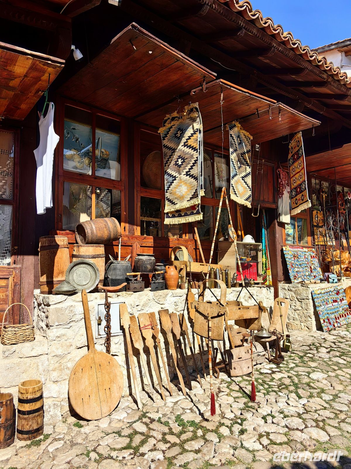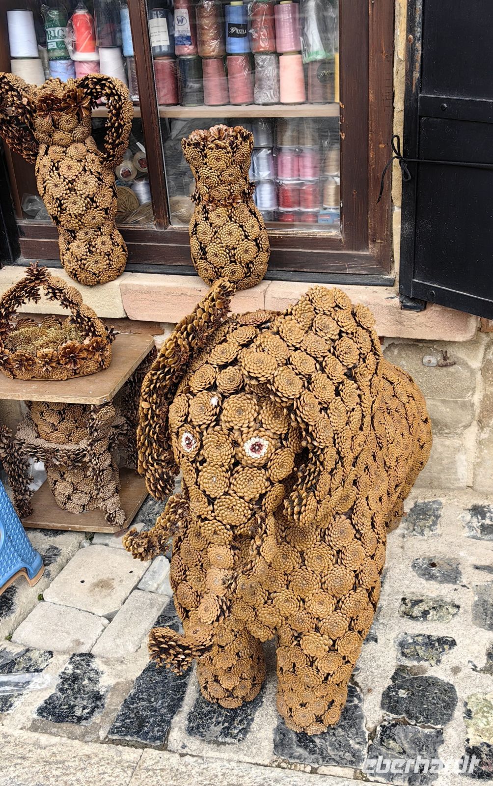 Danach flanieren wir die Fußgängermeile in Richtung der Altstadt entlang. Rechts und links können wir noch einige Zweckbauten aus den kommunistischen Jahren sehen, bevor wir in die pittoresken schmalen Gassen der Altstadt abbiegen. In ihnen befinden sich etliche Handwerkslädchen, ein kupferner Rakibrenner wird uns vorgeführt und unzählige Teppiche und geknüpfte Werke zieren die Auslagen der Souvenirläden. Wir legen auf dem zentralen Marktplatz eine Kaffeepause ein, rundum sind kleine Restaurants und Cafés, alle gut gefüllt, die Atmosphäre ist fast mediterran.