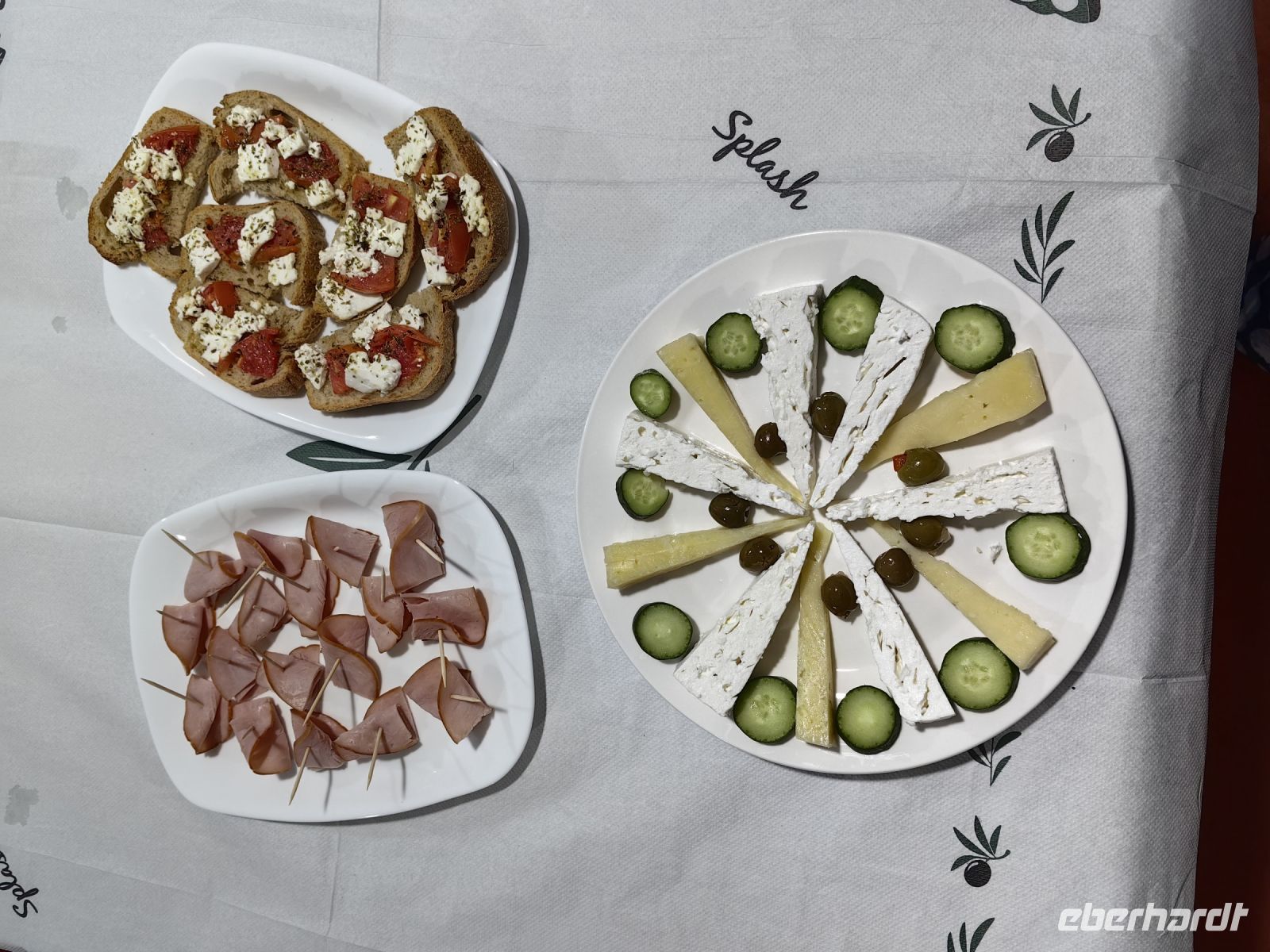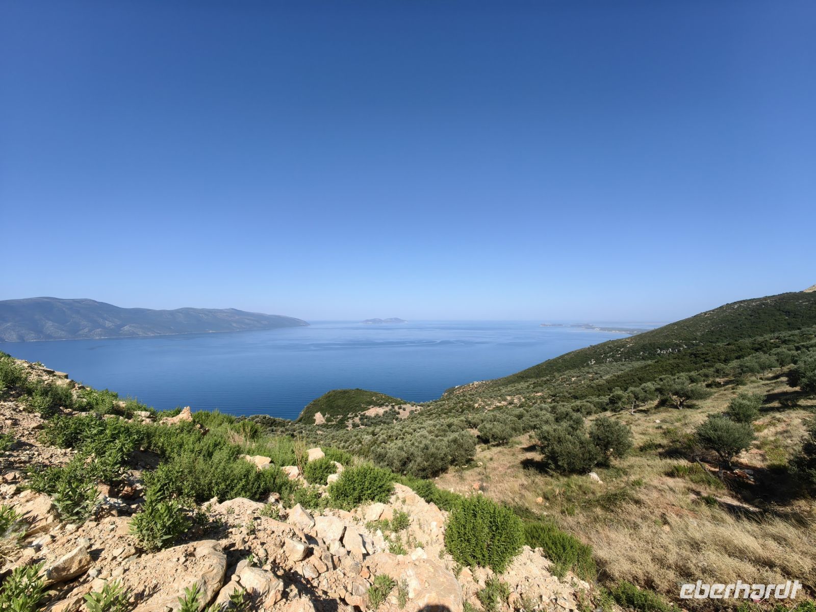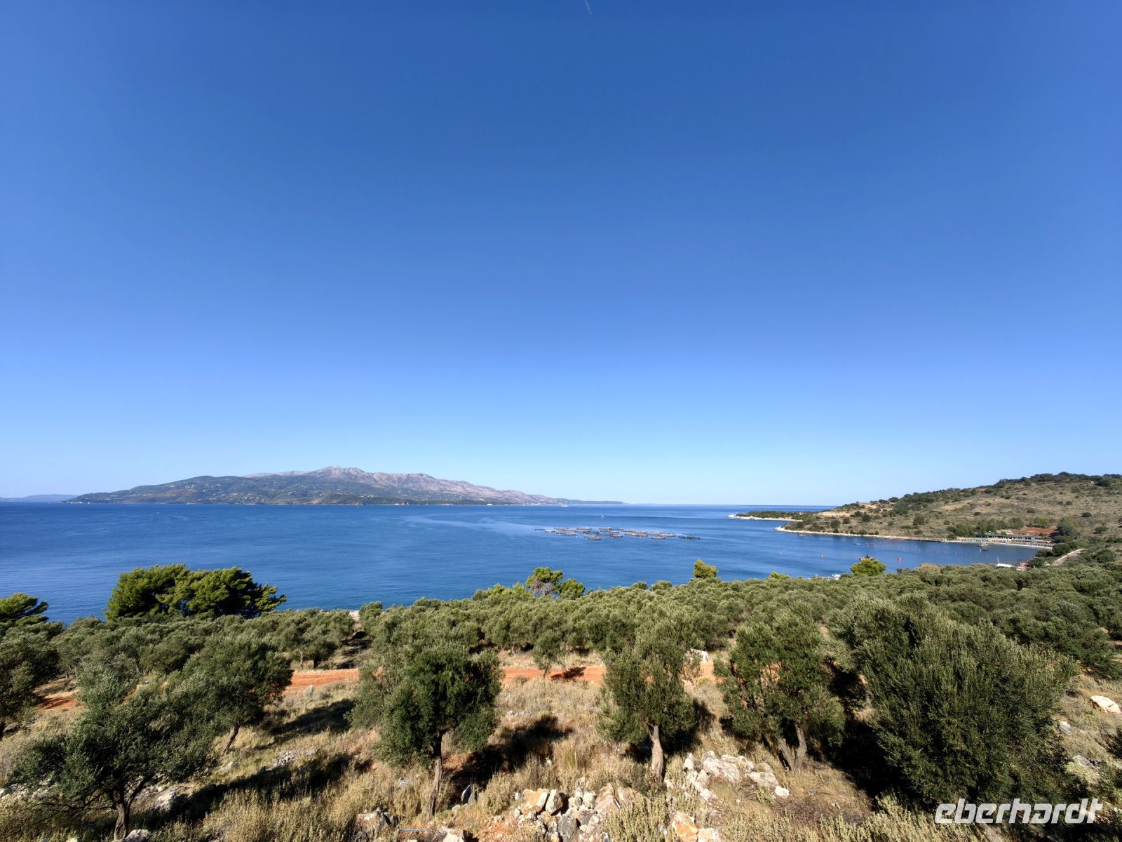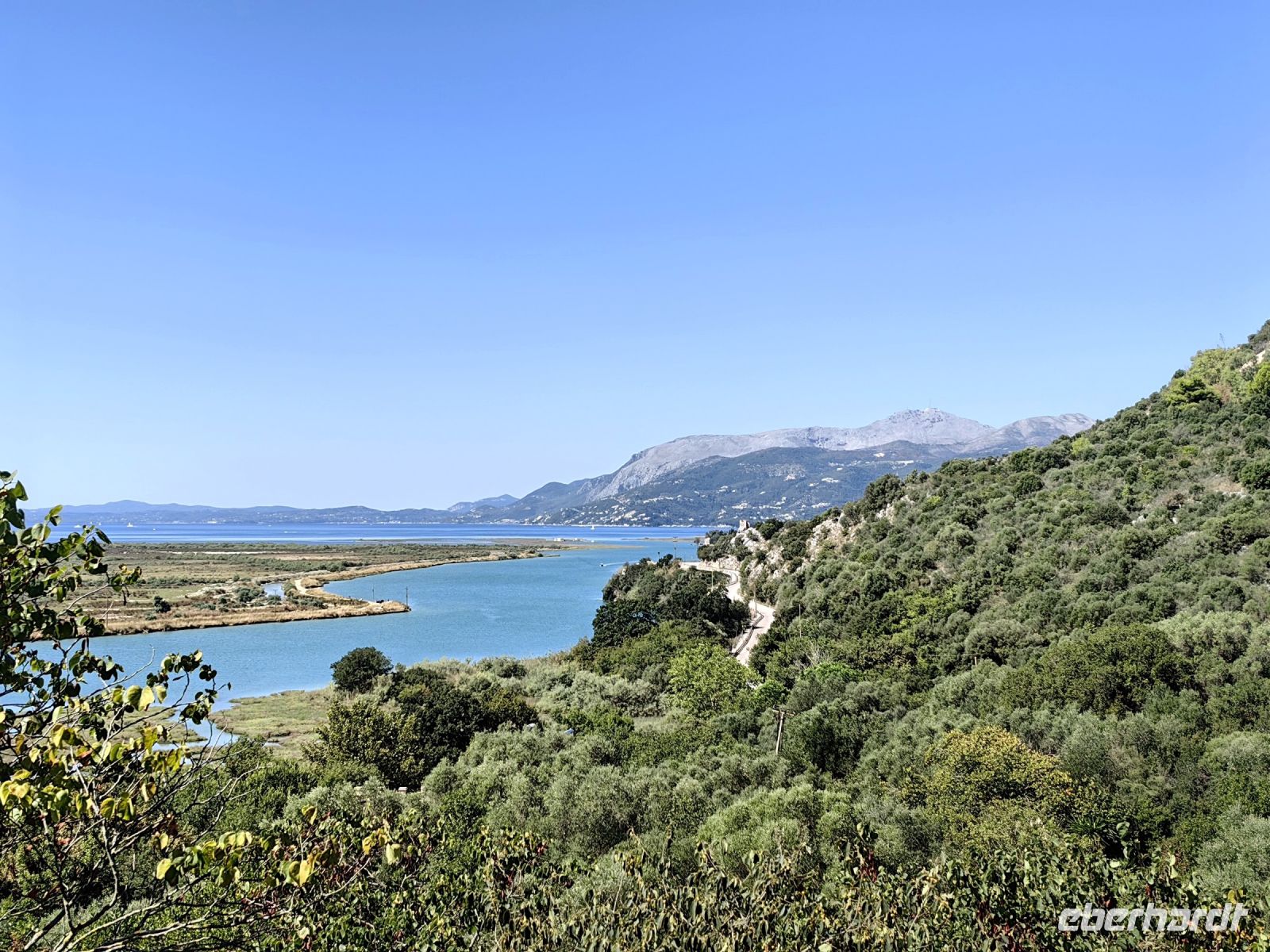 Wir laben uns am Morgen am üppigen Frühstücksbüffet auf der Terrasse des Hotels mit Blick aufs tiefblaue Ionische Meer und Korfu. Könnten wir doch noch ein paar Tage hier bleiben....