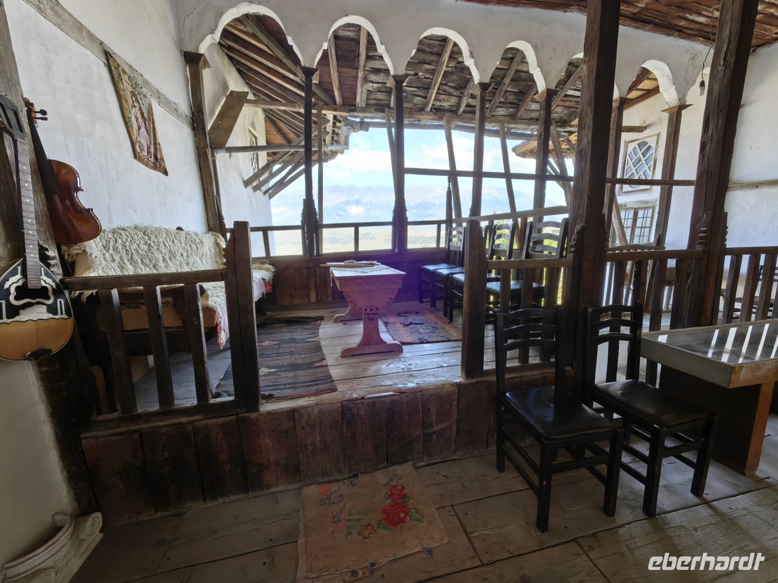 Jetzt geht es einen Bergpass in Serpentinen steil nach oben und es wird merklich kühler. Oben angekommen zeigt das Thermometer nur noch 17 Grad und beim Fotostop greifen die ersten Gäste nach den Pullovern. Am Abend erreichen wir unser Hotel, welches mitten im Llogora Nationalpark liegt.