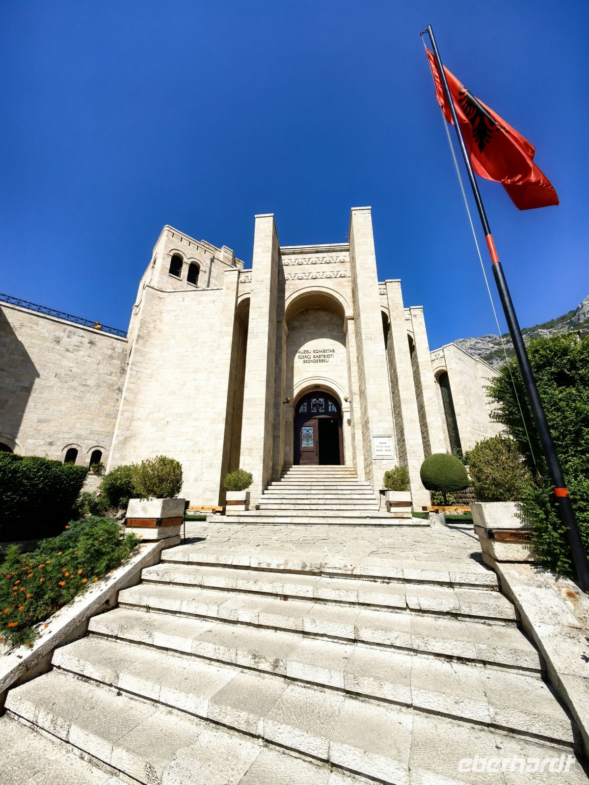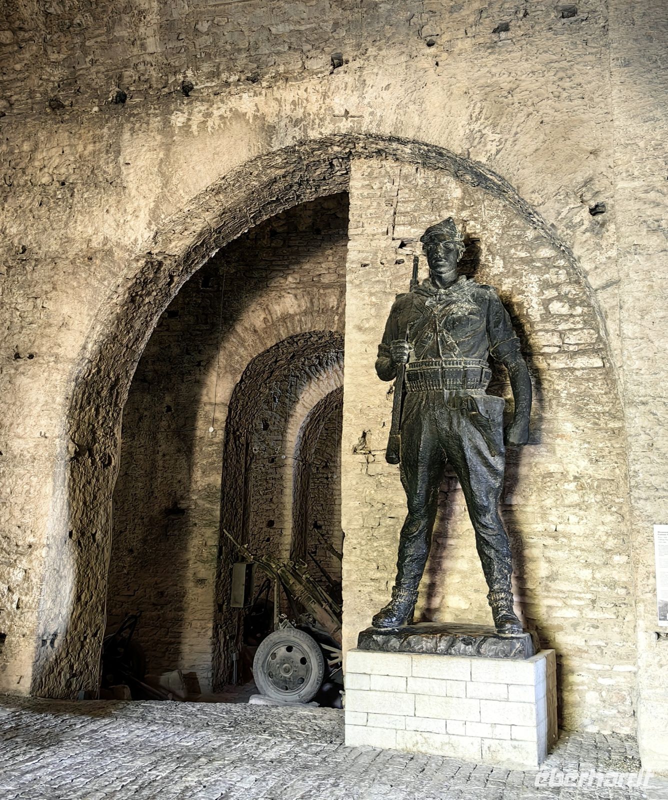 Wir schauen uns gemeinsam mit Alert die gepflegte Burganlage mit dem darin liegenden Museum an. Skanderbeg ist hier mehrfach als Volksheld überlebensgroß dargestellt.