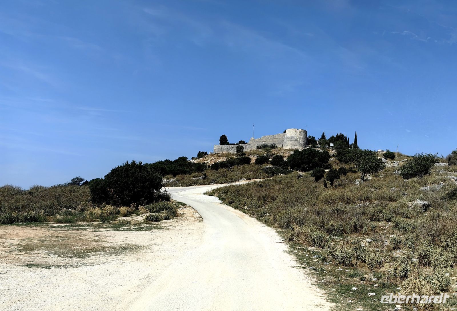 Nach diesem spektakulären Naturerlebnis fahren wir weiter nach Saranda, einer Stadt am Ionischen Meer. Genau gegenüber von Korfu machen wir einen Fotostop, die griechische Insel liegt so nah, daß man die Häuser und Siedlungen erkennen kann. Bevor wir ins Hotel fahren halten wir auf dem Hausberg vor Saranda, wo hoch oben die Burg Kaleja e Lekuresit aus dem 16. Jahrhundert thront. Wir fotografieren den grandiosen Ausblick auf die griechische Insel, die hufeisenförmige Bucht von Saranda und das tiefblaue Meer.