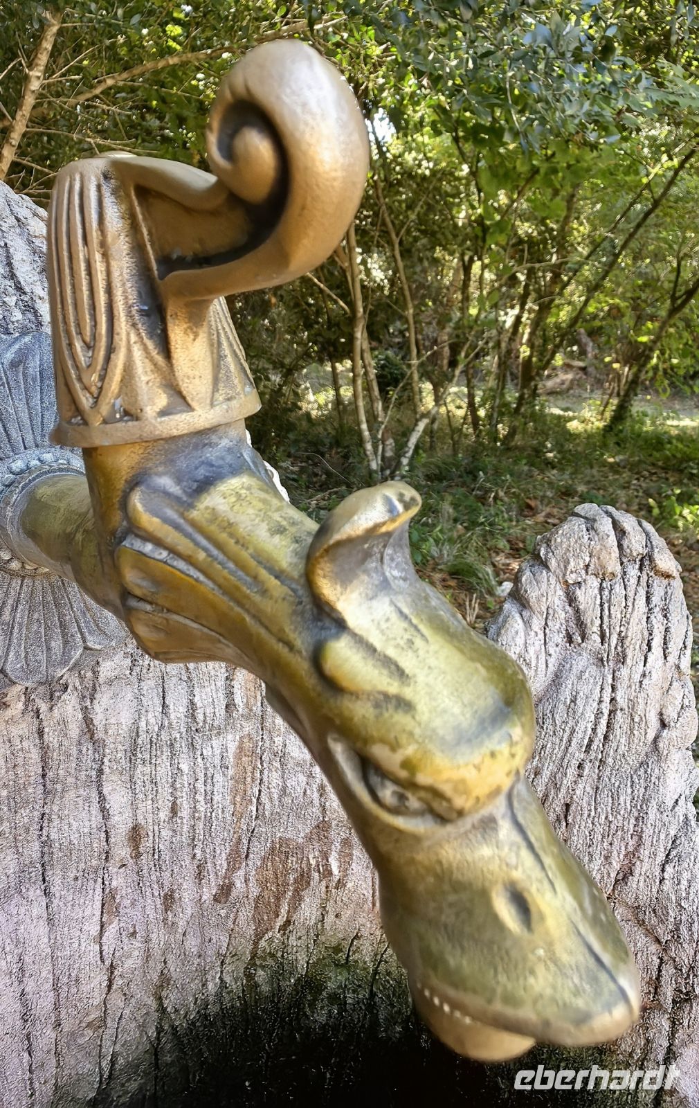 Wir laufen zur Quelle hinunter und genießen die üppig grüne Umgebung und die frische Luft. Die Farbe des Wassers ist türkisblau bis dunkelgrün und es hat Trinkwasserqualität.