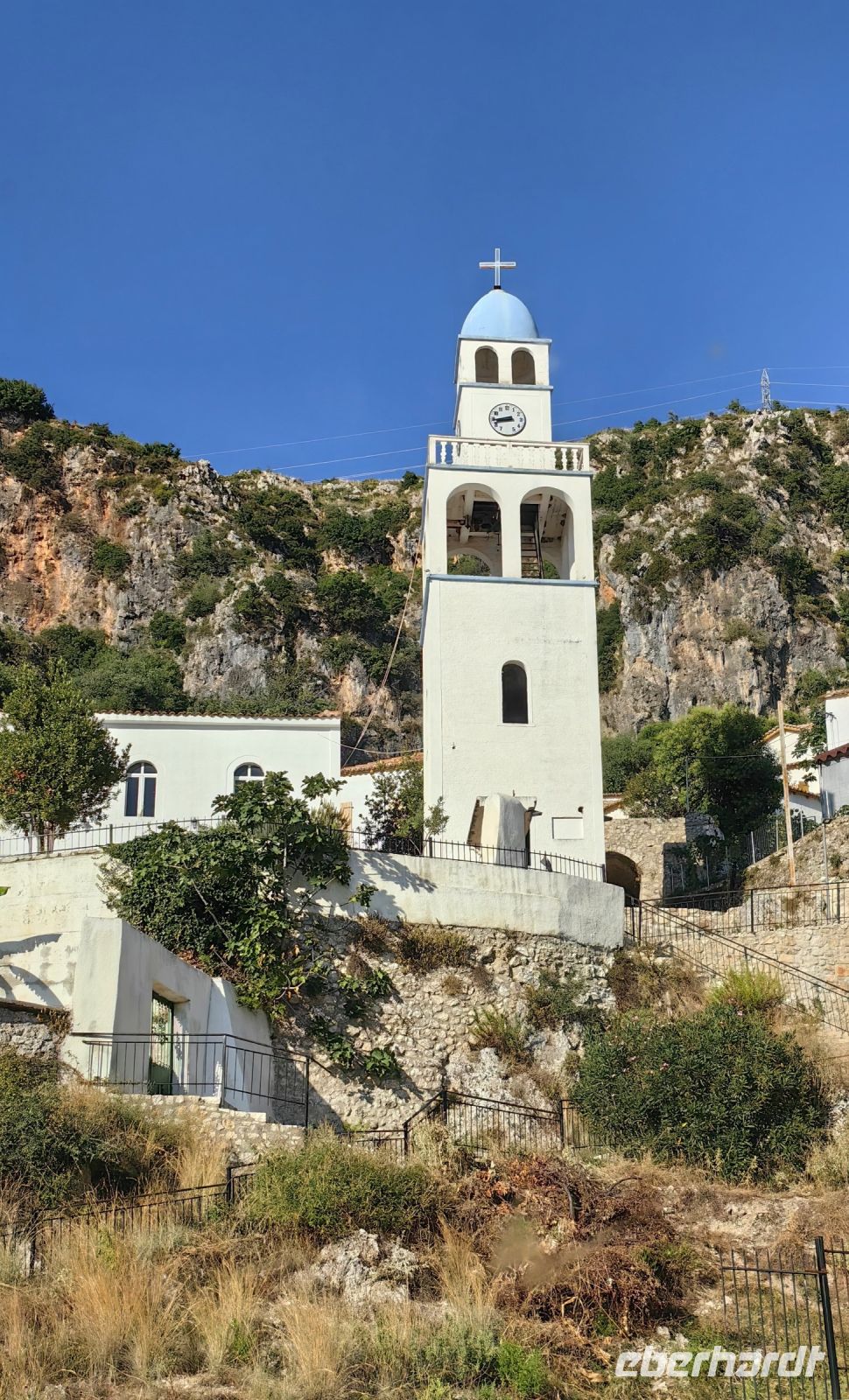 An der Riviera hat man die kleinen Bergdörfer wie beispielsweise Vlor und Dhermi mit viel Aufwand und Mühe liebevoll hergerichtet, alle Häuserfassaden strahlen weiß vor der Bergkulisse und davon heben sich die roten runden Dachziegel sehr schön ab. Über der ganzen Kulisse strahlt erhaben die Saint Demetrius Kirche mit ihrer charakteristischen blauen Kuppel.