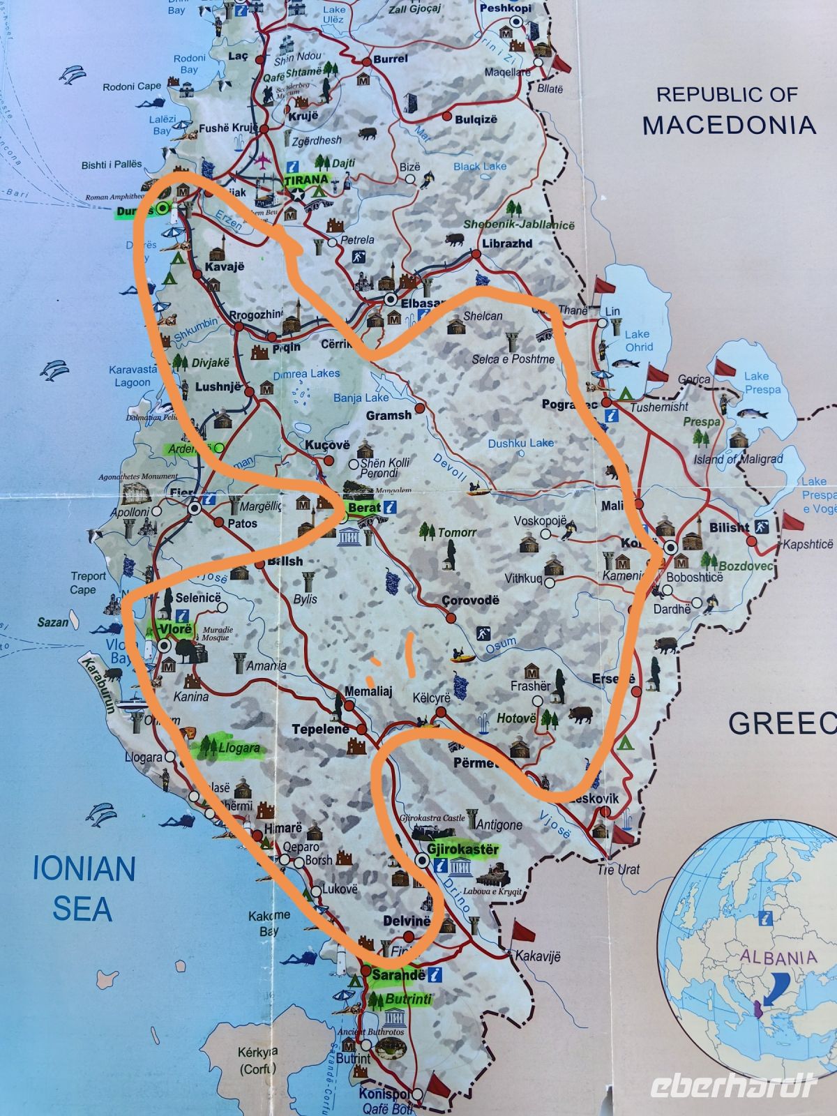 Wir haben ein faszinierendes Land erlebt auf unserer Reise, viele Vorurteile, die unsere Freunde und Bekannten zu Hause haben, können wir getrost ausräumen. Gastfreundliche Menschen, traumhaft schöne Landschaften, natürliche Flußläufe, geschichtsträchtige Burgruinen, antike Stätten und mittelalterliche Altstädte haben wir erkundet. Das Essen mit viel Gemüse und Fisch hat uns hervorragend geschmeckt. Korcabier und einheimische Weine versüßten uns die Abende. Schade nur, daß die Zeit wie im Flug verging.
