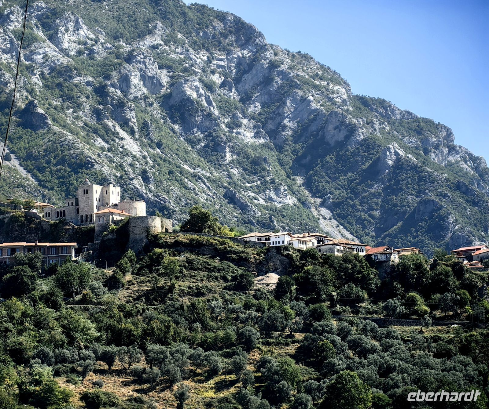 Bei strahlend blauem Himmel verlassen wir Permet und fahren gen Süden. Der Vjosa begleitet uns noch eine Weile, dann biegen wir allerdings ab in das Flußtal des türkisblauen Drinos. Seine Quelle liegt im Norden Griechenlands, erst nach etwa 20 Kilometern tritt er auf albanisches Gebiet über und bei Tepelena mündet er in den Vjosa.