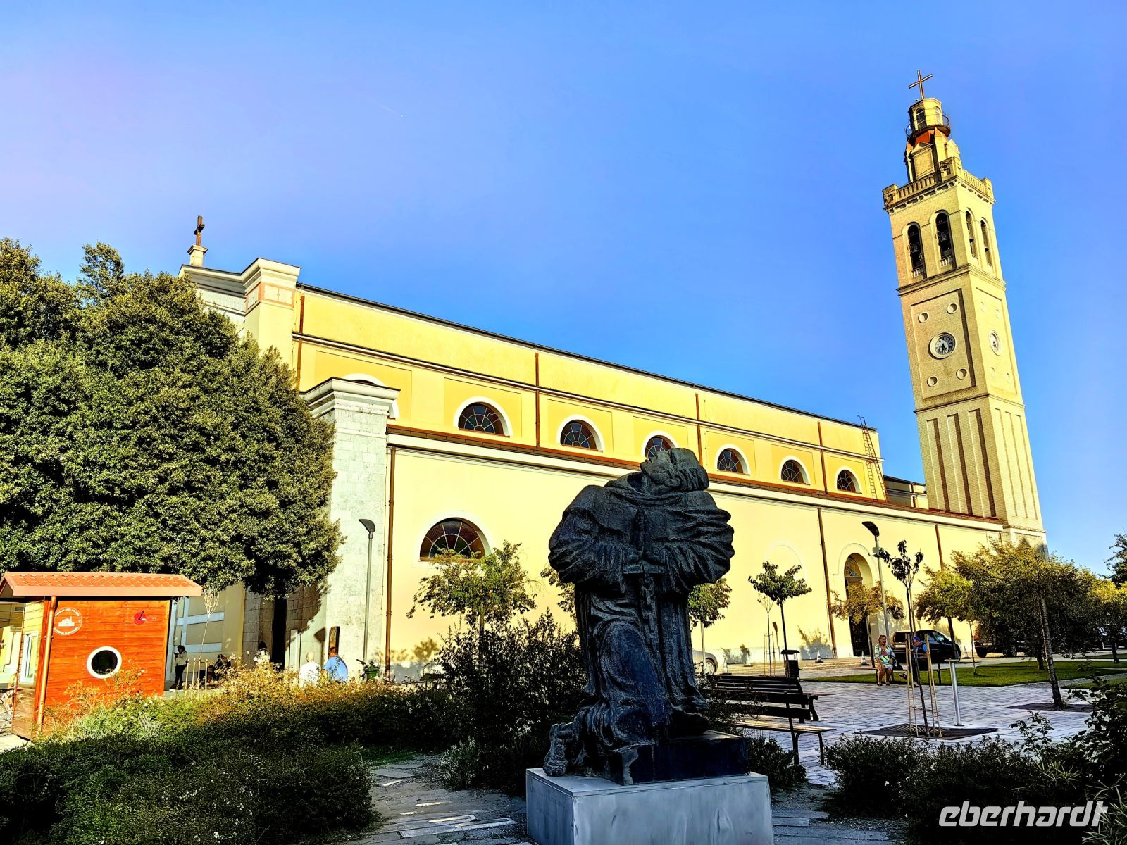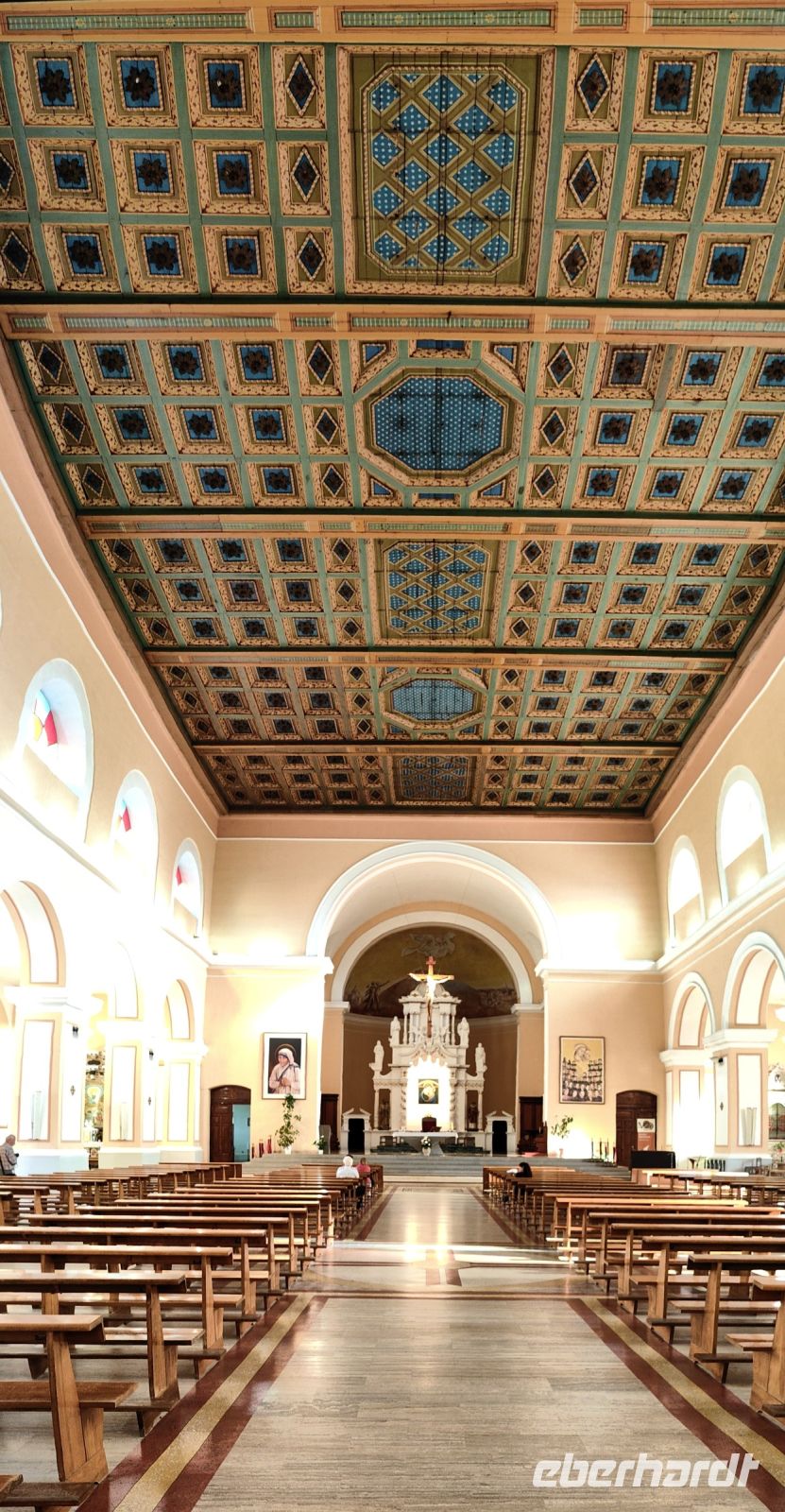 Wir gehen an einer Kirche vorbei und sehen in den kleinen Gärtchen Orangen- und Feigenbäume und voll behangene Weinstöcke.
