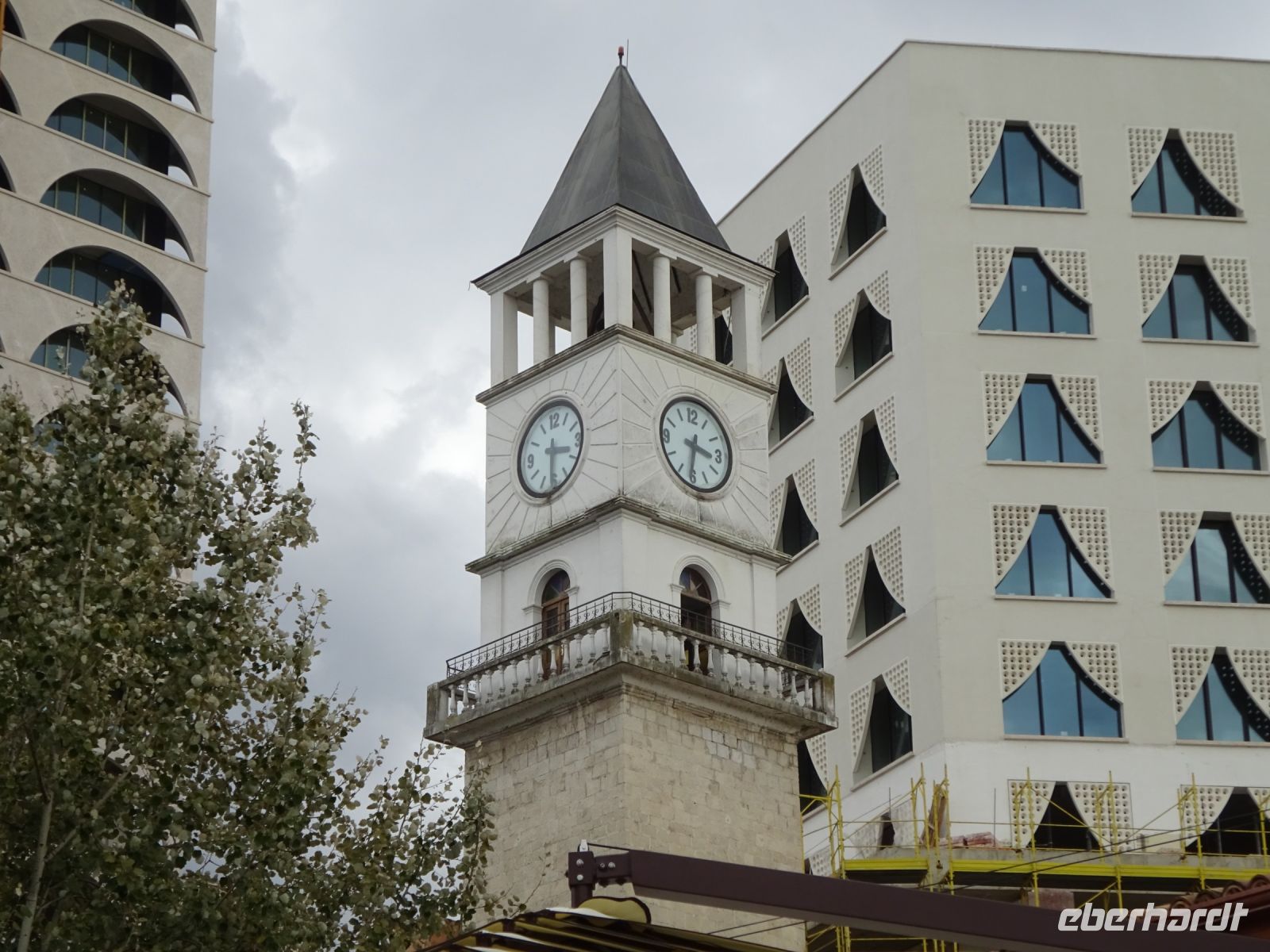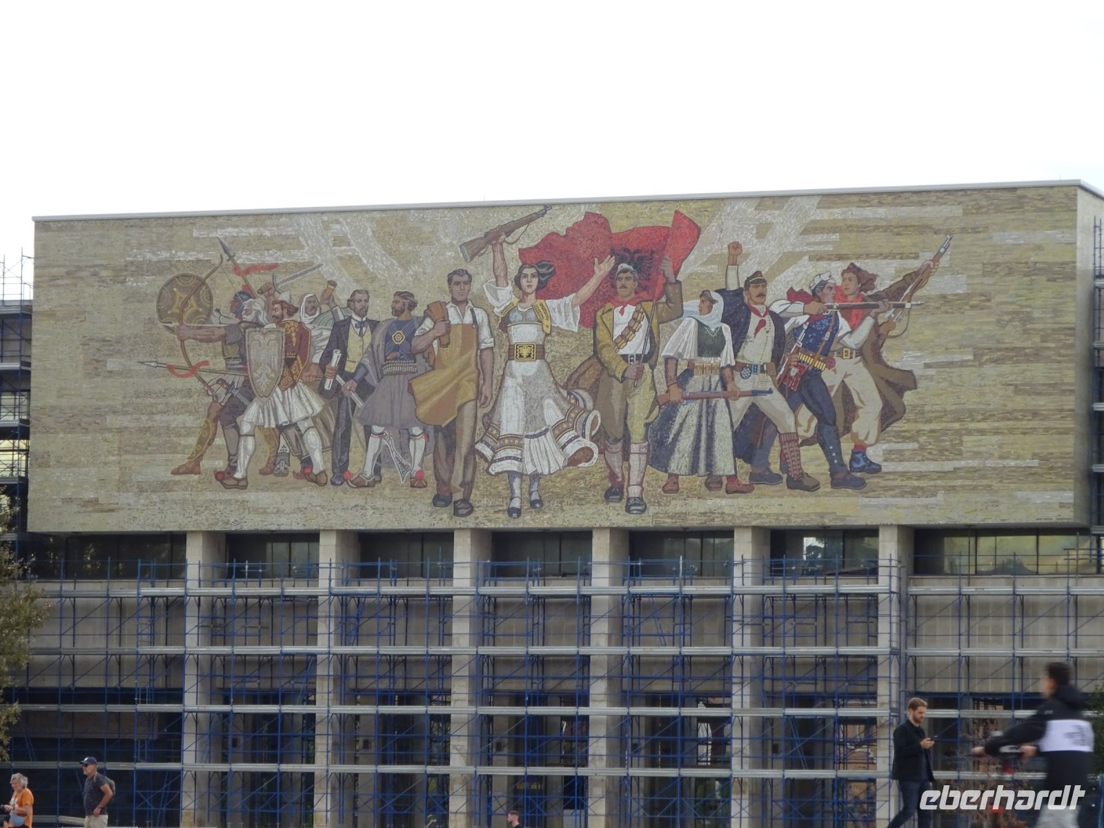 Von Berlin flogen wir zusammen mit unserer Reisebegleiterin zunächst nach Wien. Dort war dann die Gruppe auch komplett, nachdem sich zwei weitere Gäste, aus Frankfurt kommend, hinzu gesellt hatten. Weiter ging es nach Tirana. Hier wurden wir am Flughafen von unserem örtlichen Reiseleiter Andi, der uns die gesamte Reise über begleiteten wird, empfangen. Wir gingen zum Bus, wo wir auch unseren Busfahrer Alban kennenlernten. Alle waren wir sehr früh aufgestanden bzw. gar nicht erst im Bett gewesen und nun etwas müde, aber gegen unsere Müdigkeit halfen die ersten Eindrücke der dynamischen albanischen Hauptstadt. Hier wird viel gebaut, auf den Straßen auch etwas anders gefahren als bei uns. Von Andi gab es gleich im Bus schon Informationen zu Land und Leuten, zur überaus wechselvollen Geschichte Albaniens und auch zur Entwicklung der in mehrfacher Hinsicht jungen Hauptstadt Tirana. Wir gingen auch gleich auf eine erste Erkundungstour durch die albanische Hauptstadt. Dabei lernten wir die wichtigsten Sehenswürdigkeiten kennen: den Skanderbeg-Platz mit dem Skanderbeg-Denkmal, die Oper, die Nationalbank und natürlich das Nationalmuseum, das gerade saniert wird und leider für längere Zeit für Besucher geschlossen bleibt. Wir sahen den Uhrturm mit einer deutschen Uhr, die Ethem-Bej-Moschee und bewunderten auch die schön sanierten Häuser im italienischen Stil auf der einen Seite des Platzes. Den zweiten Teil des Stadtrundgangs haben wir uns für morgen vorgenommen, denn nun wollen wir ins Hotel, uns ein wenig erfrischen, um danach zum Abendessen in ein typisch albanisches Restaurant zu gehen. Das Essen war vorzüglich, dazu gab es Livemusik. Wir waren angekommen in Albanien.