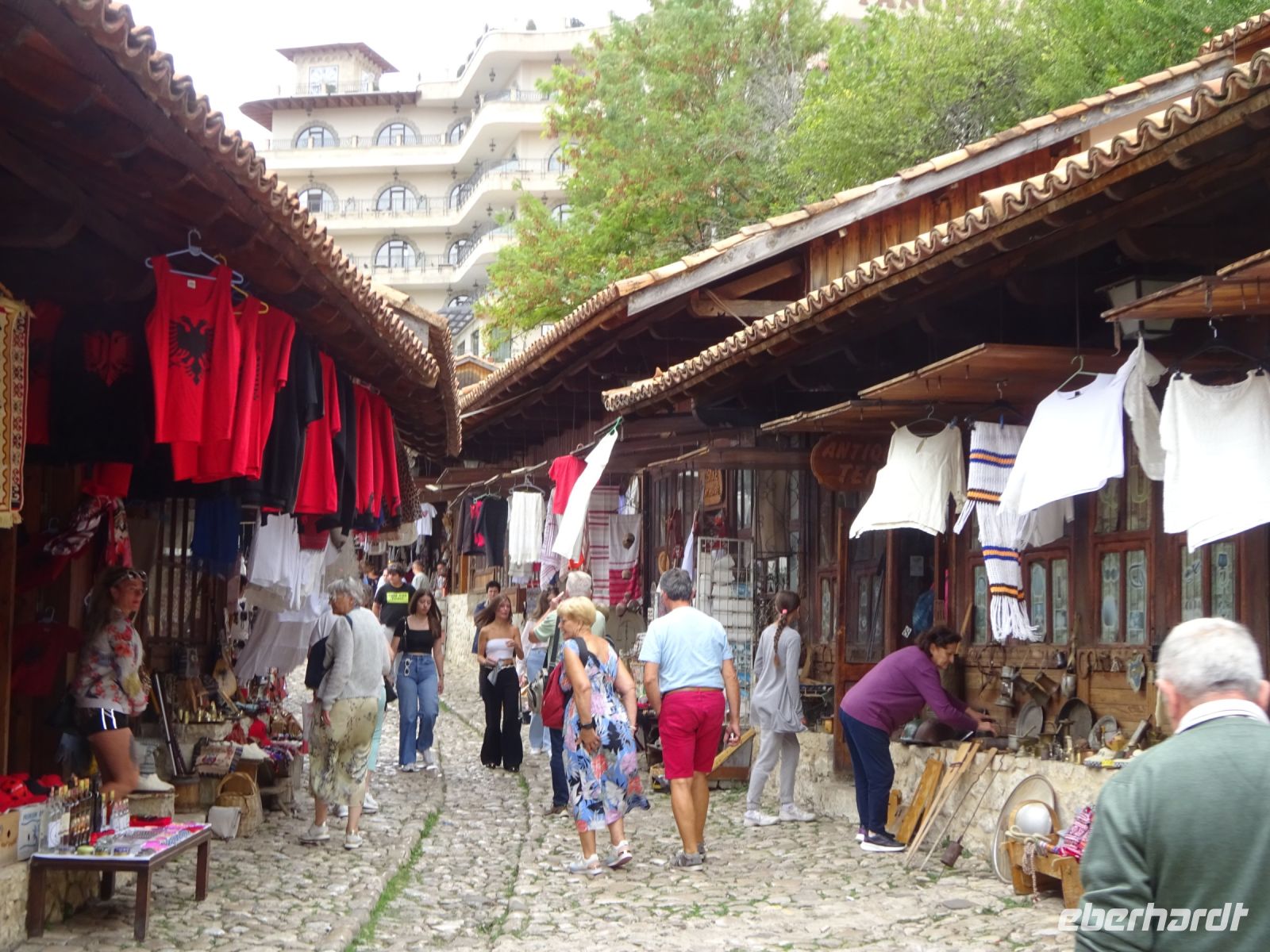Gut gestärkt machten wir uns nach dem Frühstück auf nach Gjirokastra, das als eine der interessantesten Städte Albaniens gilt. Zunächst besuchen wir die Festung von Gjirokastra, sehen uns alles an, genießen die einzigartige Aussicht von dort oben, machen Fotos. Auf dem Weg zur Burg sahen wir schon Teile der historischen Altstadt. Dafür nehmen wir uns später mehr Zeit, d.h. wir bummeln gemütlich durch die sehr schöne historische Altstadt und gehen natürlich auch auf Souveniersuche. Nun setzen wir unsere Tour in Richtung Küste fort. Auch hier warten interessante Entdeckungen auf uns. Unser Ziel ist der Badeort Saranda. Wir haben das Meer vor der Tür, die griechische Insel Korfu in Sichtweite. Am Abend ist noch Gelegenheit für einen Spaziergang entlang der Promenade