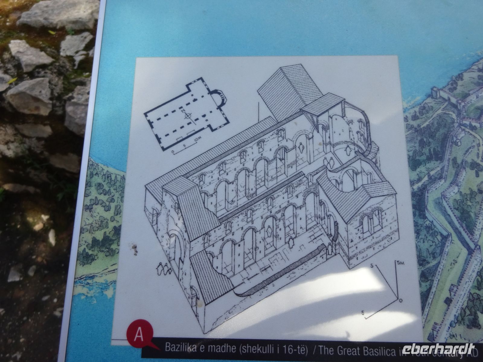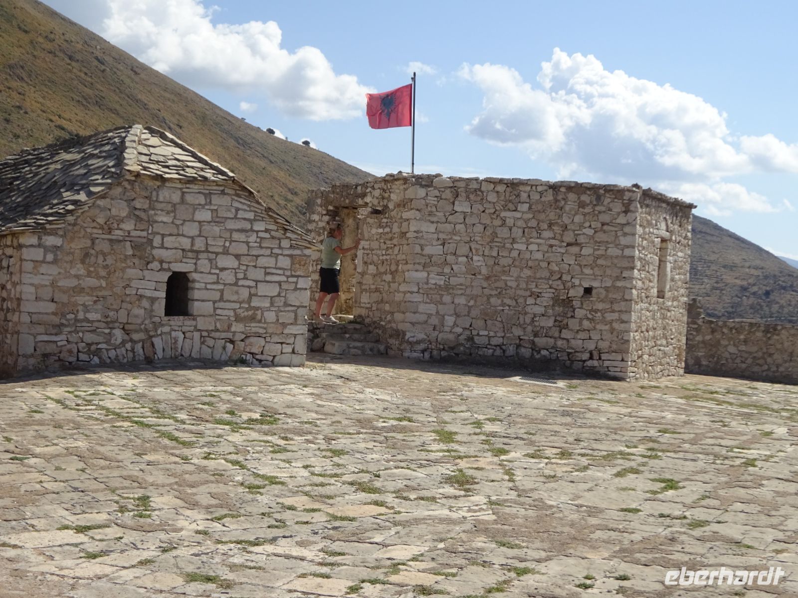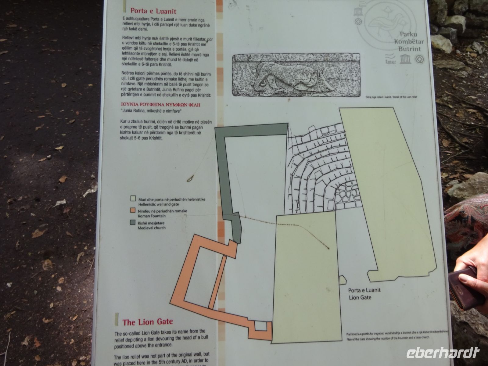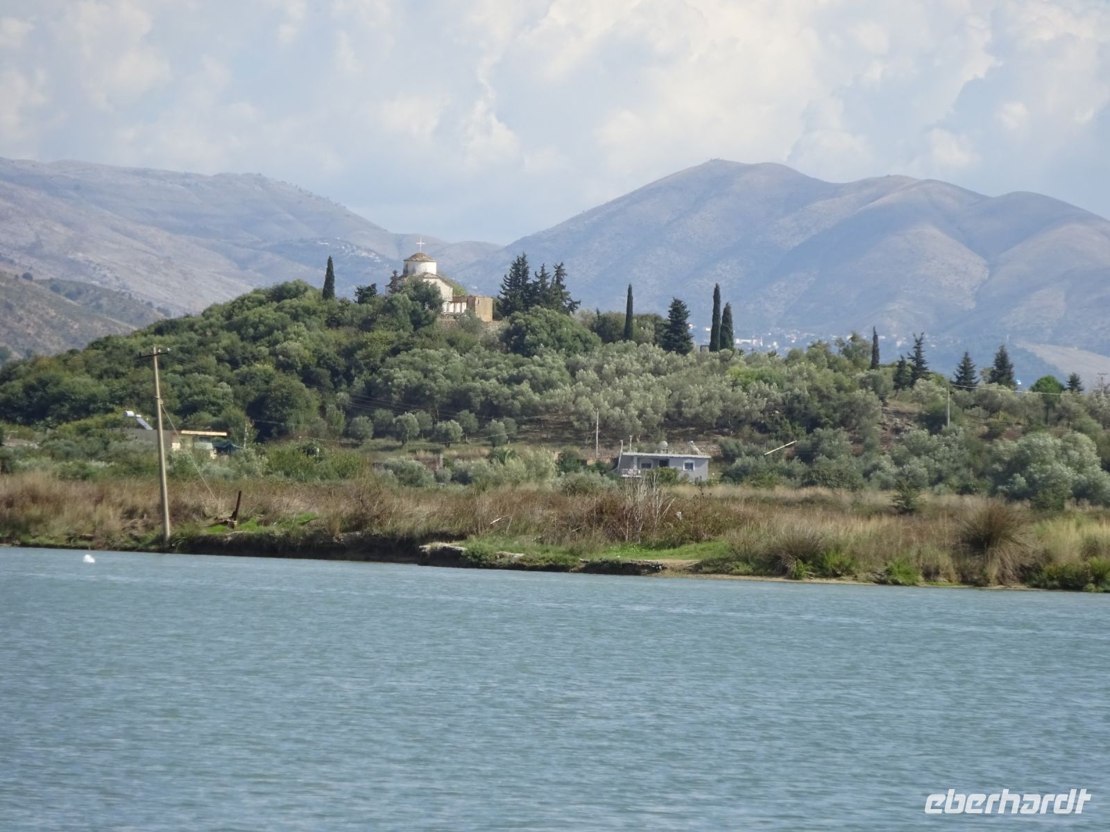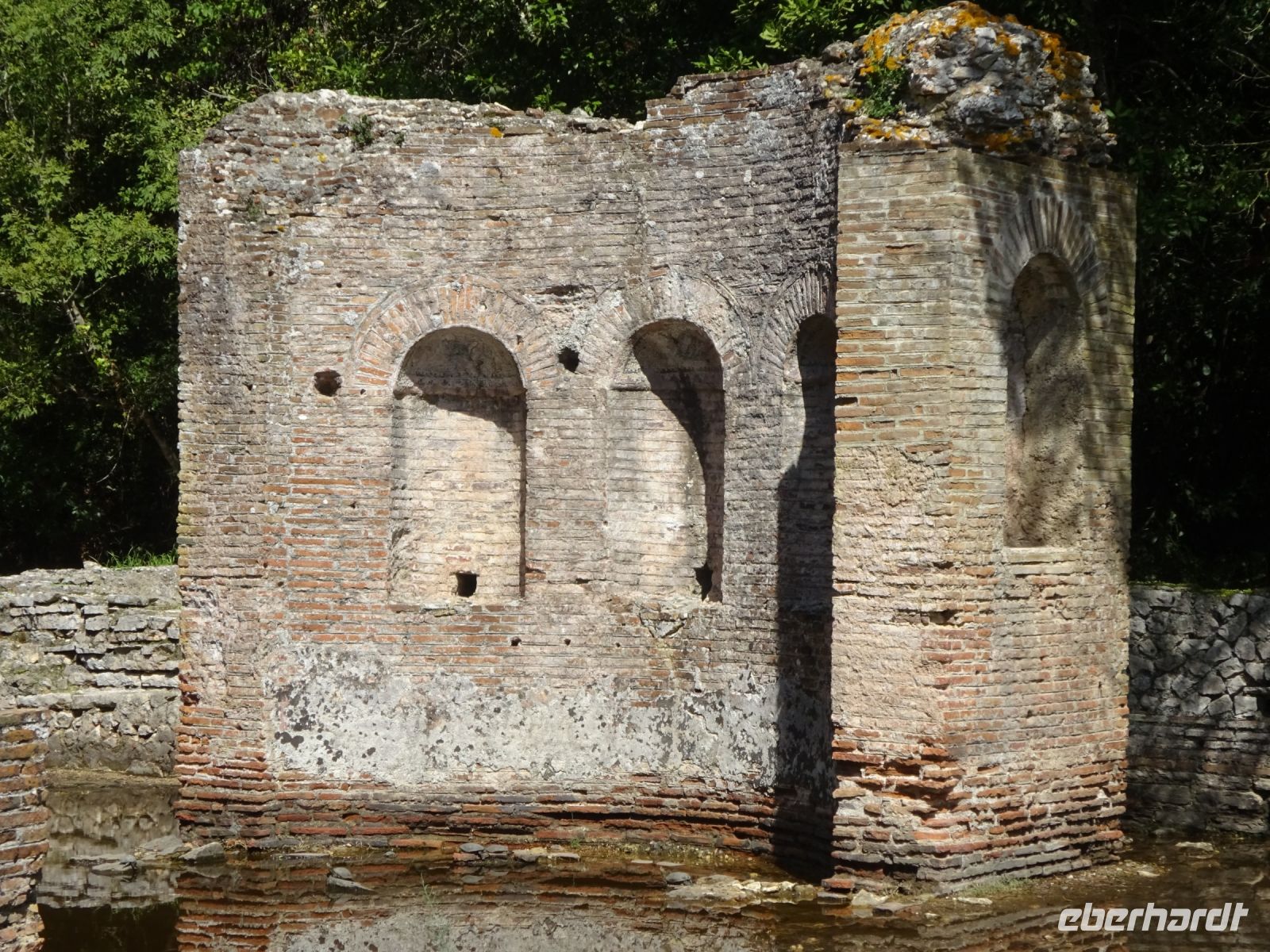 Erster Programmpunkt ist heute das Blue Eye, eine beeindruckende blaue Quelle. Das Wasser sprudelt hier unterirdisch hervor, und bisher weiß niemand genau, wo die Quelle eigentlich ihren Ursprung hat. Gern verweilen wir ein wenig in diesem schönen Naturpark. Die Sonne lacht, was will man mehr. Aber noch weitere Entdeckungen warten auf uns. Ganz in der Nähe von Saranda in etwas südliche Richtung befindet sich der Nationalpark von Butrint, der anschließend auf unserem Programm steht. Es handelt sich dabei um eine der wichtigsten Sehenswürdigkeiten Albaniens überhaupt, die nicht umsonst auf der Liste des UNESCO-Weltkulturerbes steht. Andi führt uns in Butrint durch die Ausgrabungsstätten. Wir kommen aus dem Staunen nicht heraus. Wir sehen u.a. die Fragmente des Amphitheaters und die venezianische Festung, Wasserleitungssysteme und Quellen, Reste einer Kirche, die frühere Stadtbefestigung, Teile der Stadttore usw., usw. Dann fahren wir weiter in Richtung Saranda, wo wir oberhalb des Ortes die malerisch gelegene Festungsruine Lekuresi sehen.