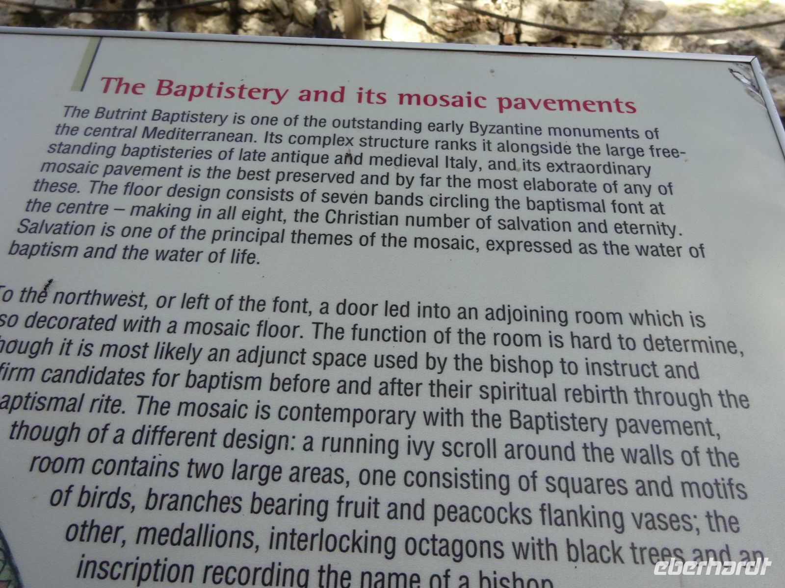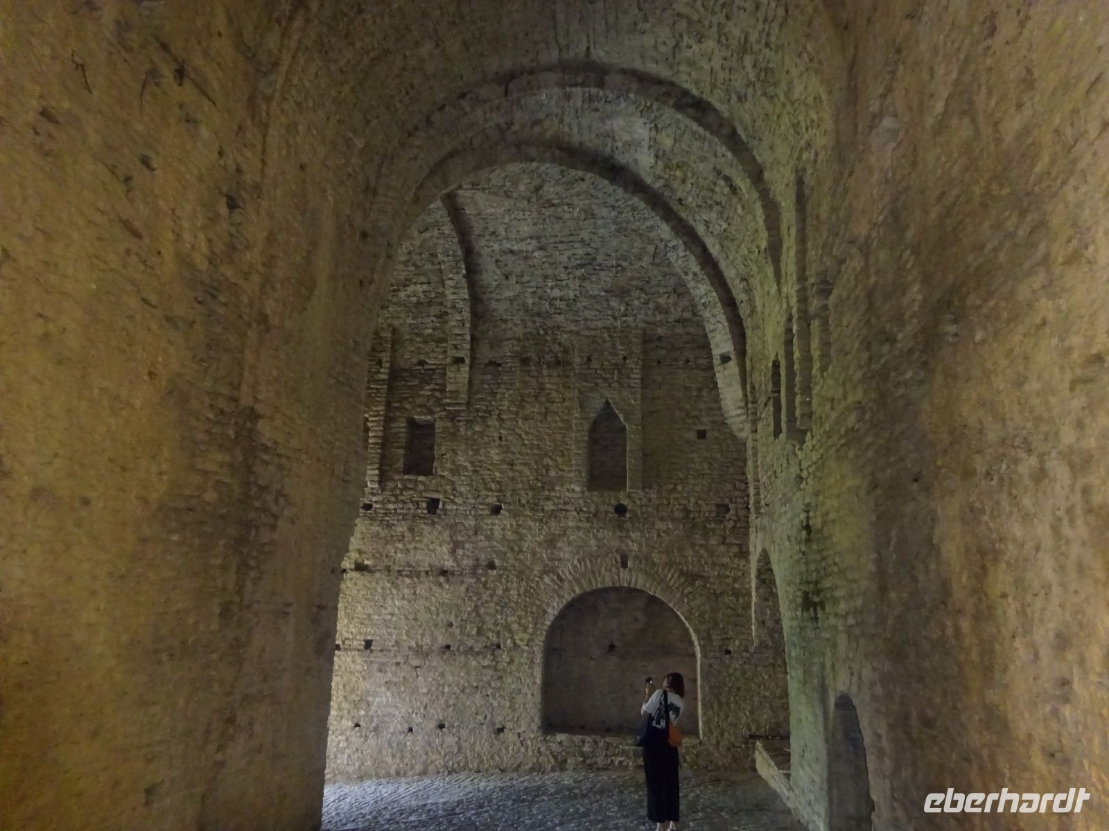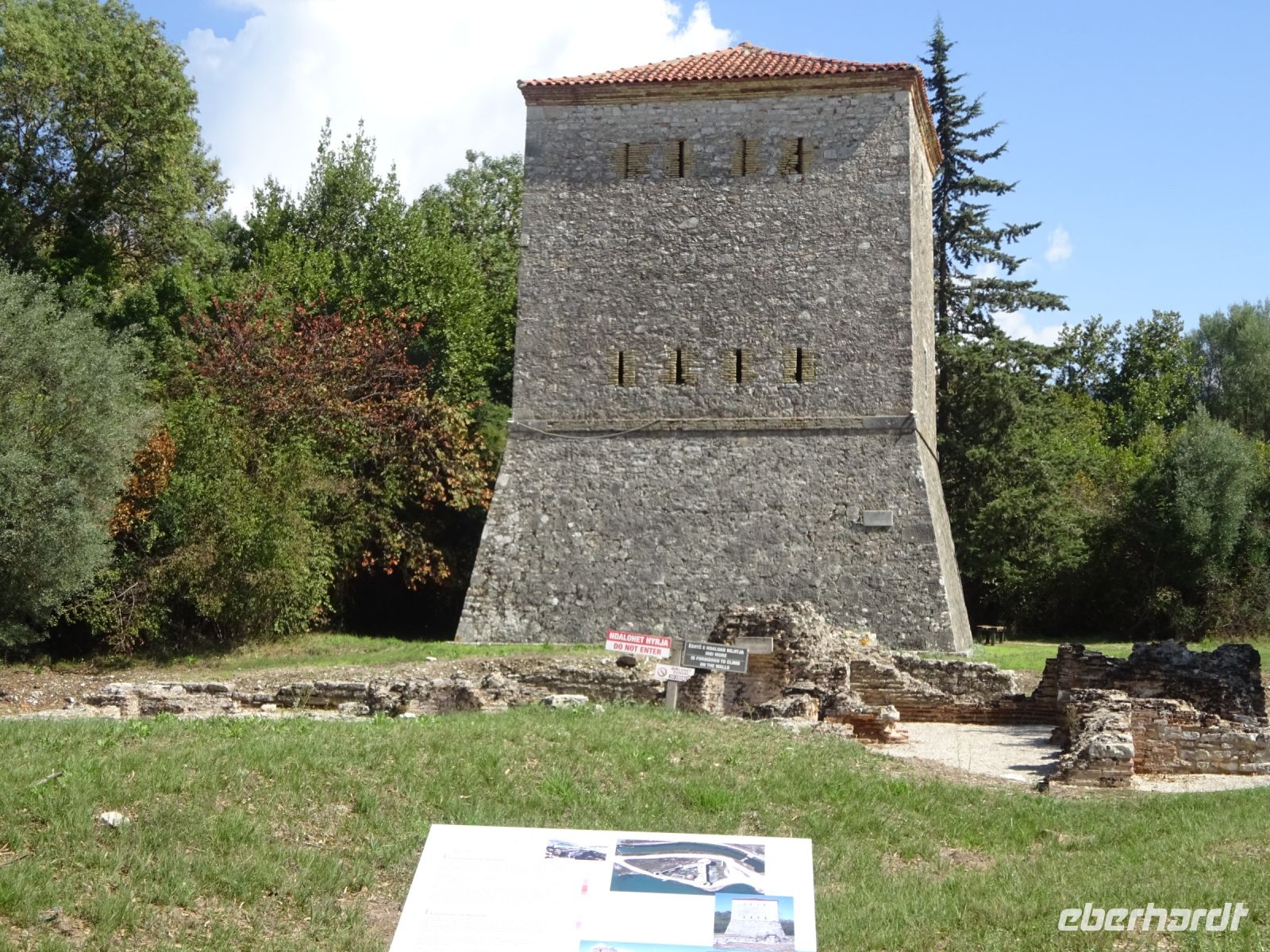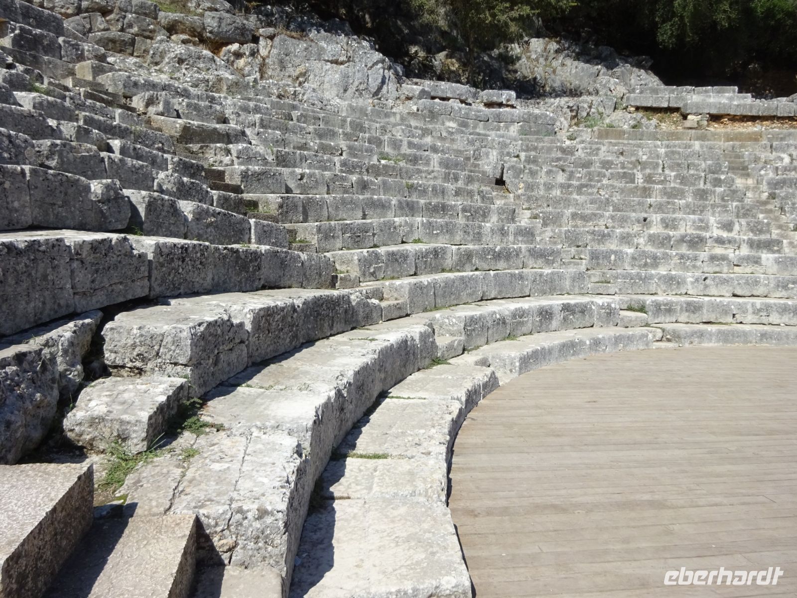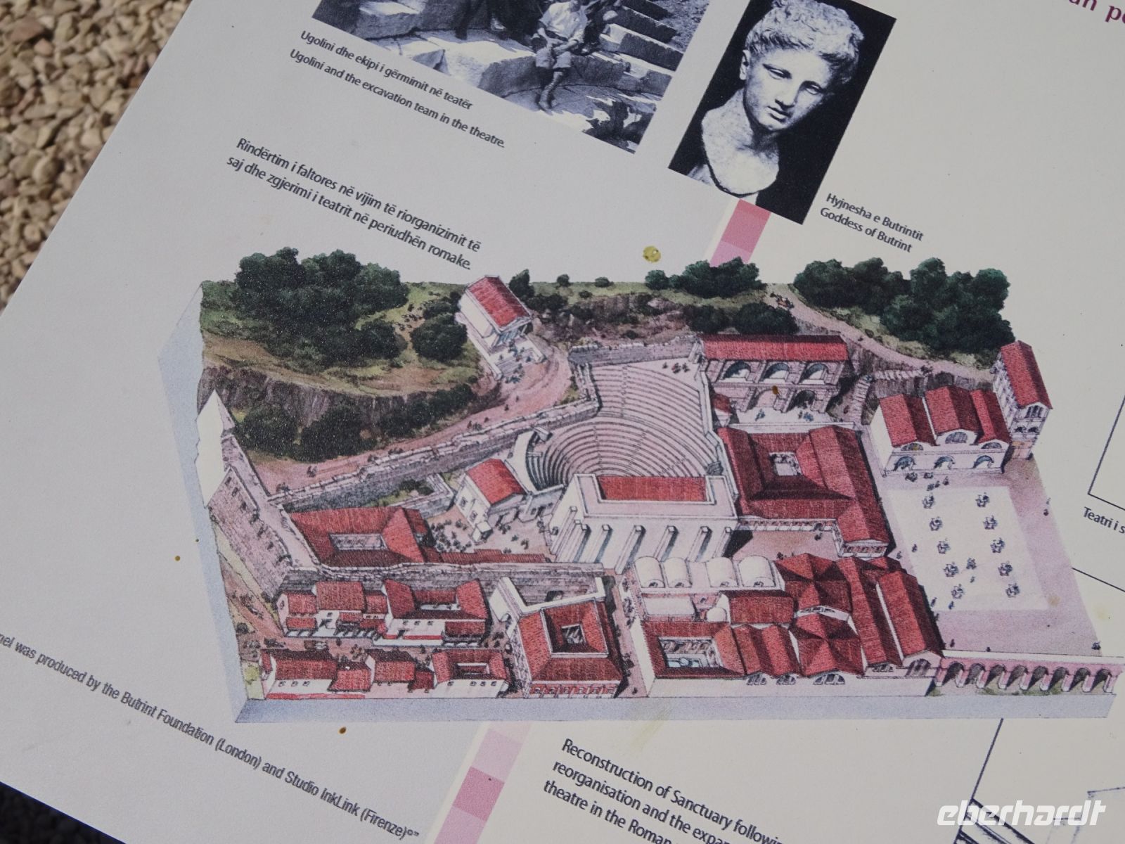 Erster Programmpunkt ist heute das Blue Eye, eine beeindruckende blaue Quelle. Das Wasser sprudelt hier unterirdisch hervor, und bisher weiß niemand genau, wo die Quelle eigentlich ihren Ursprung hat. Gern verweilen wir ein wenig in diesem schönen Naturpark. Die Sonne lacht, was will man mehr. Aber noch weitere Entdeckungen warten auf uns. Ganz in der Nähe von Saranda in etwas südliche Richtung befindet sich der Nationalpark von Butrint, der anschließend auf unserem Programm steht. Es handelt sich dabei um eine der wichtigsten Sehenswürdigkeiten Albaniens überhaupt, die nicht umsonst auf der Liste des UNESCO-Weltkulturerbes steht. Andi führt uns in Butrint durch die Ausgrabungsstätten. Wir kommen aus dem Staunen nicht heraus. Wir sehen u.a. die Fragmente des Amphitheaters und die venezianische Festung, Wasserleitungssysteme und Quellen, Reste einer Kirche, die frühere Stadtbefestigung, Teile der Stadttore usw., usw. Dann fahren wir weiter in Richtung Saranda, wo wir oberhalb des Ortes die malerisch gelegene Festungsruine Lekuresi sehen.