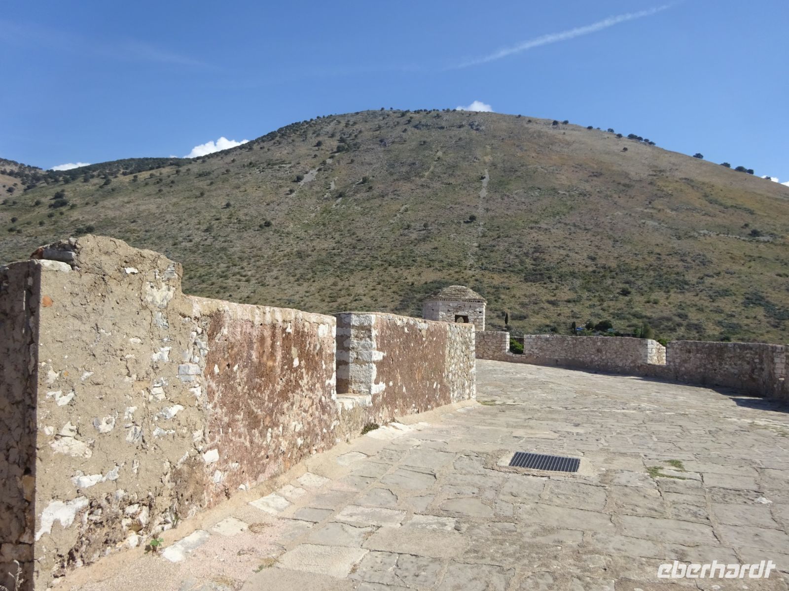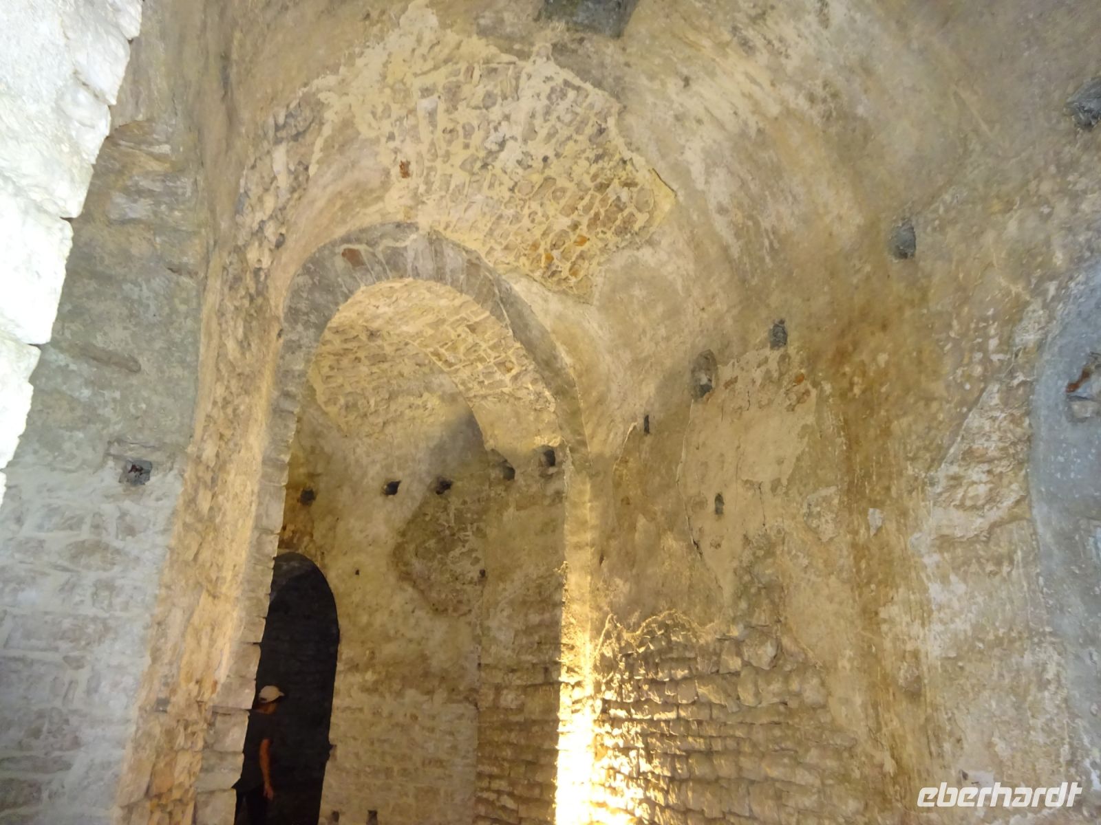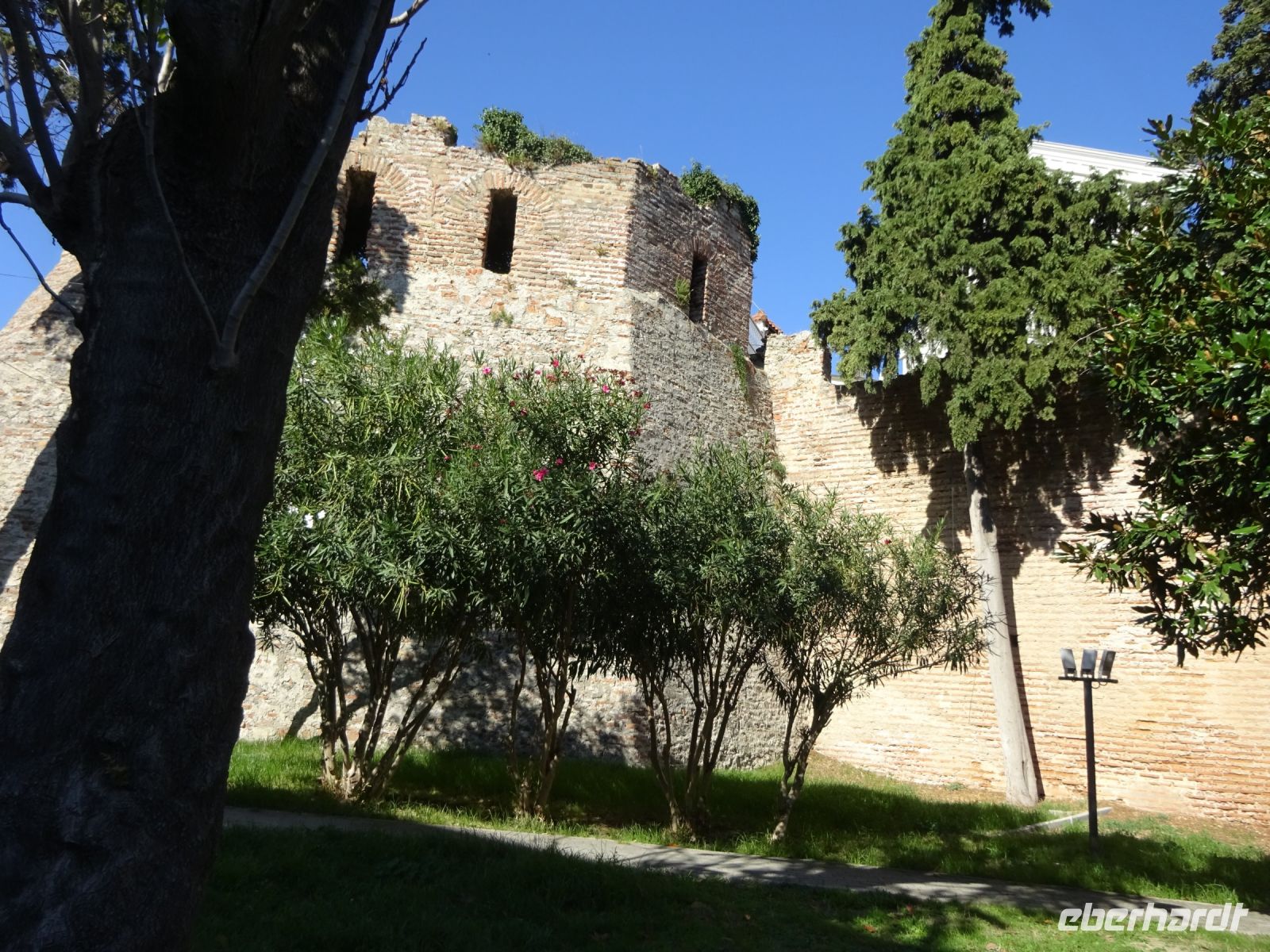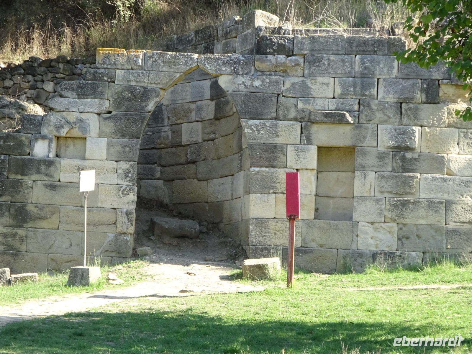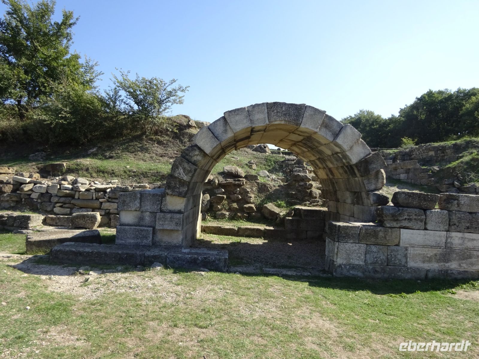 Erster Programmpunkt ist heute das Blue Eye, eine beeindruckende blaue Quelle. Das Wasser sprudelt hier unterirdisch hervor, und bisher weiß niemand genau, wo die Quelle eigentlich ihren Ursprung hat. Gern verweilen wir ein wenig in diesem schönen Naturpark. Die Sonne lacht, was will man mehr. Aber noch weitere Entdeckungen warten auf uns. Ganz in der Nähe von Saranda in etwas südliche Richtung befindet sich der Nationalpark von Butrint, der anschließend auf unserem Programm steht. Es handelt sich dabei um eine der wichtigsten Sehenswürdigkeiten Albaniens überhaupt, die nicht umsonst auf der Liste des UNESCO-Weltkulturerbes steht. Andi führt uns in Butrint durch die Ausgrabungsstätten. Wir kommen aus dem Staunen nicht heraus. Wir sehen u.a. die Fragmente des Amphitheaters und die venezianische Festung, Wasserleitungssysteme und Quellen, Reste einer Kirche, die frühere Stadtbefestigung, Teile der Stadttore usw., usw. Dann fahren wir weiter in Richtung Saranda, wo wir oberhalb des Ortes die malerisch gelegene Festungsruine Lekuresi sehen.