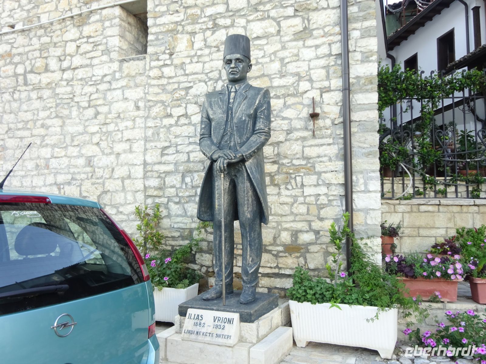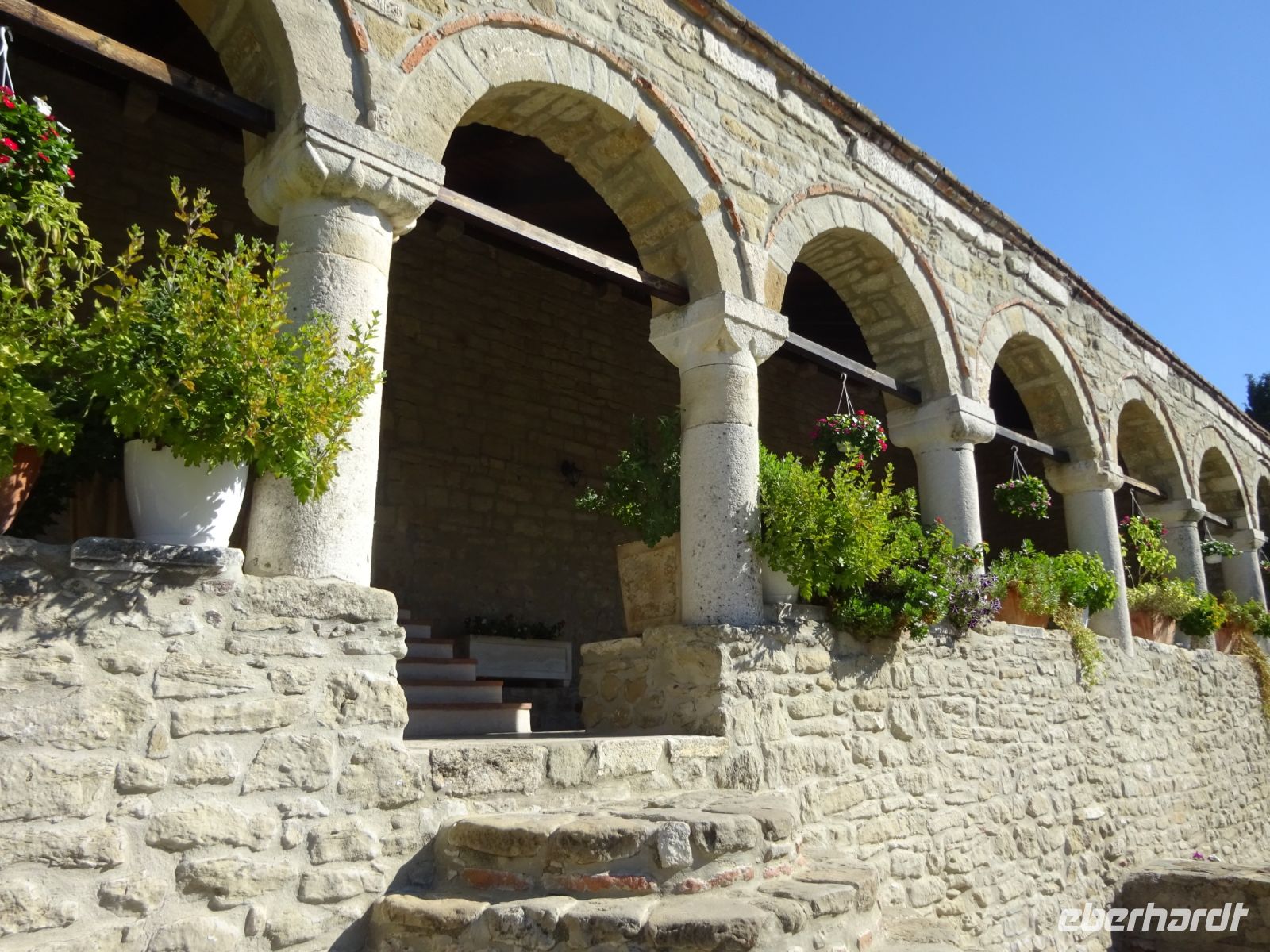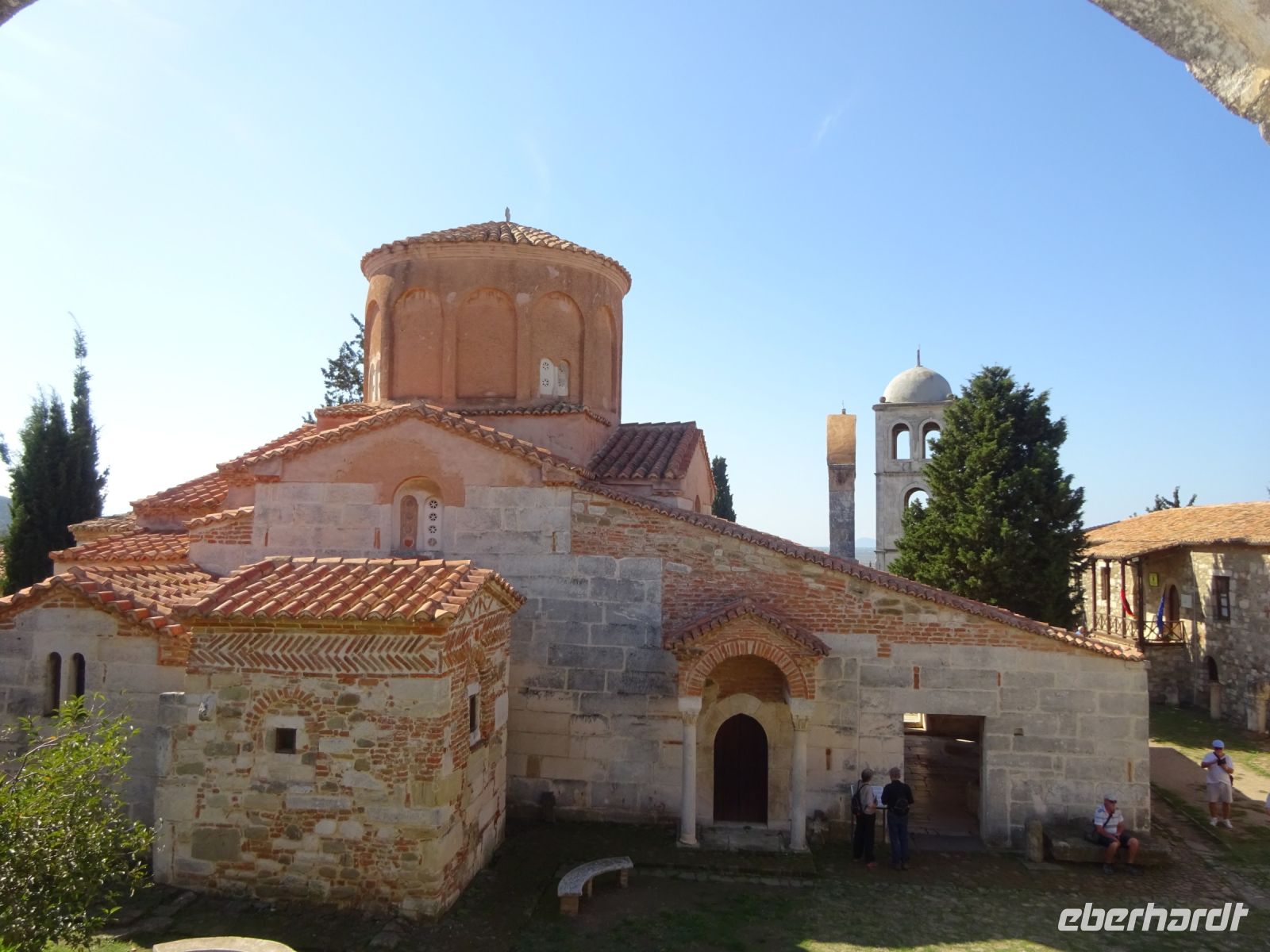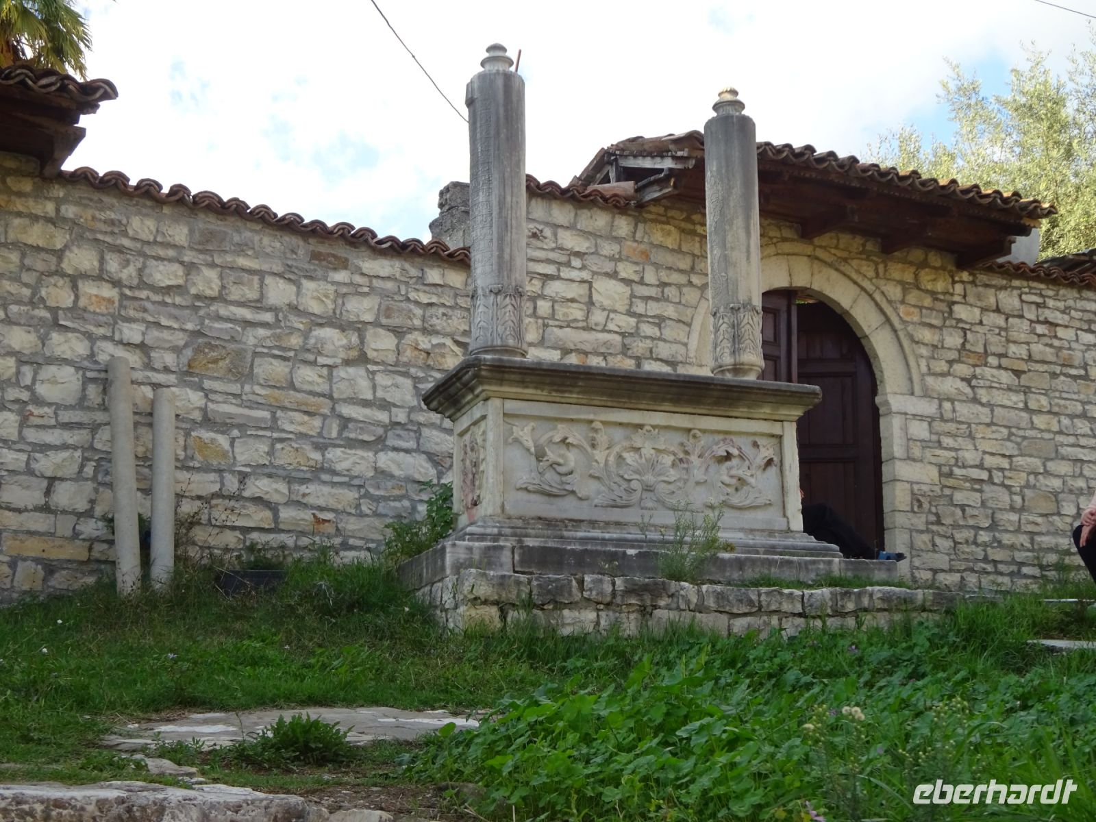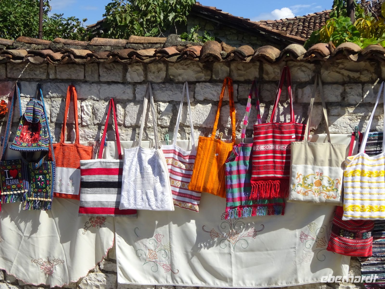 Wir fuhren mit unserem Bus in südliche Richtung hinaus aus Tirana über Elbasan, die viertgrößte Stadt Albaniens. Unser heutiges Tagesziel ist Berat, eine wirklich sehenswerte Stadt. Gelesen und gehört haben wir das schon, nun wollen wir es auch sehen. Weiße Natursteinhäuser mit großen Fenstern prägen das Bild der Altstadt und verliehen ihr einst den Beinamen „Stadt der tausend Fenster“. Über der Stadt erhebt sich eine der größten Festungsanlagen des Balkans, die wir selbstverständlich kennenlernten und auf einem Rundgang besichtigten. Zunächst stärkten wir uns aber, dann gingen wir auf einen Rundgang durch die weitläufige Festung. Dies ist übrigens eigentlich eine Festungsstadt, die auch noch heute bewohnt ist. Davon können wir uns selbst überzeugen. Ganz besonders fasziniert uns die Nikolai-Kirche innerhalb der Festungsstadt. Sie ist an sich schon sehenswert, beherbergt aber dazu ein Ikonen-Museum mit Arbeiten des albanischen Ikonen-Malers Onufri und seines Sohnes Niklas. Nach der Besichtigung der Burganlage fahren wir mit unserem Bus hinunter in die Stadt. Im schönen Hotel Portik mitten im Zentrum wohnen wir, leider nur für eine Nacht. Nach einer kurzen Erfrischungspause nehmen wir uns nun die Stadt genauer vor. Fotomotive ohne Ende warten auf uns: wir sehen die Bleimoschee, auch die berühmten Häuser mit den tausend Fenstern, die der Stadt ihren Beinamen gaben. Beim Abendessen und auch beim Frühstück genießen wir die herrliche Aussicht von der Terrasse unseres Hotels im 5. Stock. Hier könnten wir uns gut einen längeren Aufenthalt vorstellen, aber unsere Karawane zog weiter. So sah es das Programm unserer Rundreise vor. Jeder Tag war spannend, bot neue interessante Sehenswürdigkeiten, zahlreiche Eindrücke in neuen Orten. Unsere Gesprächsthemen waren schier unerschöpflich, unsere Fragen auch. Wir wollten alles wissen über dieses Land und seine Menschen. Deshalb waren wir schließlich gekommen.