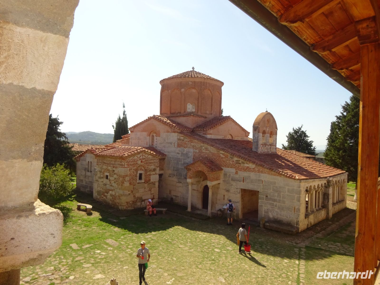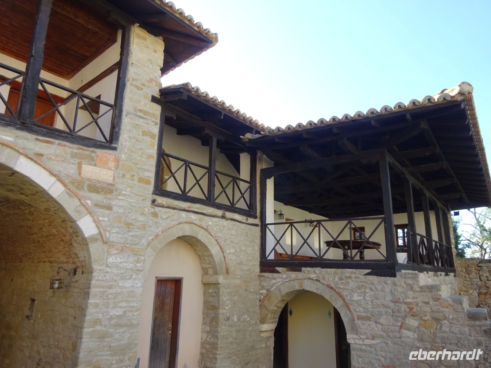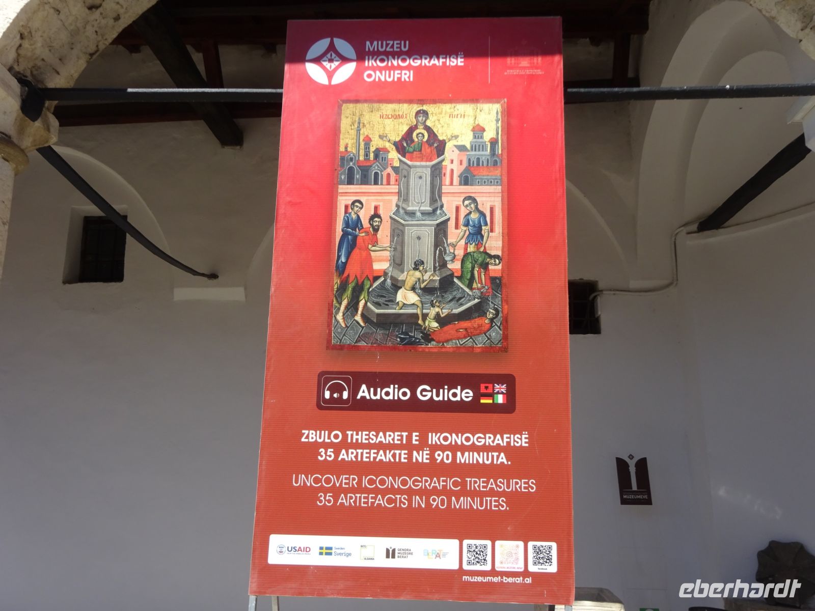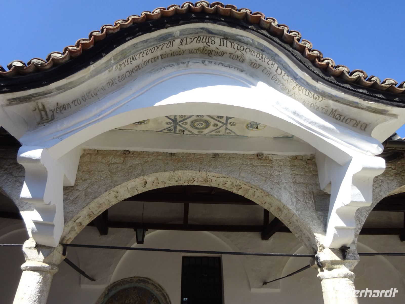 Wir fuhren mit unserem Bus in südliche Richtung hinaus aus Tirana über Elbasan, die viertgrößte Stadt Albaniens. Unser heutiges Tagesziel ist Berat, eine wirklich sehenswerte Stadt. Gelesen und gehört haben wir das schon, nun wollen wir es auch sehen. Weiße Natursteinhäuser mit großen Fenstern prägen das Bild der Altstadt und verliehen ihr einst den Beinamen „Stadt der tausend Fenster“. Über der Stadt erhebt sich eine der größten Festungsanlagen des Balkans, die wir selbstverständlich kennenlernten und auf einem Rundgang besichtigten. Zunächst stärkten wir uns aber, dann gingen wir auf einen Rundgang durch die weitläufige Festung. Dies ist übrigens eigentlich eine Festungsstadt, die auch noch heute bewohnt ist. Davon können wir uns selbst überzeugen. Ganz besonders fasziniert uns die Nikolai-Kirche innerhalb der Festungsstadt. Sie ist an sich schon sehenswert, beherbergt aber dazu ein Ikonen-Museum mit Arbeiten des albanischen Ikonen-Malers Onufri und seines Sohnes Niklas. Nach der Besichtigung der Burganlage fahren wir mit unserem Bus hinunter in die Stadt. Im schönen Hotel Portik mitten im Zentrum wohnen wir, leider nur für eine Nacht. Nach einer kurzen Erfrischungspause nehmen wir uns nun die Stadt genauer vor. Fotomotive ohne Ende warten auf uns: wir sehen die Bleimoschee, auch die berühmten Häuser mit den tausend Fenstern, die der Stadt ihren Beinamen gaben. Beim Abendessen und auch beim Frühstück genießen wir die herrliche Aussicht von der Terrasse unseres Hotels im 5. Stock. Hier könnten wir uns gut einen längeren Aufenthalt vorstellen, aber unsere Karawane zog weiter. So sah es das Programm unserer Rundreise vor. Jeder Tag war spannend, bot neue interessante Sehenswürdigkeiten, zahlreiche Eindrücke in neuen Orten. Unsere Gesprächsthemen waren schier unerschöpflich, unsere Fragen auch. Wir wollten alles wissen über dieses Land und seine Menschen. Deshalb waren wir schließlich gekommen.