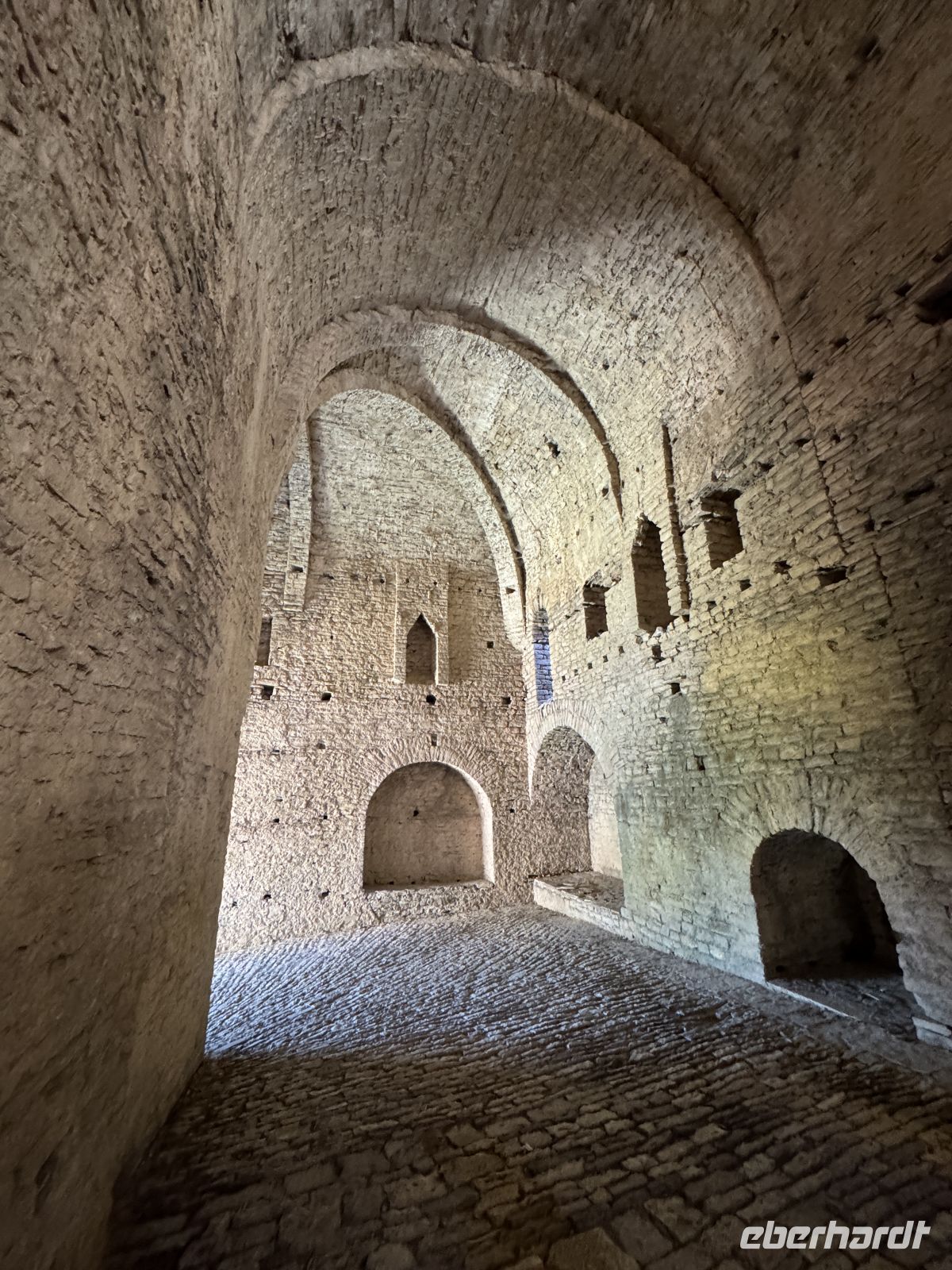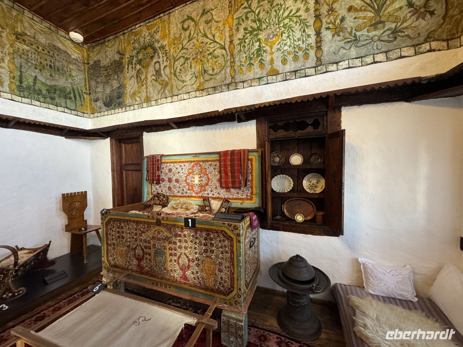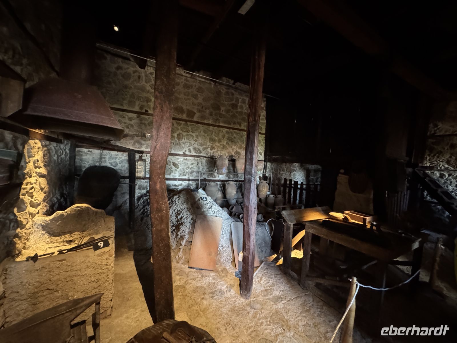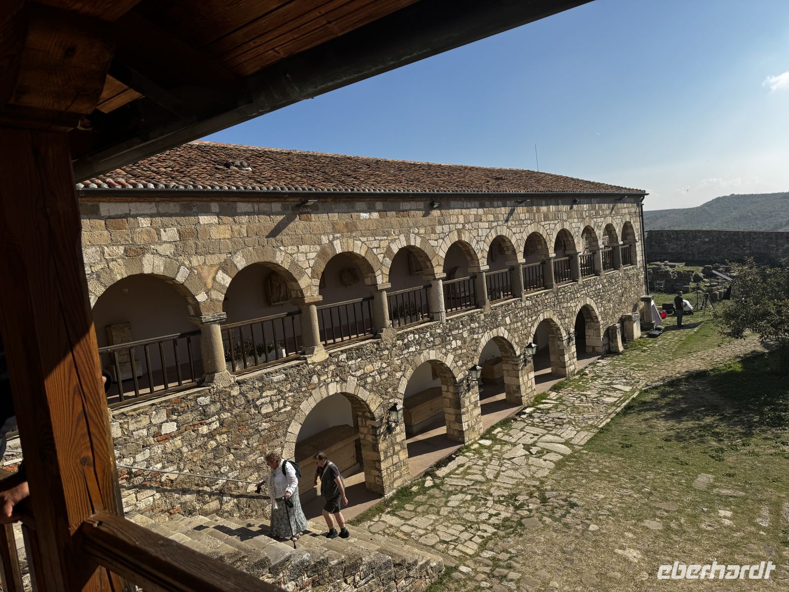 Wir begeben uns auf einem steilen Pflasterweg hinauf zur Burg, wo wir das Waffenmuseum besichtigen und von Neli viel Wissenswertes über die Geschichte der Festung und der Region erfahren. Wir besuchen das Skenduli-Haus, welches liebevoll restauriert wurde und heute als Museum für Geschichte fungiert.