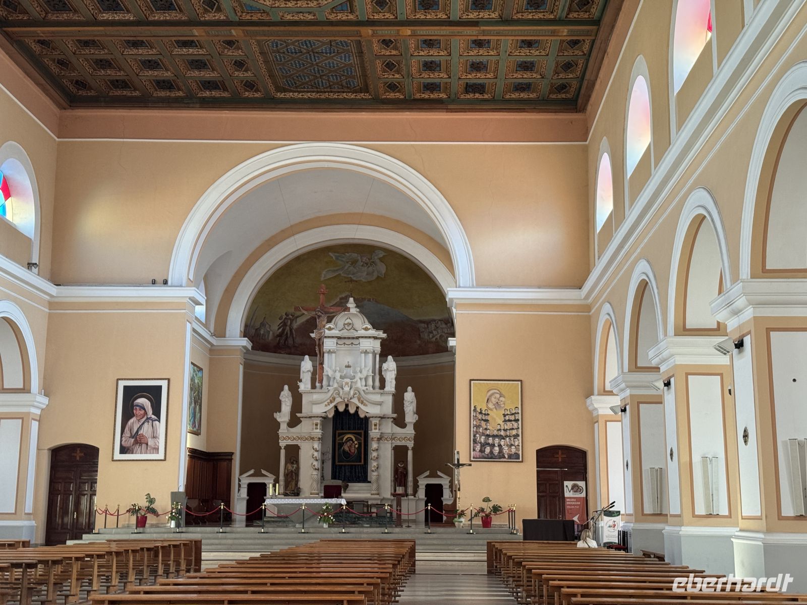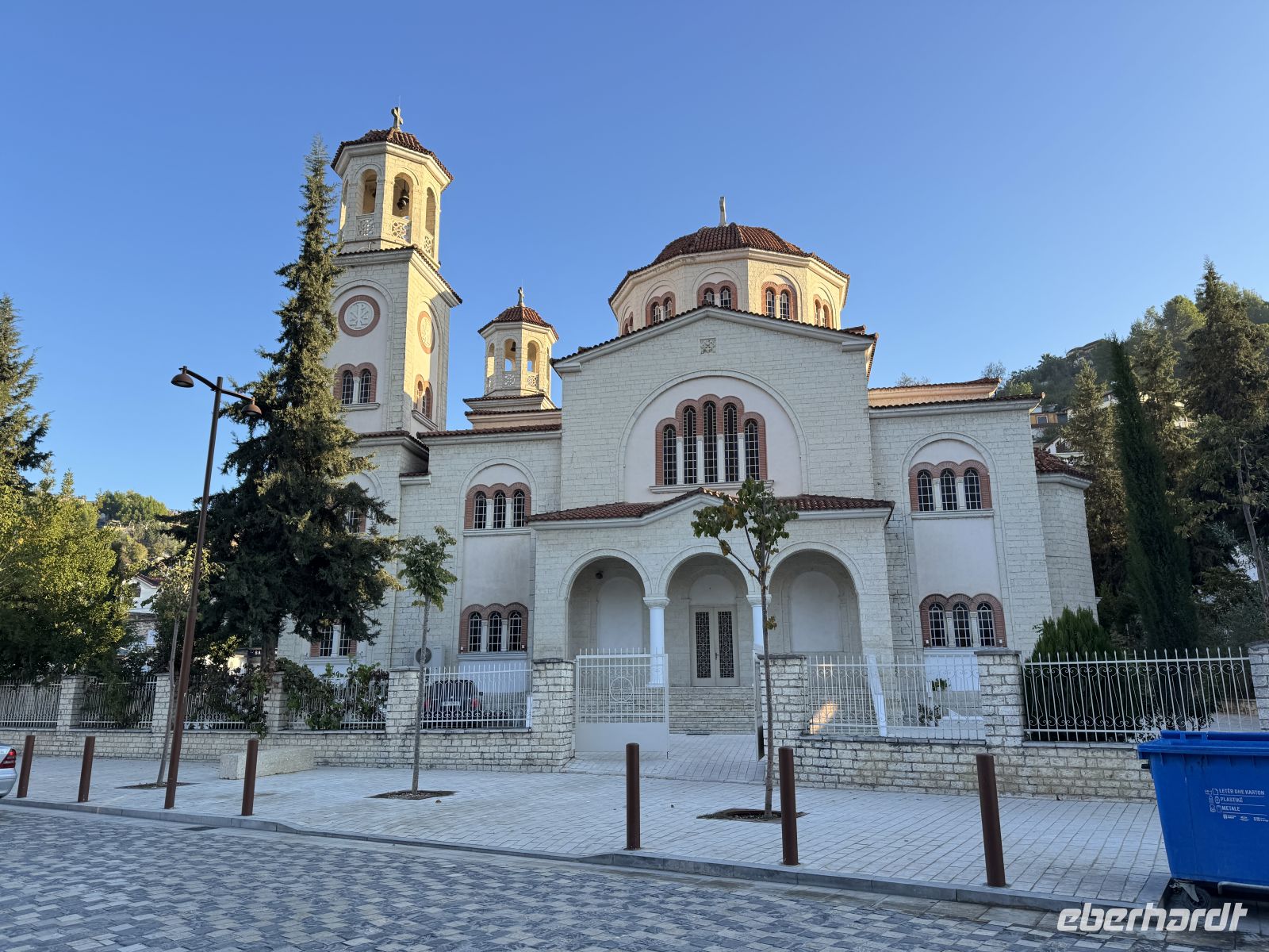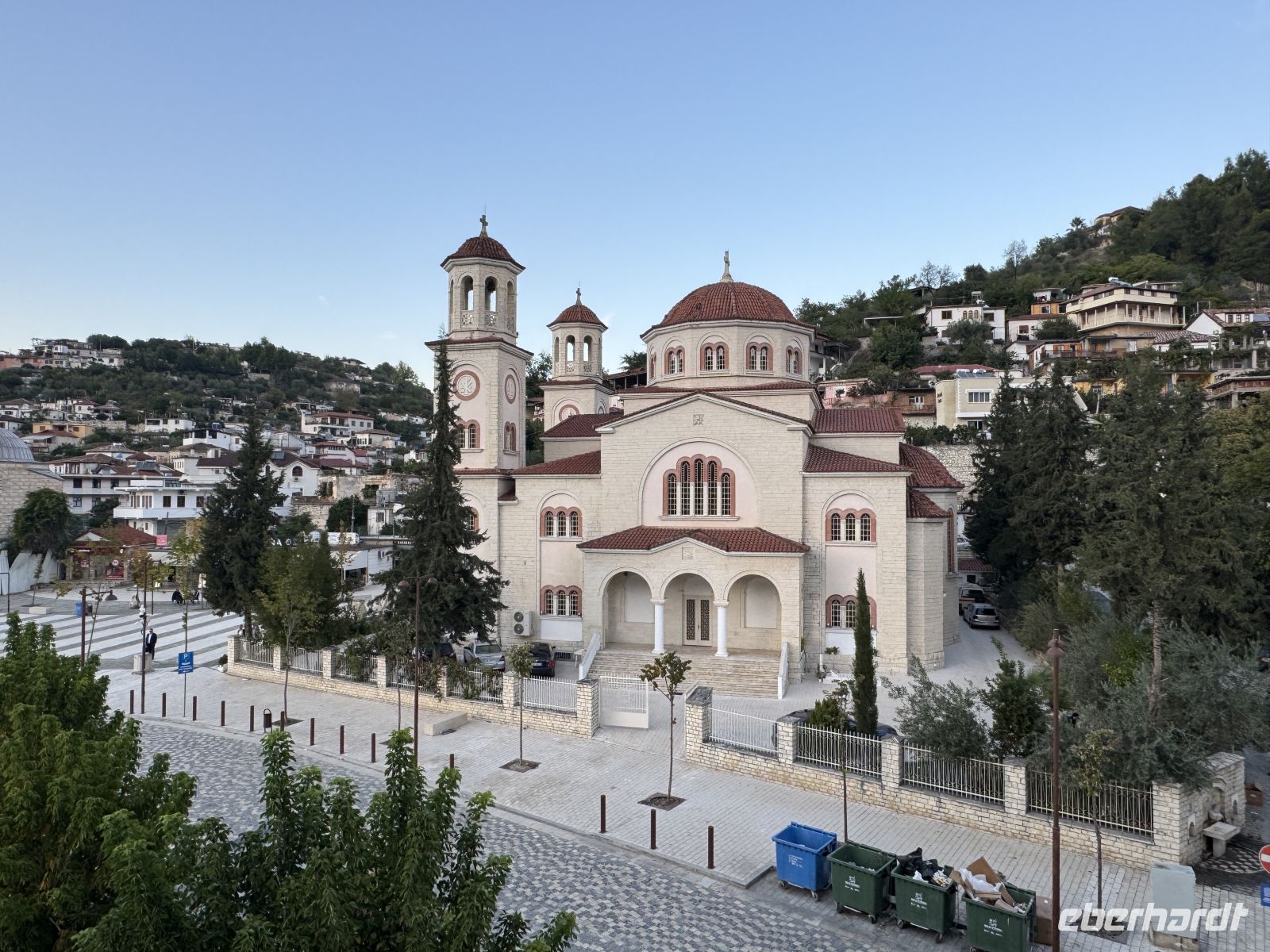 Von da aus haben wir einen atemberaubenden Blick auf die umliegenden Berge und das Flusstal. Unser nächster Stopp ist an der Stephanskathedrale. Die dem heiligen Stephanus geweihte historistische Kirche wurde 1865 eröffnet. Sie wird auch Große Kirche (Kisha e Madhe) genannt.