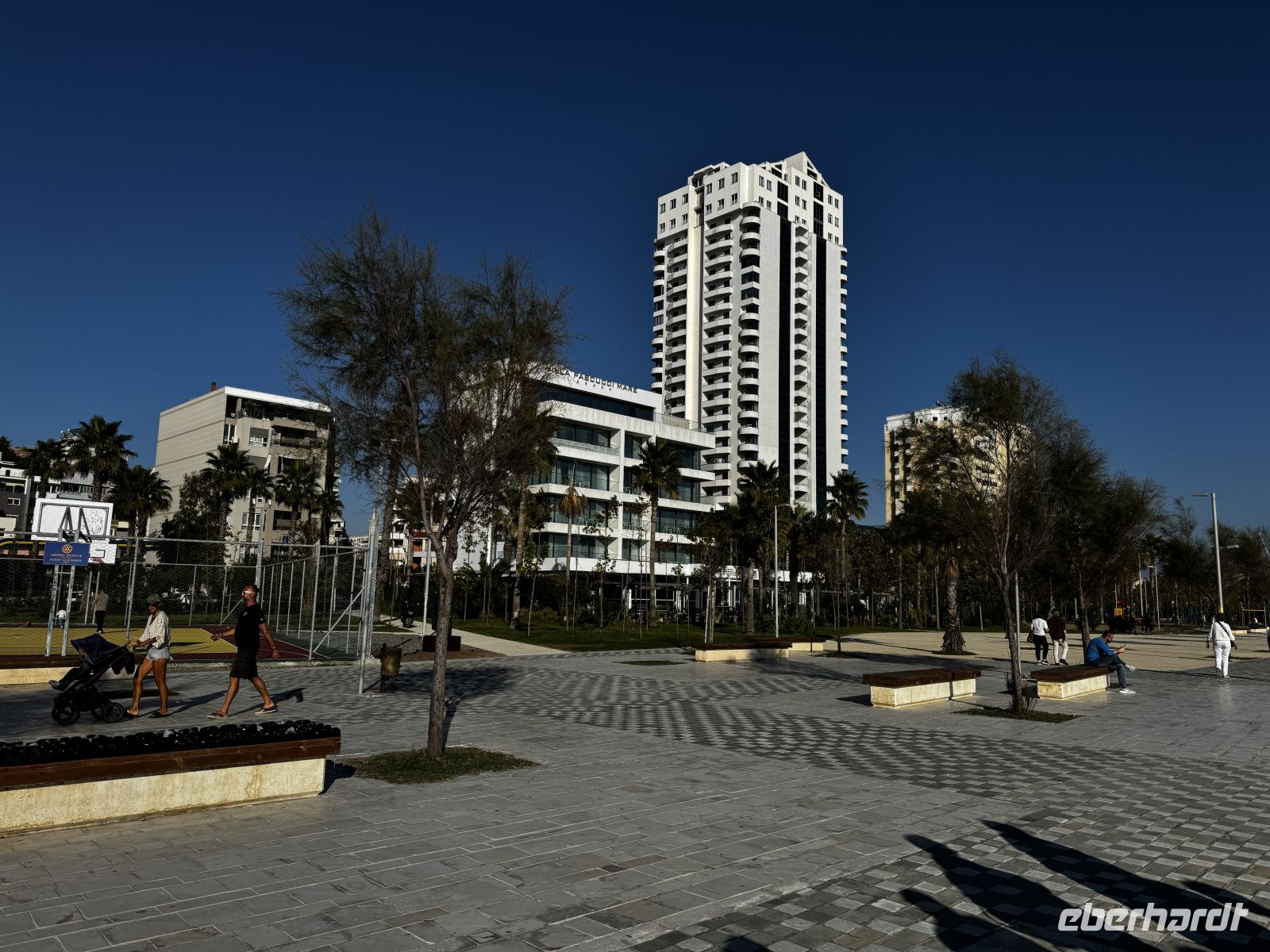 Von der Veliera Durrës, einer futuristisch gestalteten Fußgängerbrücke gehen wir vorbei an der Ruine des alten Vollga-Hotels zur schönen Strandpromenade, wo wir ein leckeres Eis genießen können.