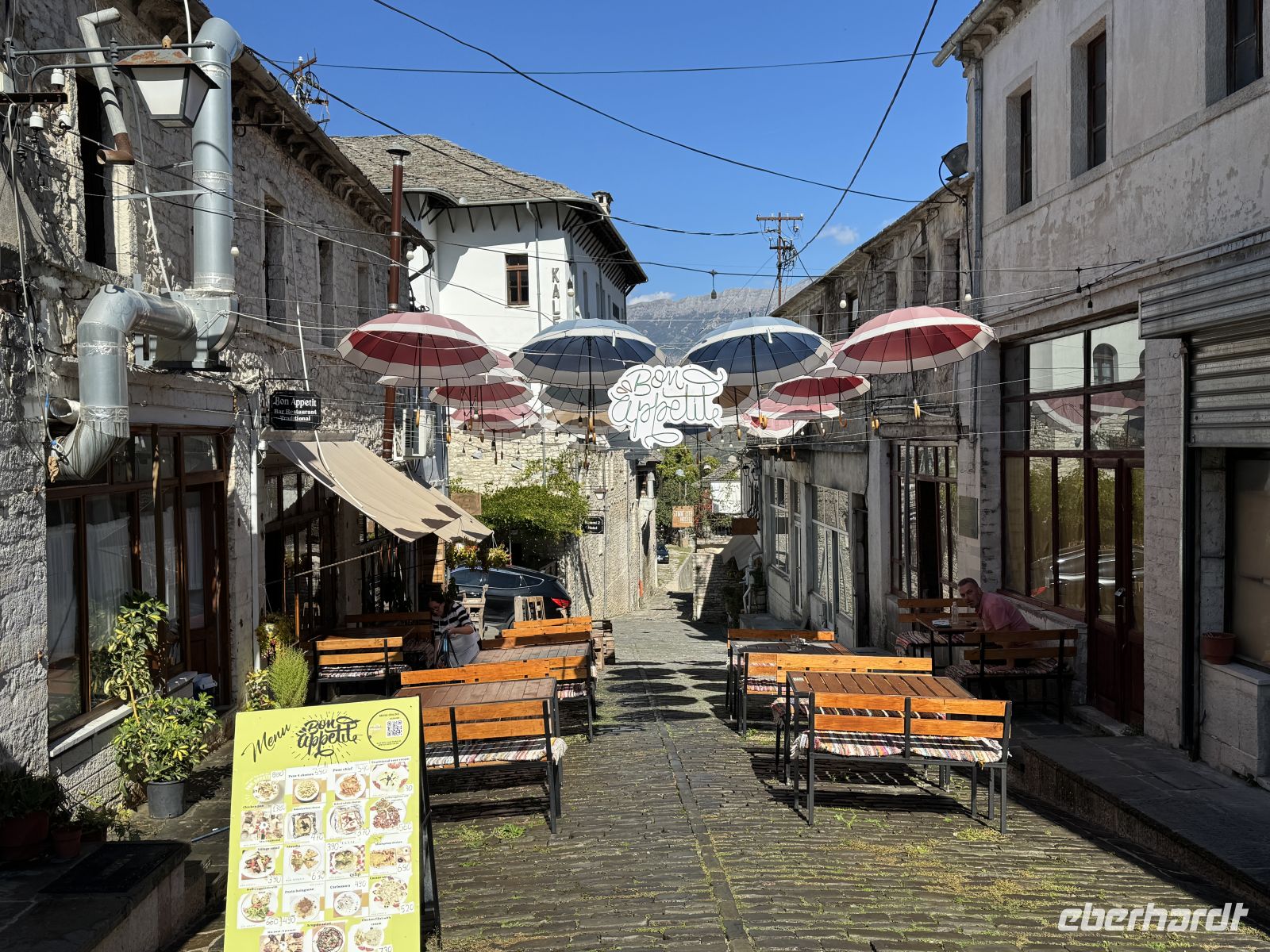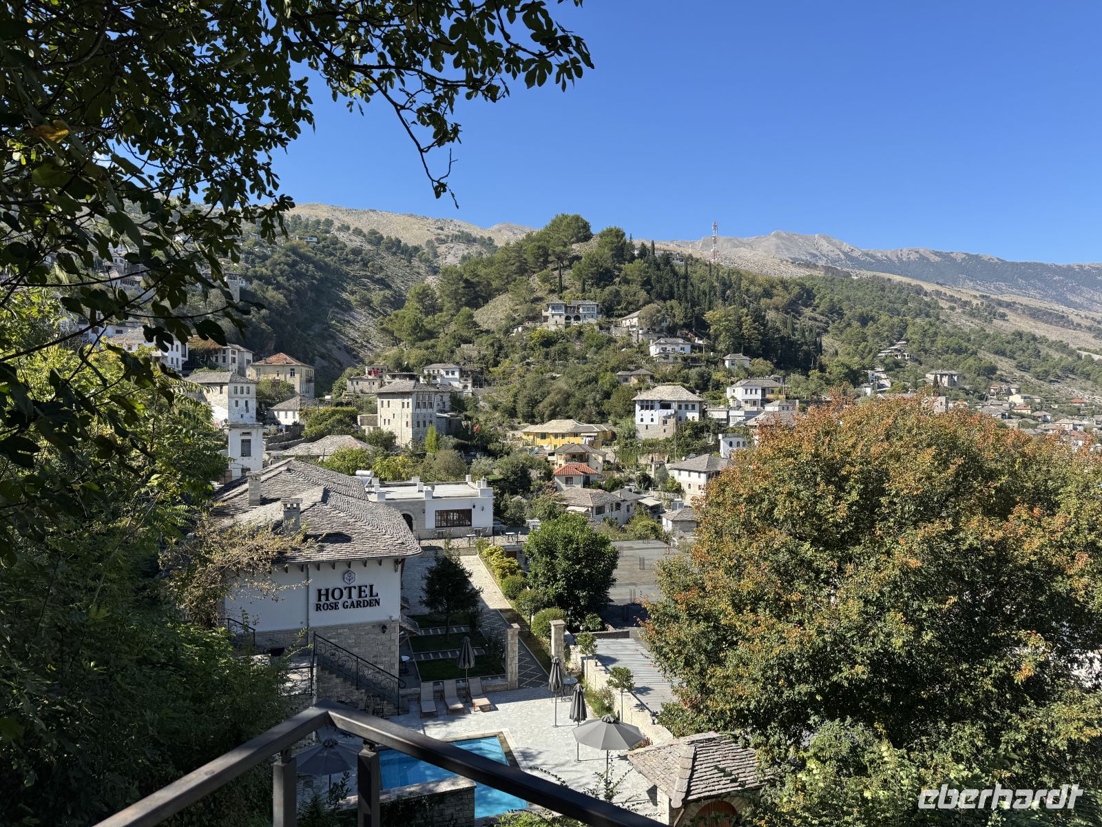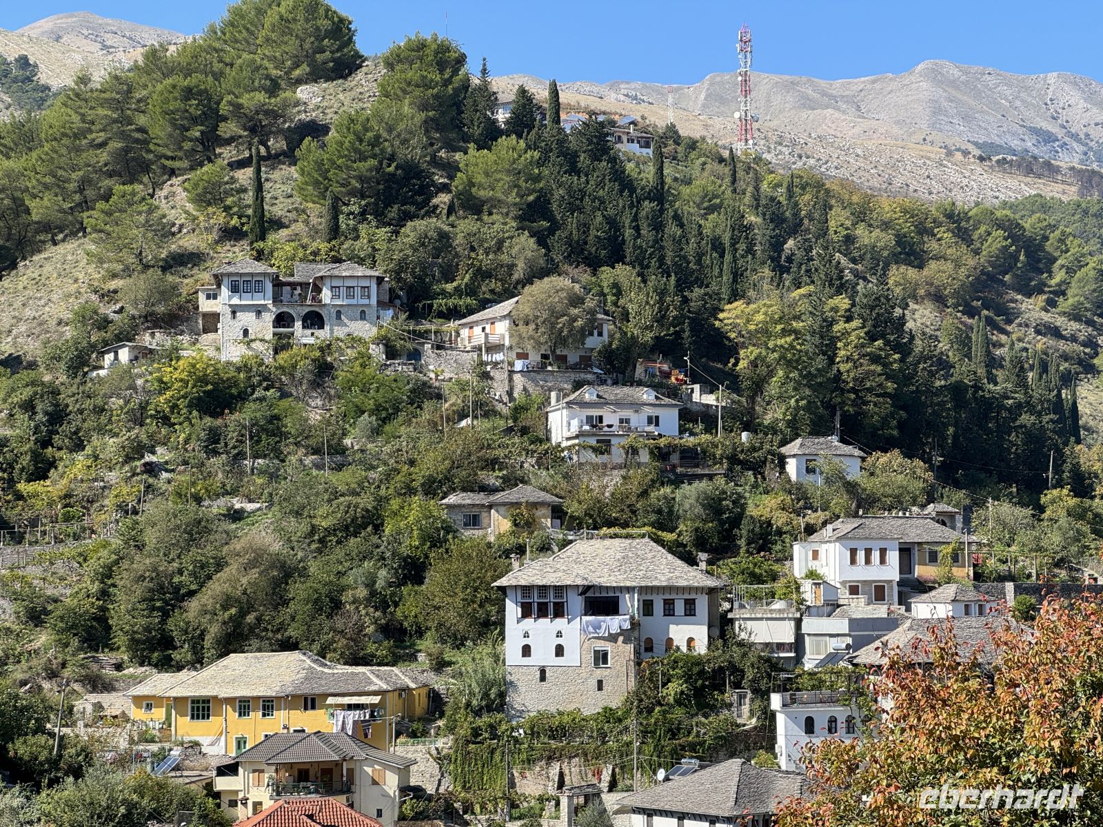 Heute führt uns unsere Reise nach Gjirokastra, der Stadt der tausend Steine. Den Beinamen „Stadt der Steine“ verdankt Gjirokastra seinem einzigartigen Stadtbild. Markante, kleinen Trutzburgen ähnelnde Häuser prägen seit Jahrhunderten die Viertel um die Burg, die heutige Altstadt. Bedeckt mit Steinplatten aus den nahen Gebirgen dienten die Dächer früher dazu, die Innentemperatur der Häuser zu regulieren. Sie zählt seit 2005 zum UNESCO-Welterbe. Sie ist eine der ältesten Städte des Landes und wichtiges kulturelles Zentrum Südalbaniens. Die Stadt ist Geburtsort des ehemaligen Diktators Enver Hoxha und des bekanntesten albanischen Schriftstellers Ismail Kadare. Sue liegt im Süden Albaniens im Flusstal des Drino, das sich hier zur Dropull-Ebene weitet. Die älteren Quartiere der Stadt sind am steilen Hang des Mali i Gjerë auf bis zu 480 m ü. A. erbaut. Neuere Stadtteile ziehen sich abwärts bis zu den kleinen Gewerbegebieten am Flussufer auf 190 m ü. A. Durch die Stadt fließen einige kleinere Bäche von Südwesten Richtung Nordosten, die unterhalb von Gjirokastra in den Drino münden. Bei starkem Niederschlag schwellen sie stark an und treten gelegentlich über die Ufer. Wälder sind im nahen Umland rar. In der Flussebene wird teilweise Landwirtschaft und Viehzucht betrieben.