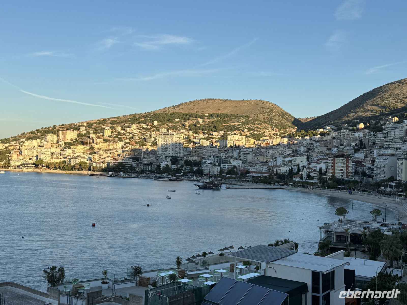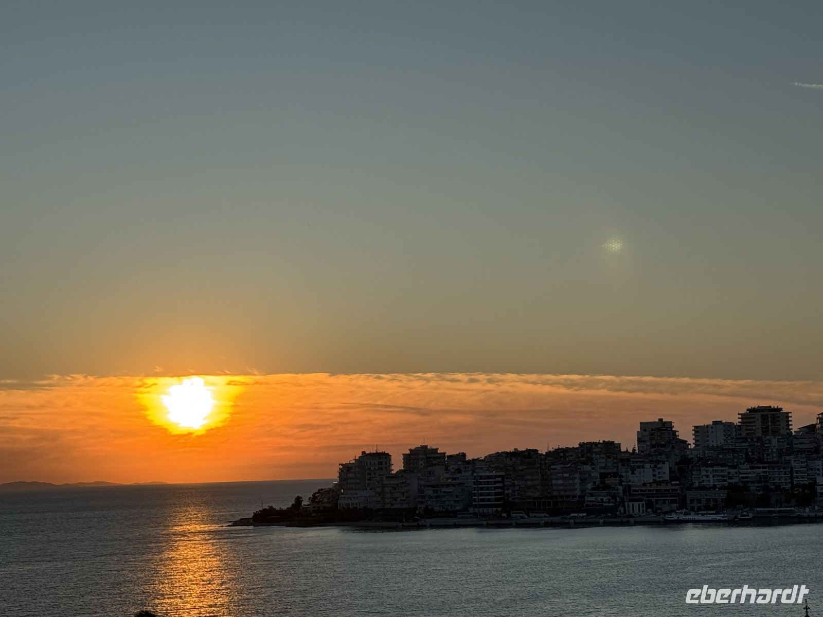Am späten Nachmittag erreichen wir unser Hotel an der albanischen Riviera in Saranda und unternehmen einen ersten Spaziergang an der schönen Strandpromenade. Saranda ist ein Badeort an der Albanischen Riviera, im Süden des Landes. Die Stadt liegt zwischen dem Ionischen Meer und Hügeln mit Olivenhainen, an einer hufeisenförmigen Bucht mit Strand und Uferpromenade. Im Stadtzentrum befinden sich die Reste einer Synagoge aus dem 5. Jahrhundert, die später als frühchristliche Basilika diente. Die aufwändigen Mosaikböden sind heute noch zu erkennen. Auf einem Hügel über der Stadt befindet sich die Burg "Kalaja e Lëkurësit" aus dem 16. Jahrhundert. Den wunderschönen Sonnenuntergang beobachten wir vom Strandrestaurant aus, wo wir zu Abend essen.